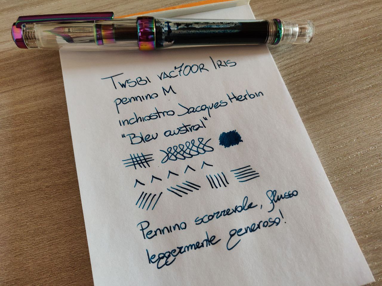 TWSBI VAC700R Iris Limited Edition pennino M, caricata con Jacques Herbin Blue Austral.