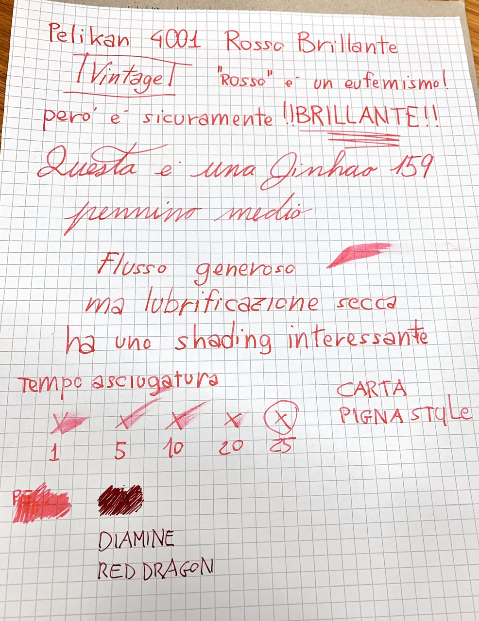 Conoscevo il 4001 rosso perché tanti anni fa avevo comprato un pacchetto di cartucce e me lo ricordavo slavato e ben poco rosso.