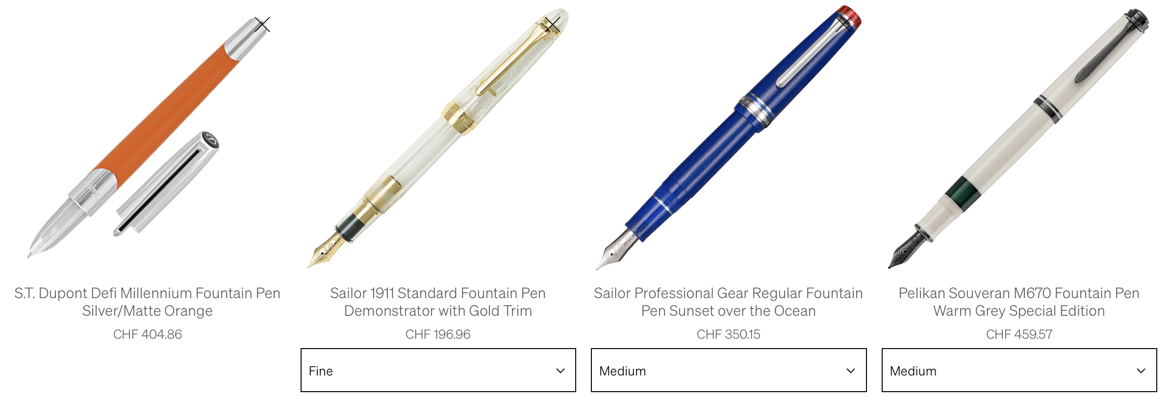 Prova a valutare bene, se piuttosto che avere tutti pennini dal tratto medio, visto che stai pensando di ampliare il parco penne, non sia il caso di prendere un tratto "leggermente" diverso (altrimenti finirai con avere pennini tutti uguali!).