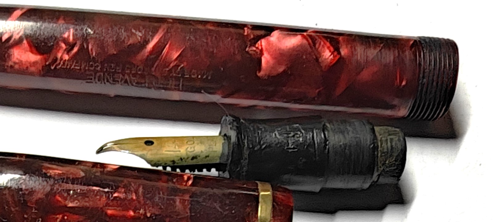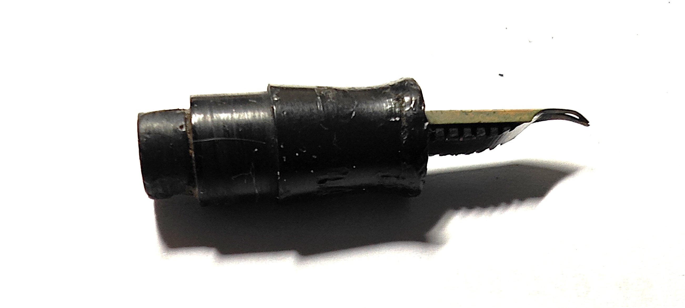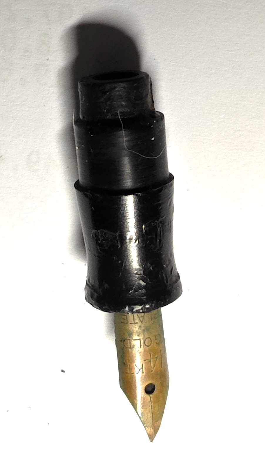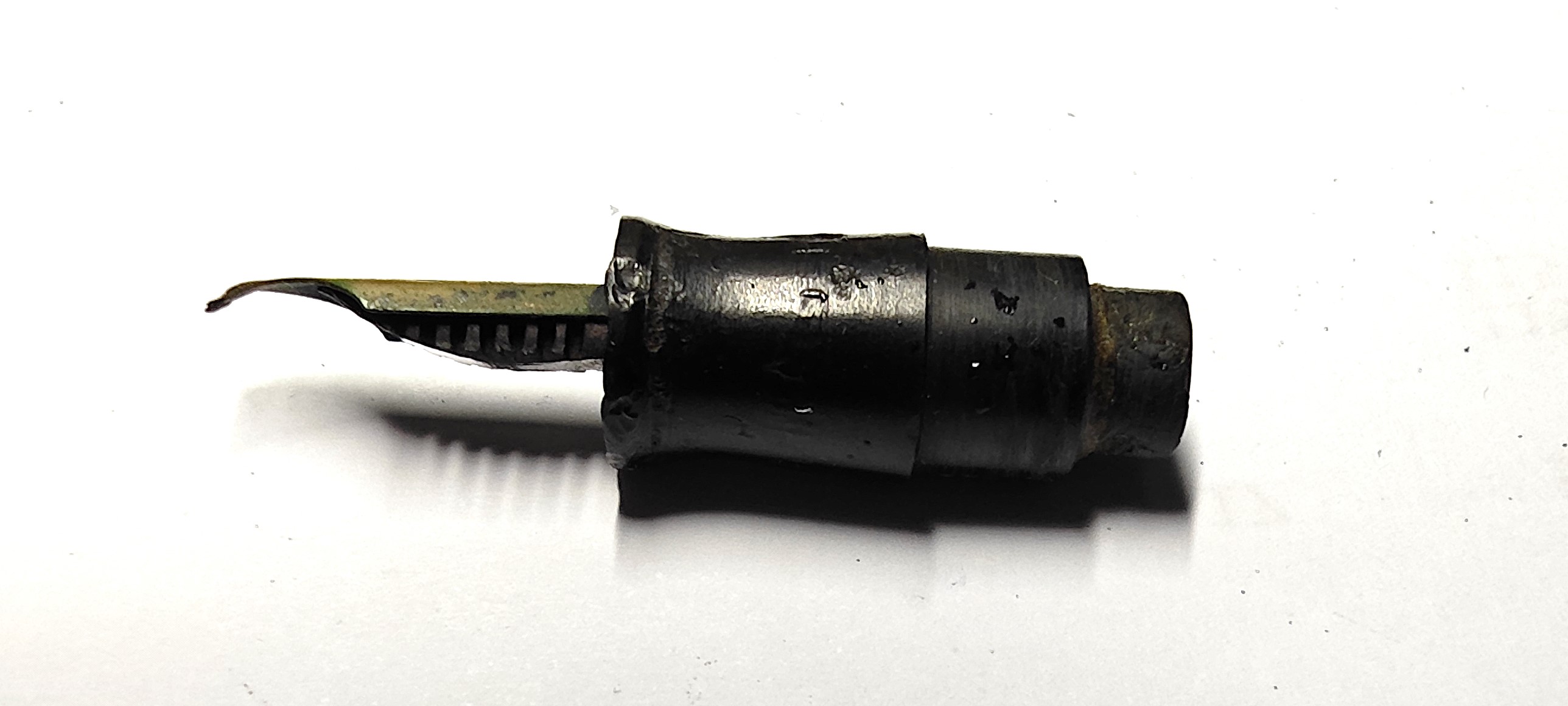 Pennino completamente ripiegato su se stesso; Portapennino su cui si notava l'uso di pinze per, probabilmente, cercare di smntare il pezzo.
