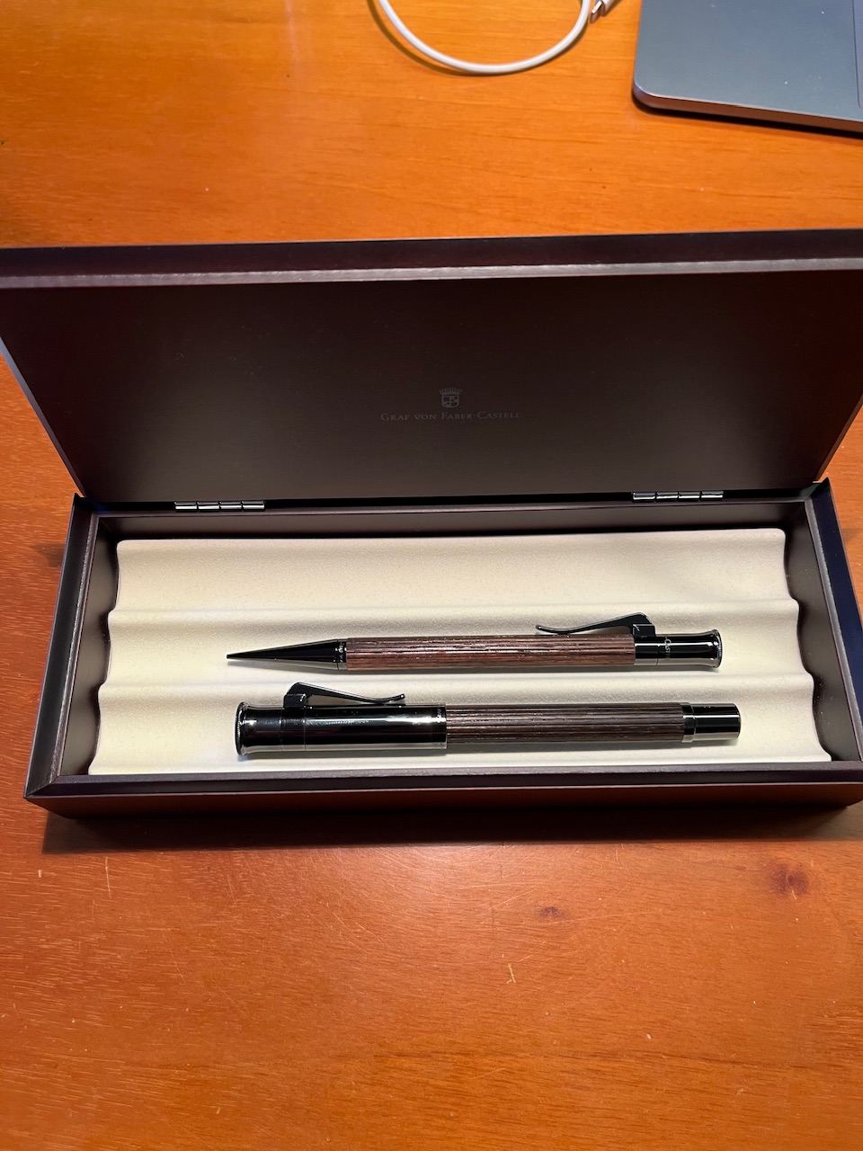 Graf von Faber-Castell Classic Macassar pennino 0ro 18K EF e porta mine della stessa linea.