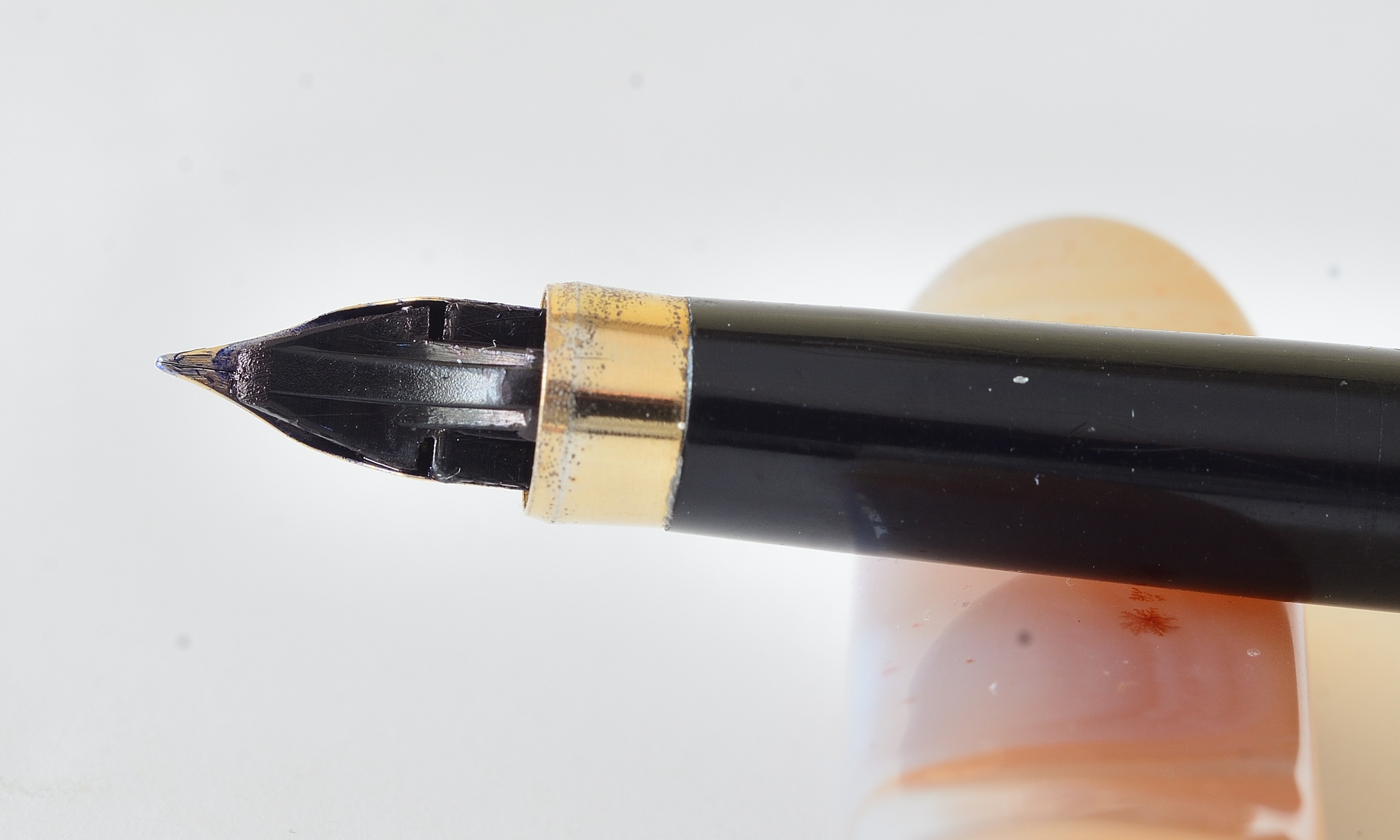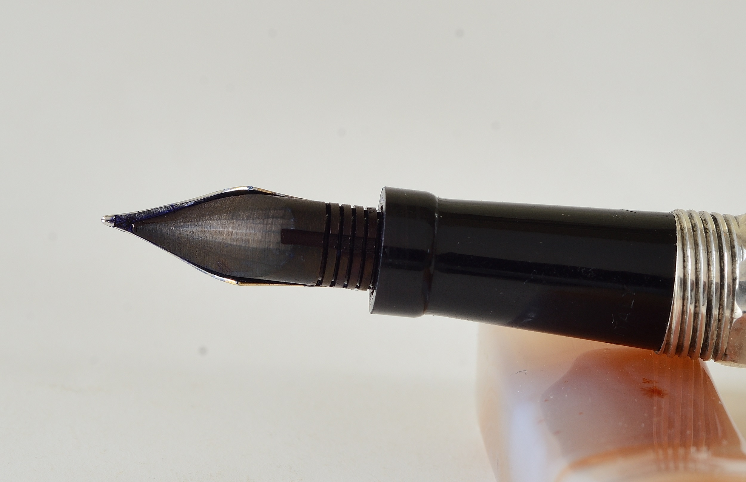 a rilievo, bel pennino bicolore decorato ed alimentatore in ebanite: