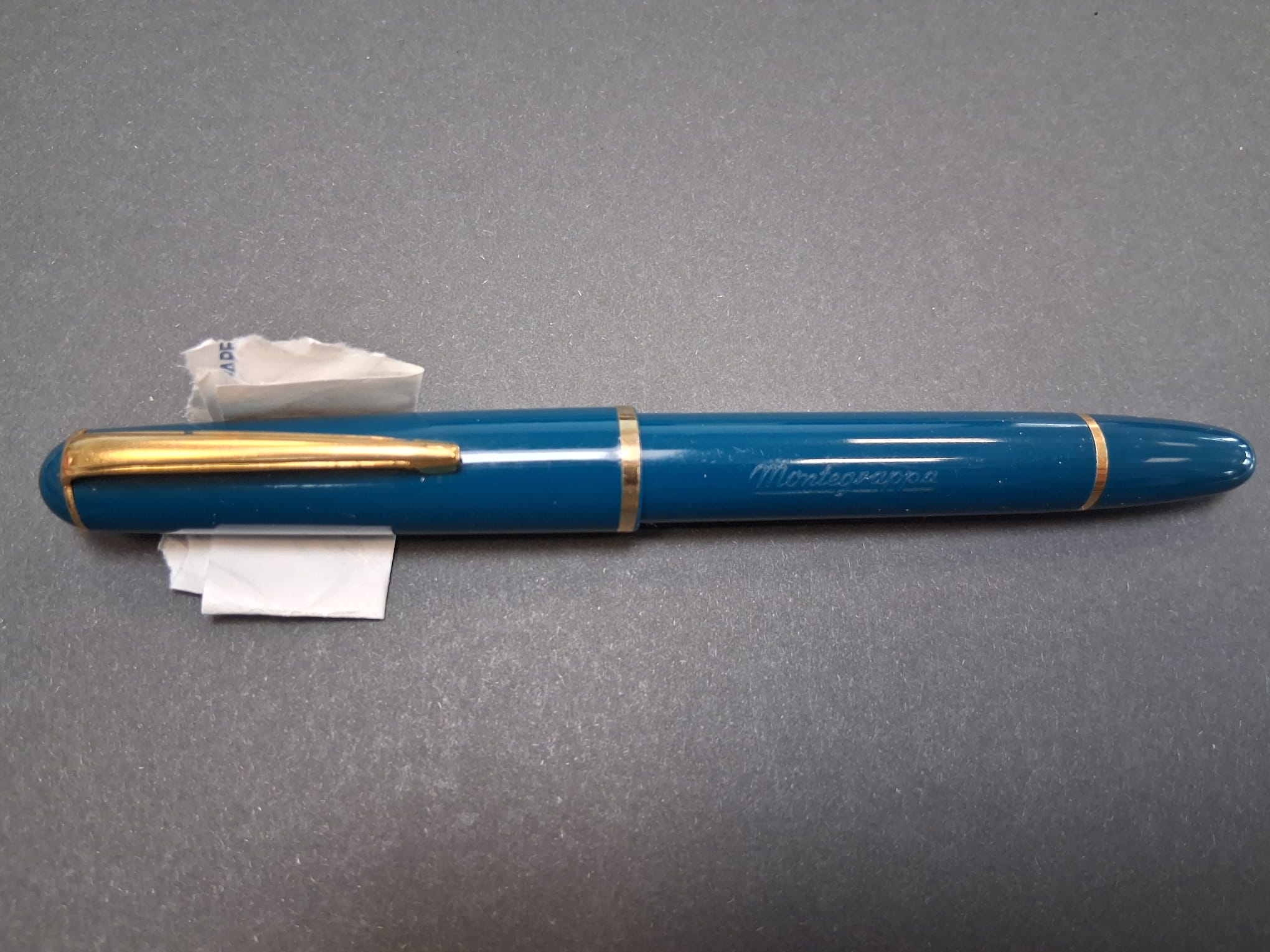 ho trovato al mercatino questa montegrappa che come fattura azzarderei una scolastica, anni 80-90..