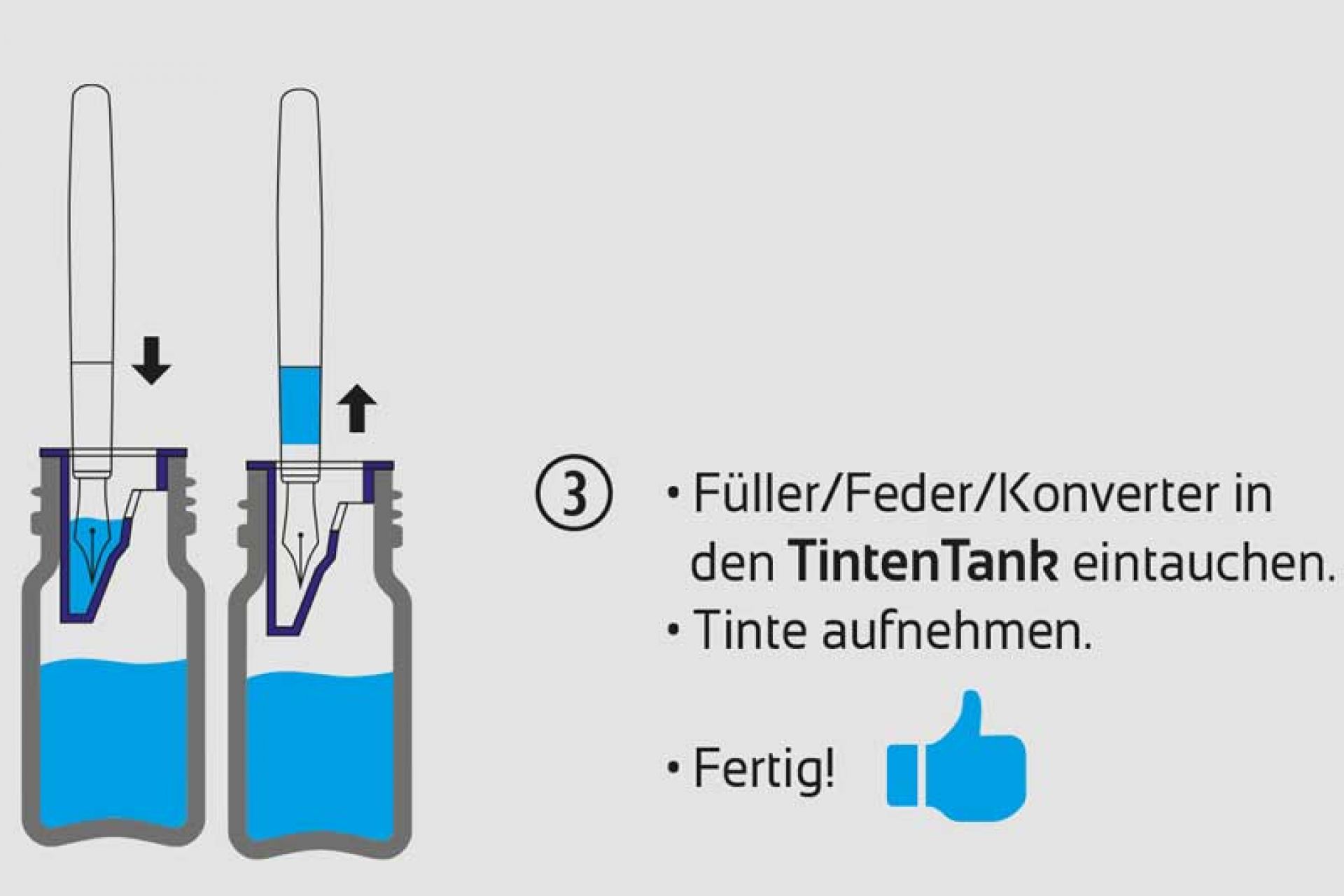 Anch'io ho lo stesso problema, per le penne a cartuccia e converter ho risolto con la siringa, per quelle a pistone o a levetta invece non ho ancora risolto. Si fa lo stesso, ma è scomodo e ho sempre paura di rovesciare il calamaio.