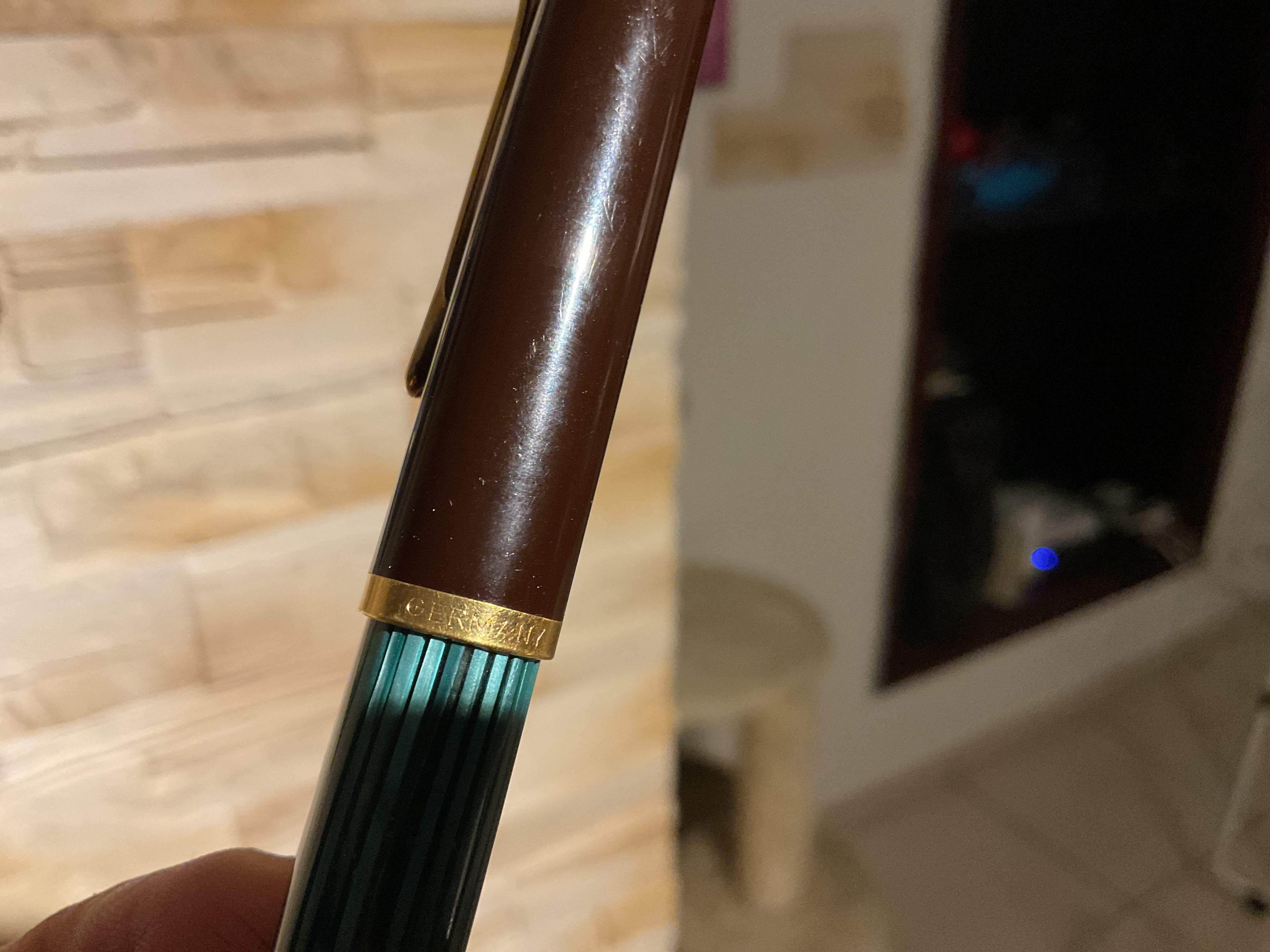 Buonasera, spero che possiate aiutarmi con questo quesito un po' particolare, ho comprato una m400 del 1982, quella con pennino a frizione, la cosa strana è il logo sul cappuccio che invece di essere verde sembra dorato, qualcuno sa se è normale? magari un modello di preserie, un difetto del colore usato che si è scolorito nel tempo, il cappuccio preso in prestito da un altra penna o altro?