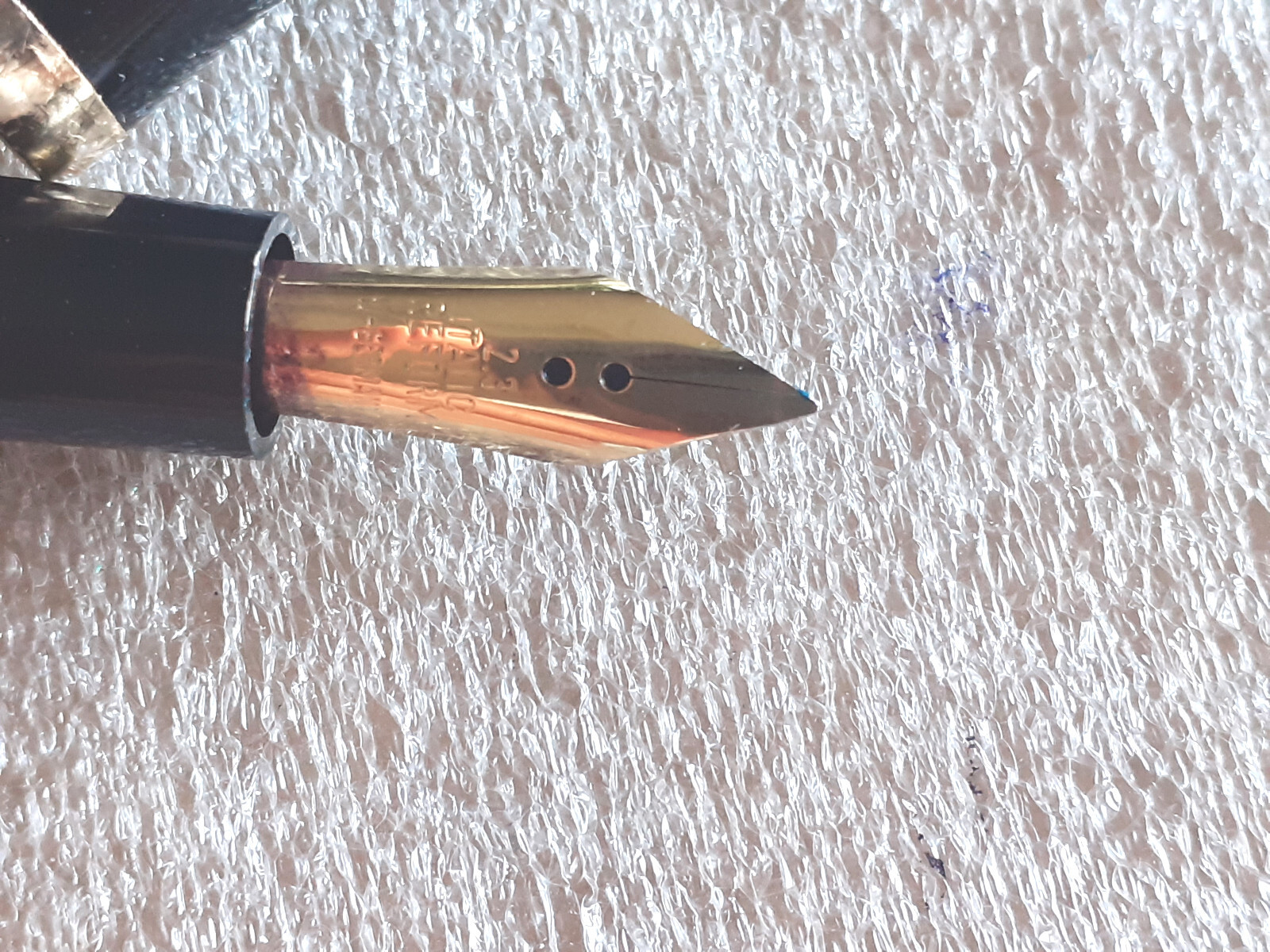 Magari, anzi è probabile, è solo un problema ottico di ombre e riflessi, ma se il pennino è l'unica cosa per cui la compreresti io chiederei ulteriori foto.
