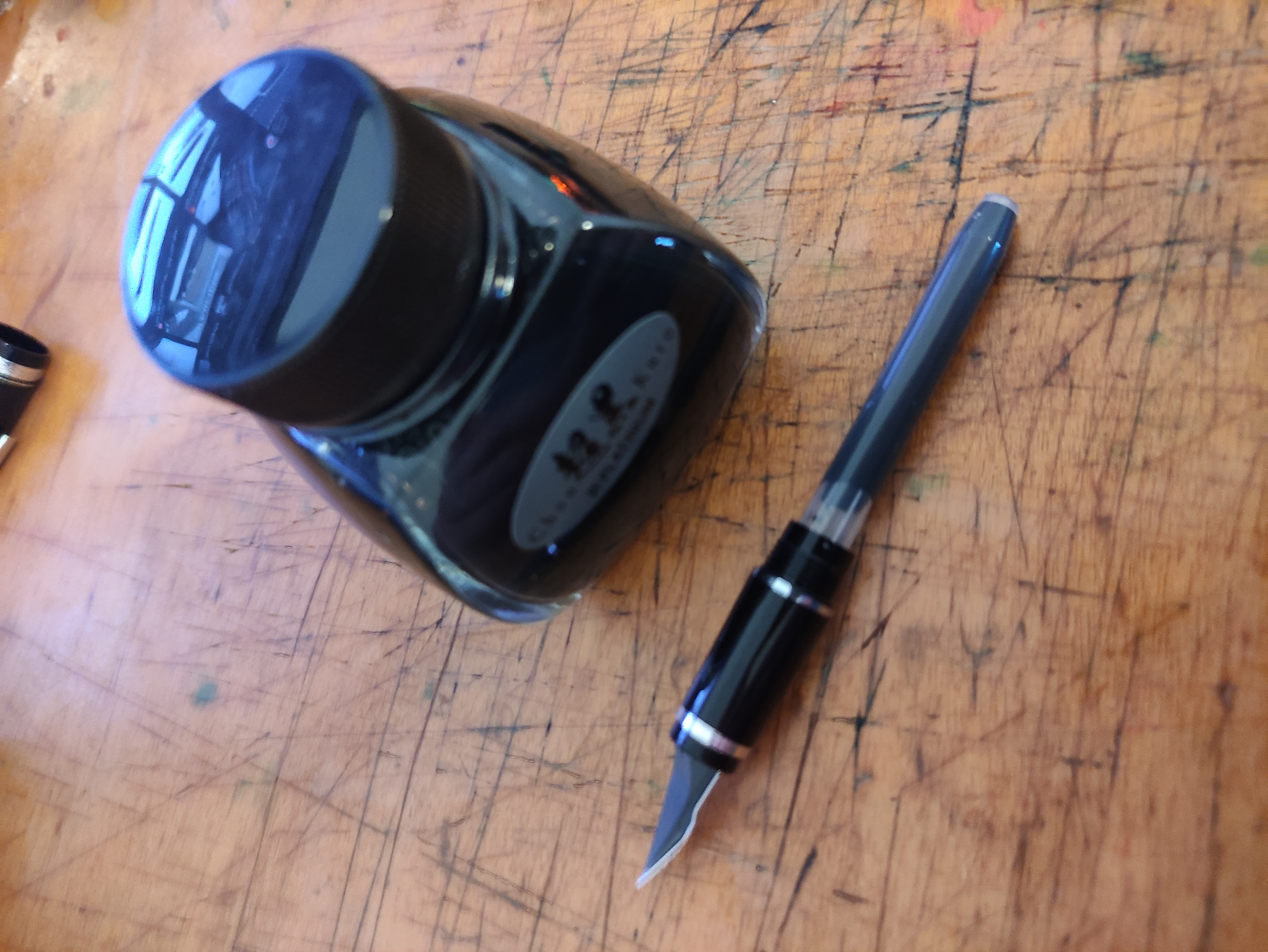 Qua potete osservare la penna con cartuccia majohn, riempita di chou kuro con pipetta.