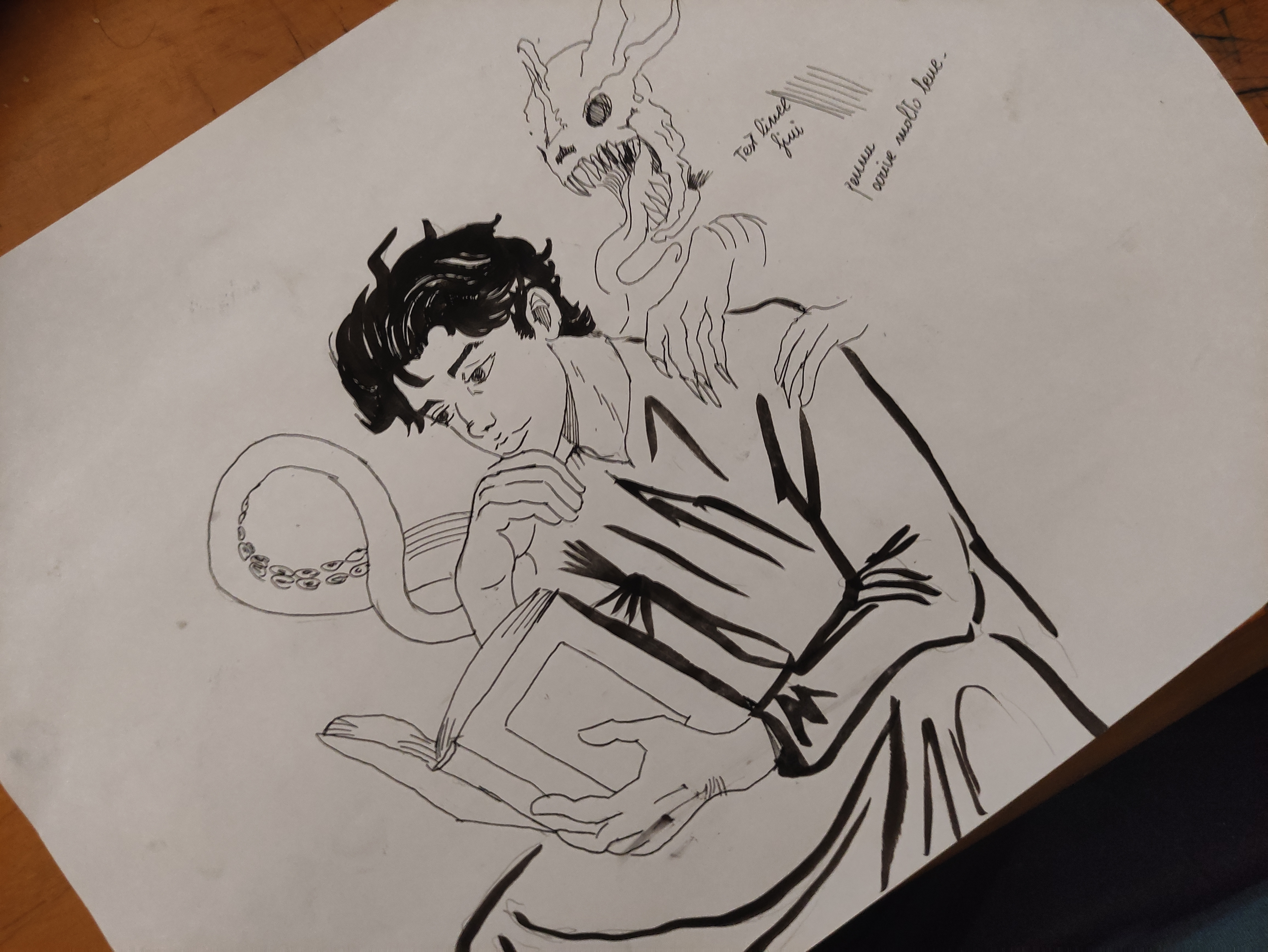 Come ultimo test ho provato a disegnare e mi pare elabo se la cavi bene, mi ha restituito una ottima sensazione e la penna da una sensazione di "precisione" perché il pennino è molto bello. Io trovo che calzare il tappo sul retro della penna porti un maggiore comfort nella scrittura o disegno, forse dovuto al bilanciamento del peso. non ho voglia di finire il disegno e non so cosa aggiungere quindi lo lascio così, solo per test.