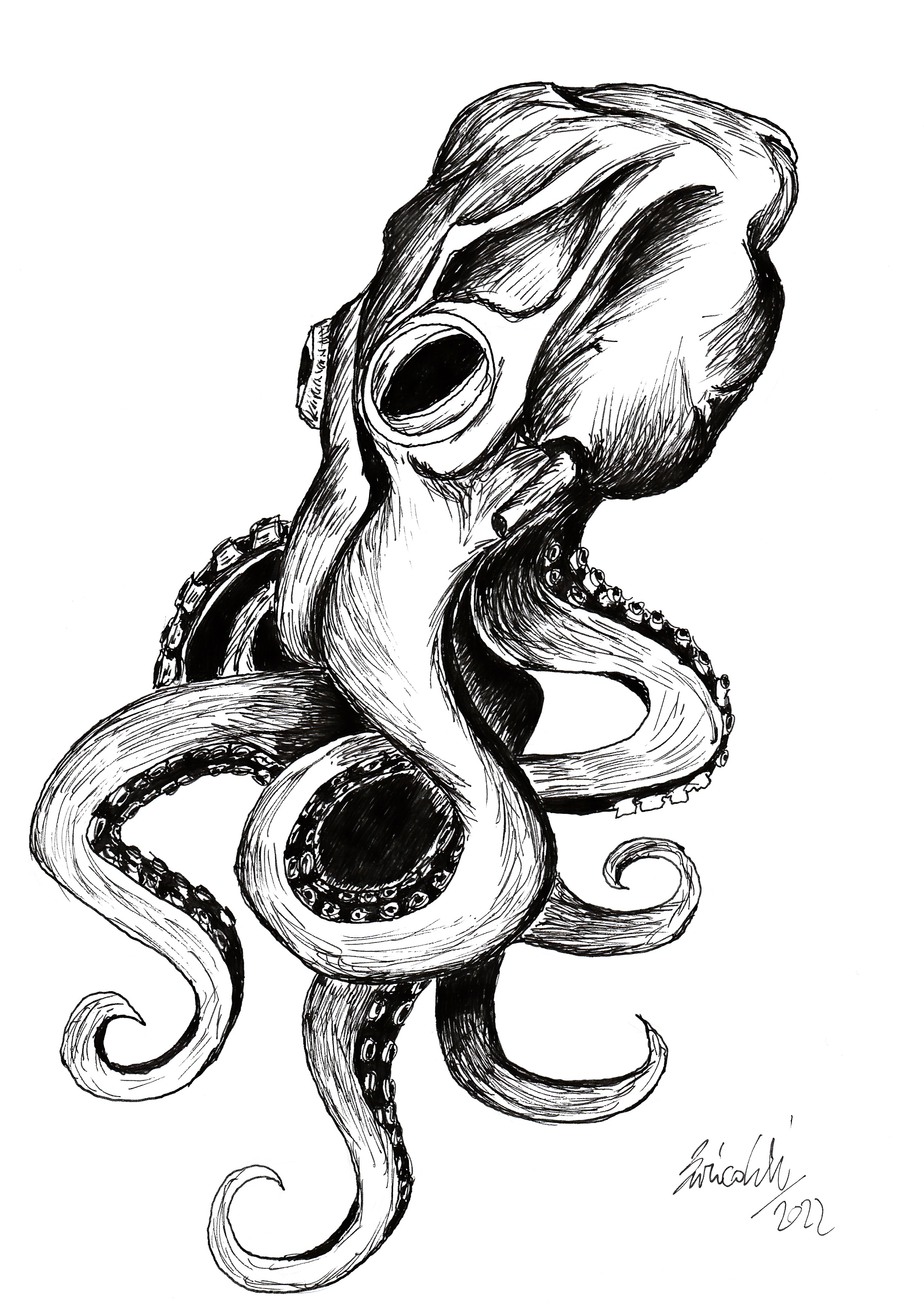 Un polpo, realizzato sempre con l'inchioostro nero
