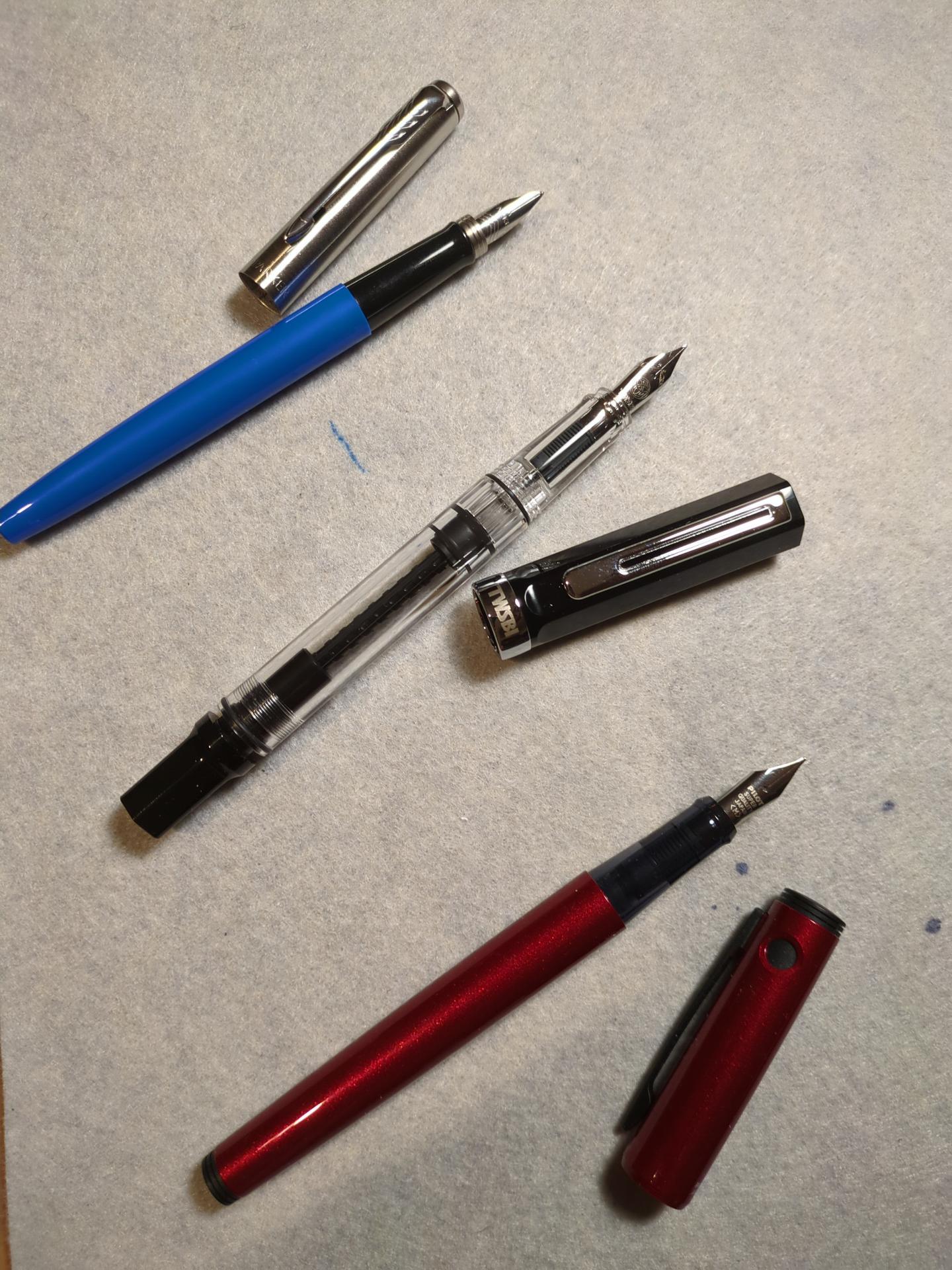 ), e una Artus 43 FK che è carica di acqua per sciogliere residui di inchiostro. Purtroppo ha una crepa sul cappuccio che proverò a sistemare, ma per poco più di 5 euro potevo correre il rischio