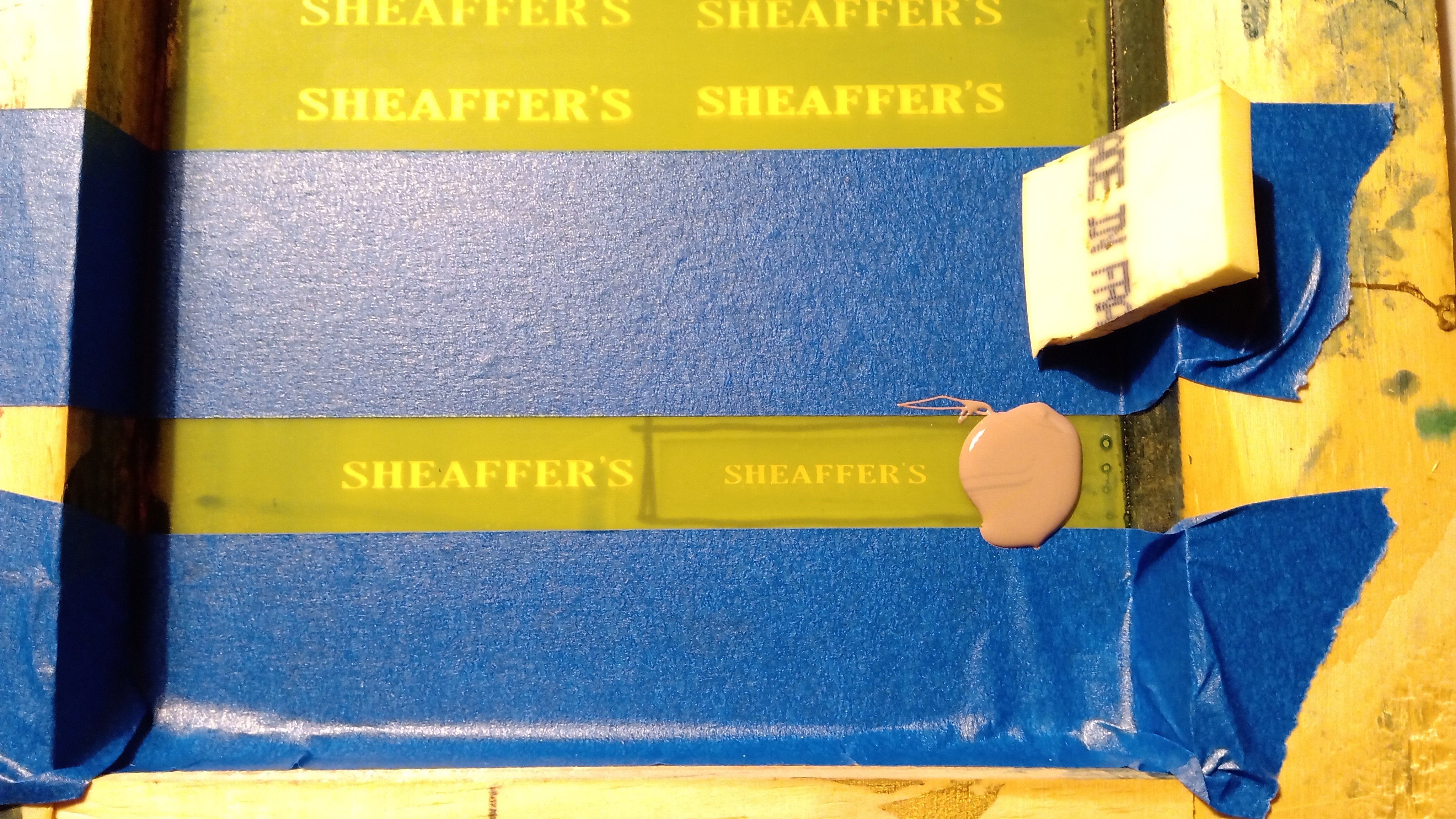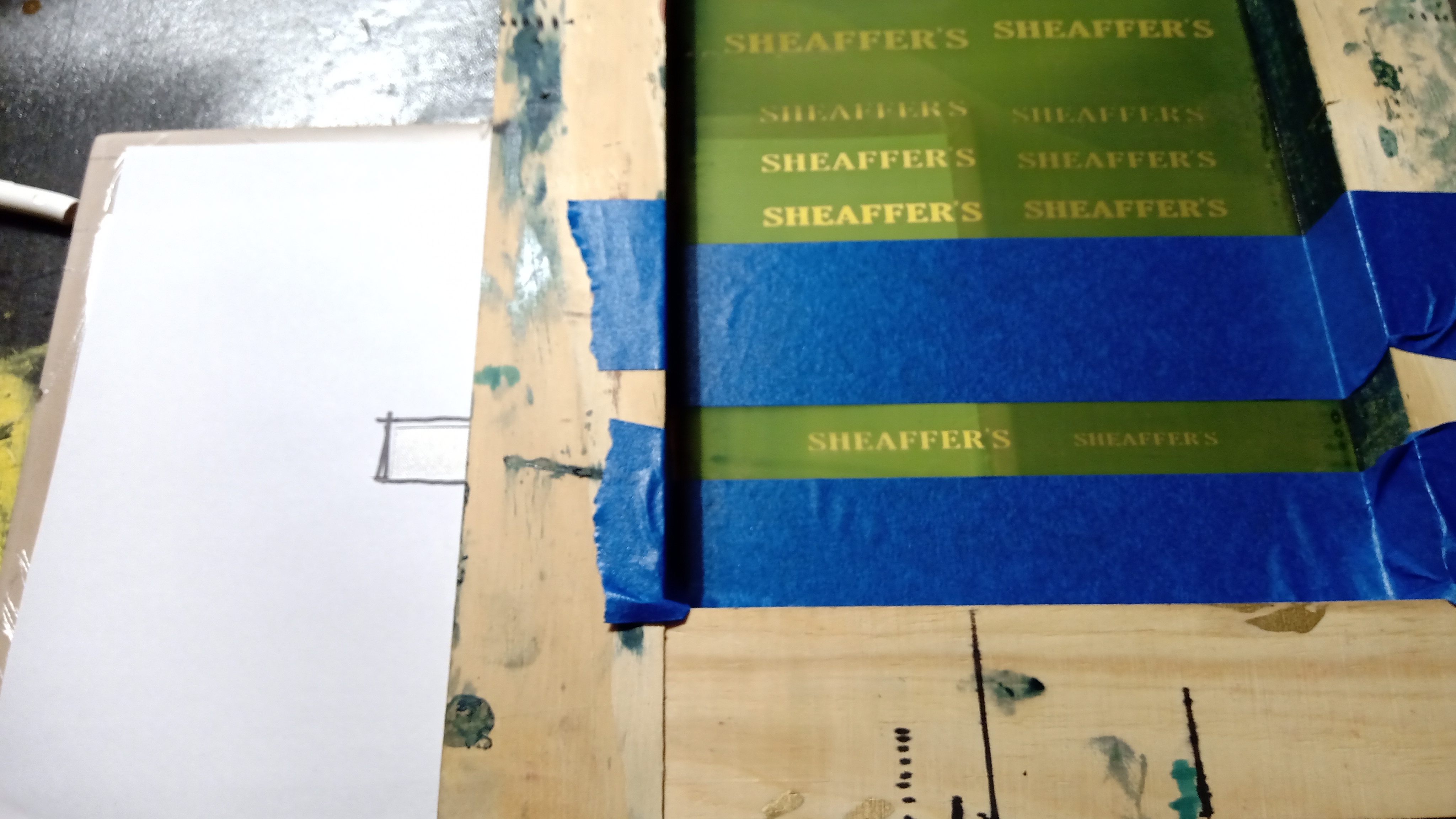 Mascheriamo sia il coperchio che lo schablon, ben centrato e posizionato, ricordando che qui l'errore