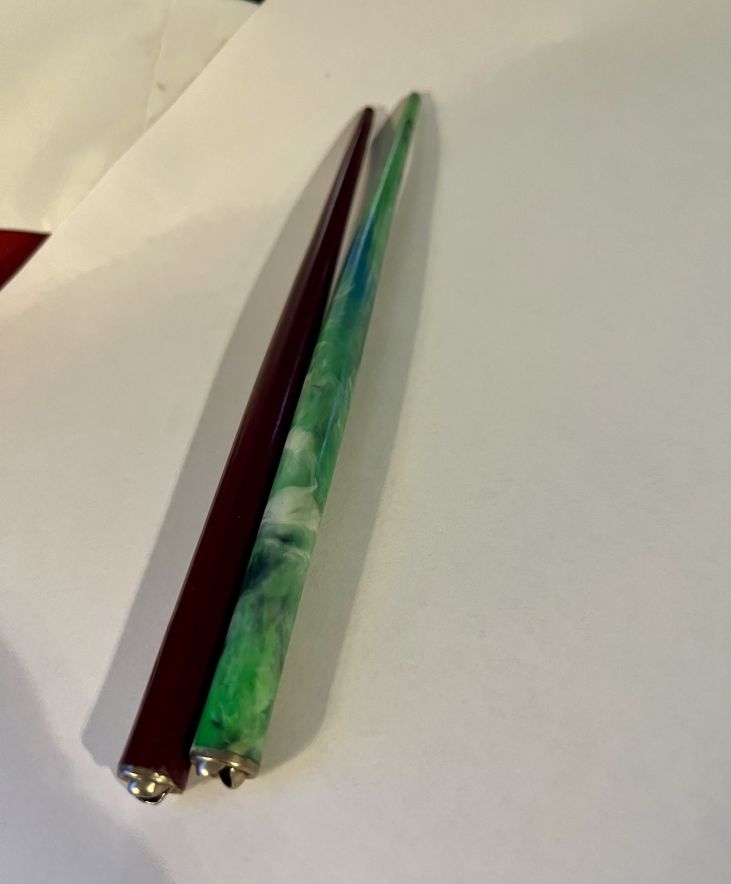 ho trovato recentemente una scatola di pennini Lus appartenenti a mio nonno e quindi databili presumibilmente intorno agli anni '30/40 del 900. Vorrei trovare un porta pennino adatto, in quanto in quelli che possiedo non entrano, perché i pennini hanno uno spessore maggiore. Inoltre ho anche dei pennini Cobaltea, che non si agganciano perché sono più piccoli. Grazie a chi mi può consigliare.