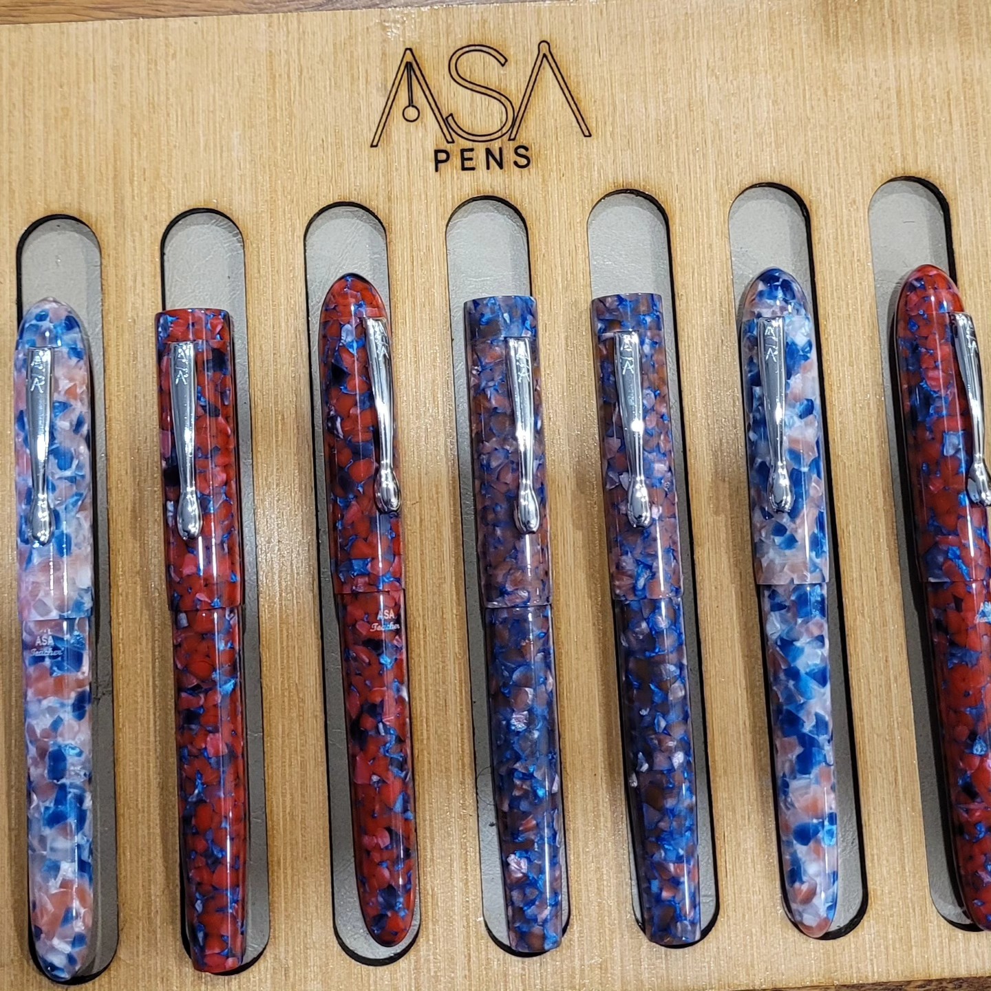 ASApens, India, è una realtà peculiare, fino a poco tempo fa aveva un sito internet dove proponeva alcune delle penne ASA, ma anche alcune altre, come ad esempio le penne Gama, per cui inizialmente agivano sia come produttori che distributori di terzi. E' una realtà piuttosto piccola, pare che Mr. Subramaniam, che faceva tutt'altro lavoro (lavorava in una azienda di telecom) a 40 anni abbia deciso di mollare tutto e mettersi a produrre penne, la sua passione, dopo aver seguito un workshop sulla produzione di penne al tornio (nel 2012). Disegna le sue penne nel suo studio di Chennai (una città costiera nel sud-est dell'India) le produce nel suo workshop a Tiruchirapalli (cittadina costiera quasi di fronte a Ceylon), e poi le assembla e completa a Chennai. Sono un gruppetto di sei persone... un pen-turner (suo amico), due aiutanti nella produzione, e due persone nell'ufficio di Chennai. Sua moglie coordina la parte commerciale. Con questa organizzazione nel 2018 dichiarava di riuscire a fare 300-400 penne al mese, poi c'è stata la batosta del covid... oggi si stanno riprendendo, credo con buoni risultati.