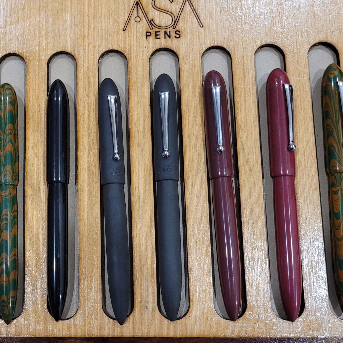 Da qualche tempo il loro sito era in effetti sparito, ultimamente cercando sotto asapens.in compare un nuovo sito in preparazione. Nel frattempo ASApens è rimasta attiva su Instagram e Facebook (ma dato che non possiedo un account su nessuno dei due e non intendo averlo, al momento è uscita dalle mie mire - attendo che tornino ufficialmente online). Tempo addietro comunque, il sito era discretamente usabile (per gli standard indiani certamente) ed era possibile ordinare e farsi spedire la penna ordinata in Italia. Mr. Subramaniam si pregia infatti di essere stato la prima azienda indiana produttrice di penne ad avere un negozio online. Fino a prima del covid i prezzi per le sue penne in ebanite, quasi sempre con riempimento eyedropper, alimentatore in ebanite e pennino in acciaio erano tra i 20 e i 30 USD, oggi saranno certamente saliti. Mi è noto che oggi lavorano anche la resina, e abbiano adottato gli ubiquitari pennini Jowo.