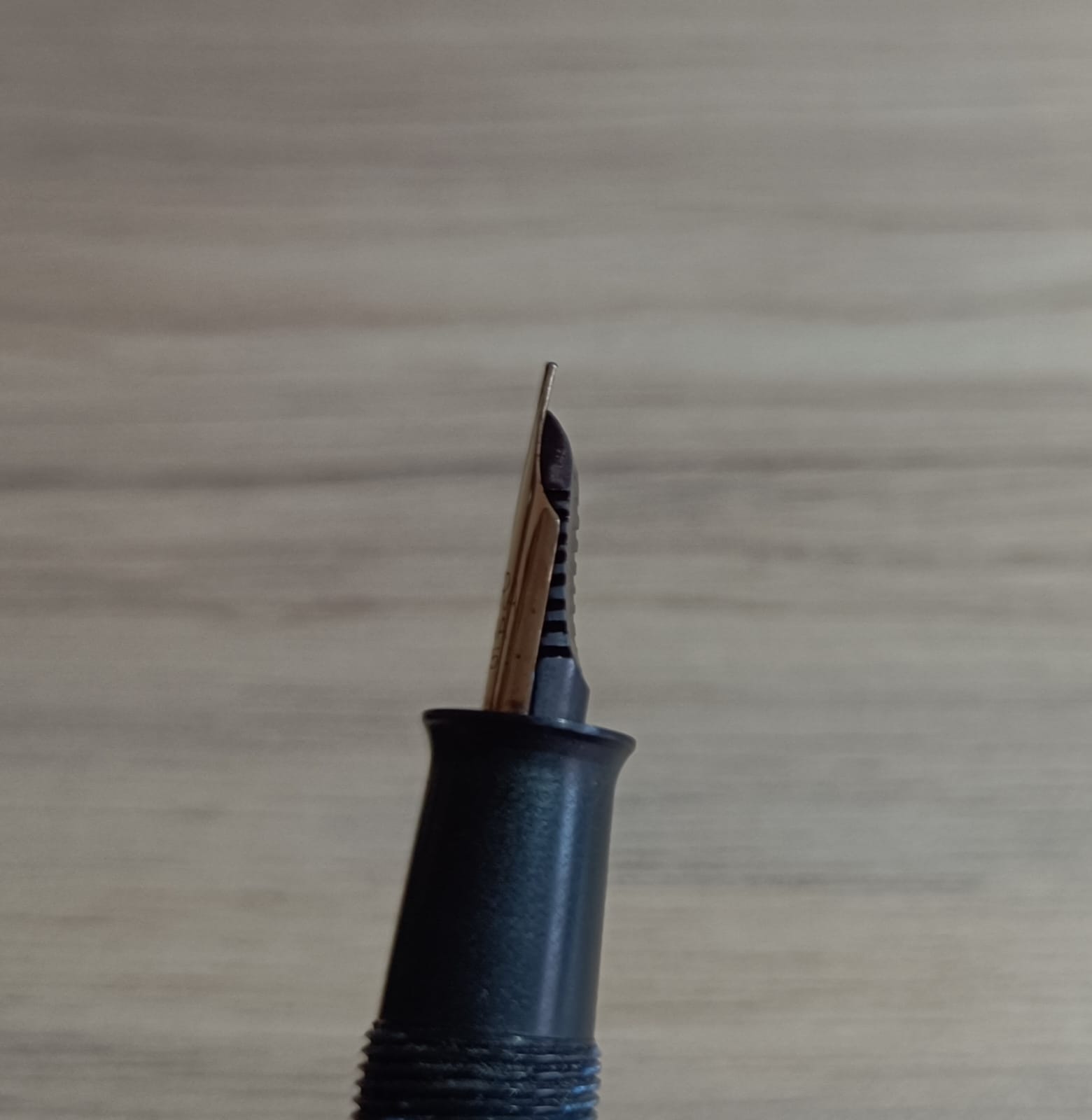 Svitando il cappuccio, scopriamo una sezione in ebanite nera molto comoda perché con un diametro non troppo stretto e con un labbro sporgente finale che consente di sentire chiaramente la fine della sezione, e il pennino. Quest'ultimo è secondo me il vero capolavoro della penna, come dirò più approfonditamente parlando delle prestazioni di scrittura. Si tratta di un pennino in oro 14 carati piuttosto piccolo, che presenta un piccolo foro di sfiato a forma di cuore e le incisioni "ASTURA NOVA" su due righe, il titolo dell'oro in millesimi (585) e il numero che indica la dimensione del pennino, in questo caso 2. L'alimentatore, altrettanto piccolo, è in ebanite.