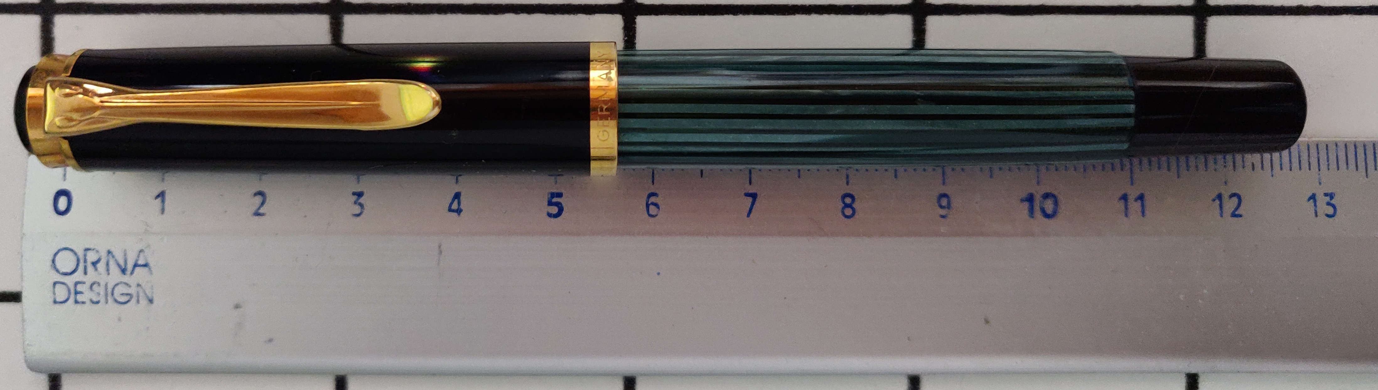 Vorrei chiedervi cortesemente aiuto per chiarirmi se effettivamente questo modello è quello, che mi è stato indicato. Il dubbio mi nasce anche per via della foto presente nella wiki di una Pelikan 400, che effettivamente gli assomiglia molto nelle forme e nella lunghezza della penna, pari a 12,6 cm: https://www.fountainpen.it/Pelikan_400 Tuttavia non ho trovato una pagina nella wiki dedicata alla produzione più recente (M400) con relative informazioni tecniche e fotografiche. Il pennino non sembra comunque essere quello di una 400, ma di un modello più recente. Insomma, ho più dubbi, che certezze!