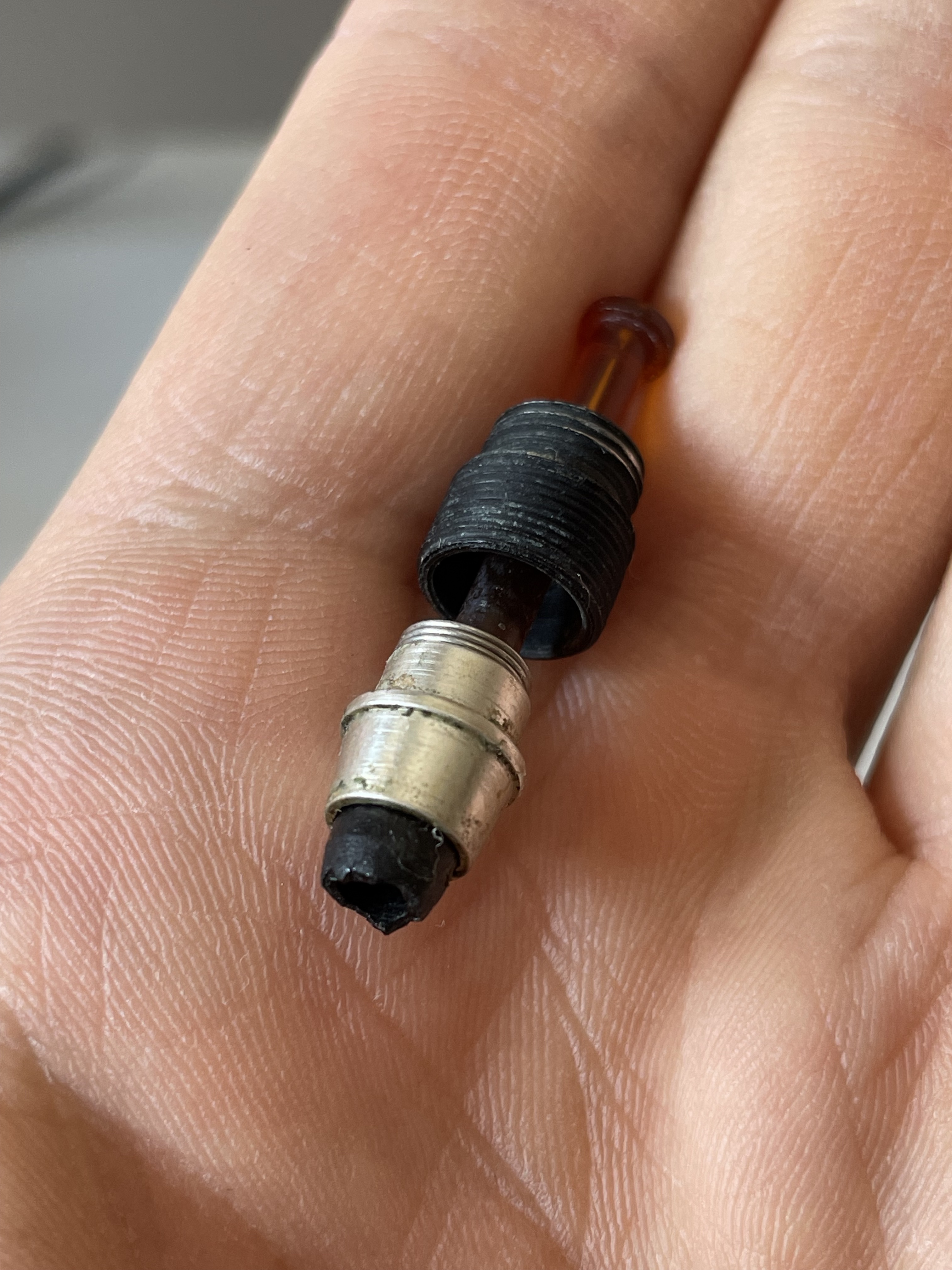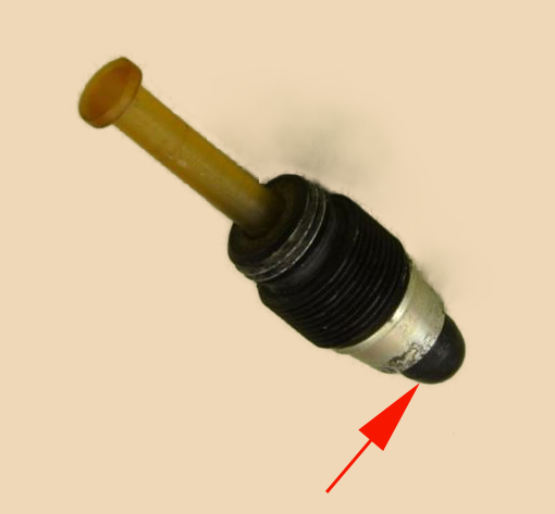 Altro problema è che è incollato in modo violento e la molla è tenuta in sede nello spacco alla base del pistone proprio dal terminale nero, quindi per toglierlo mi toccherebbe fresarlo e incollare quello nuovo avendo cura di tenere la molla distanziata e in posizione mentre si asciuga la colla...
