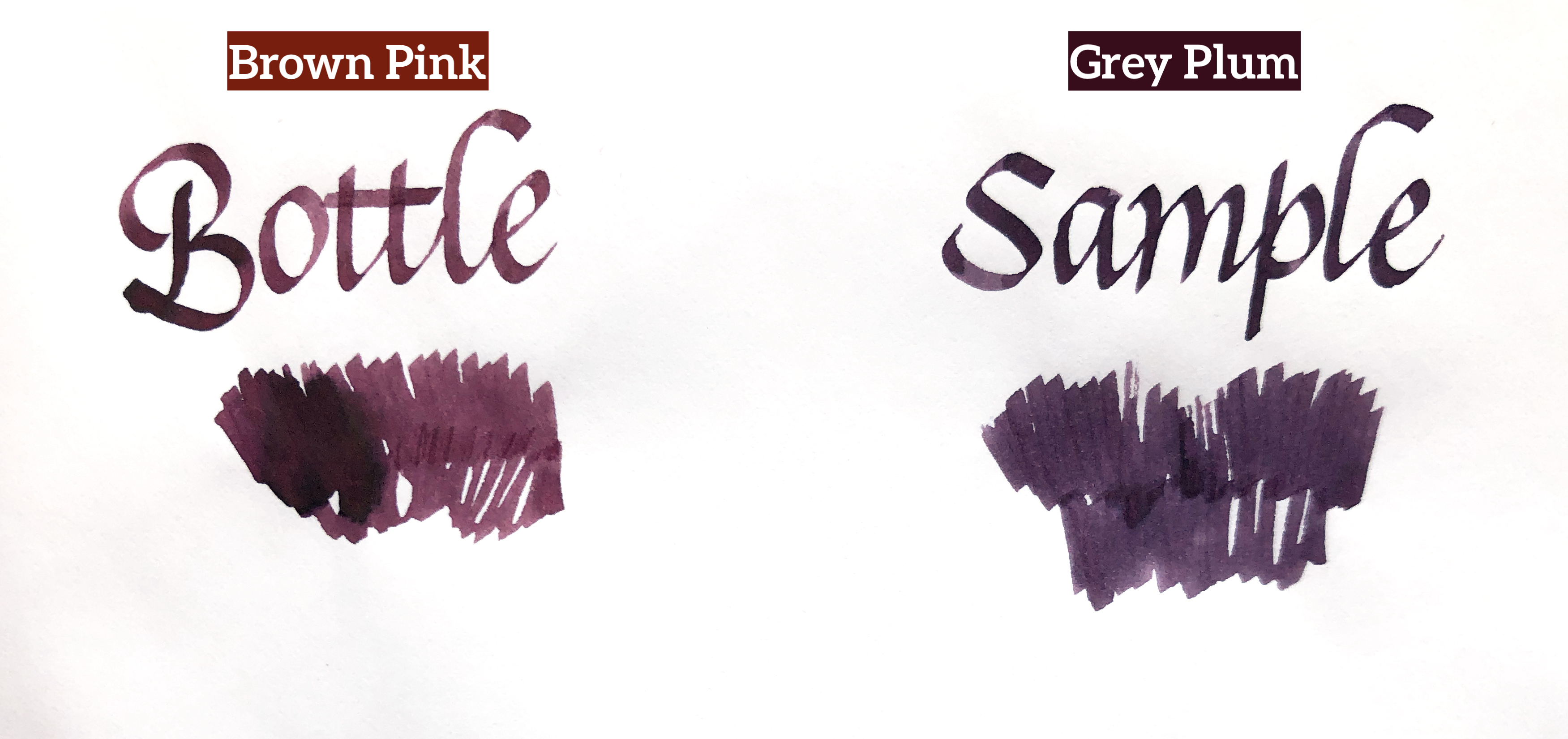 Io ho una bottiglia di Brown Pink e un campione di Grey Plum. La foto di Baby è esattamente come i due inchiostri sono. Ora capisco però perché faticavo a vedere il confronto con Brown Pink da Silvia... perché ho idea che non ci fosse il Brown Pink negli scritti di Silvia