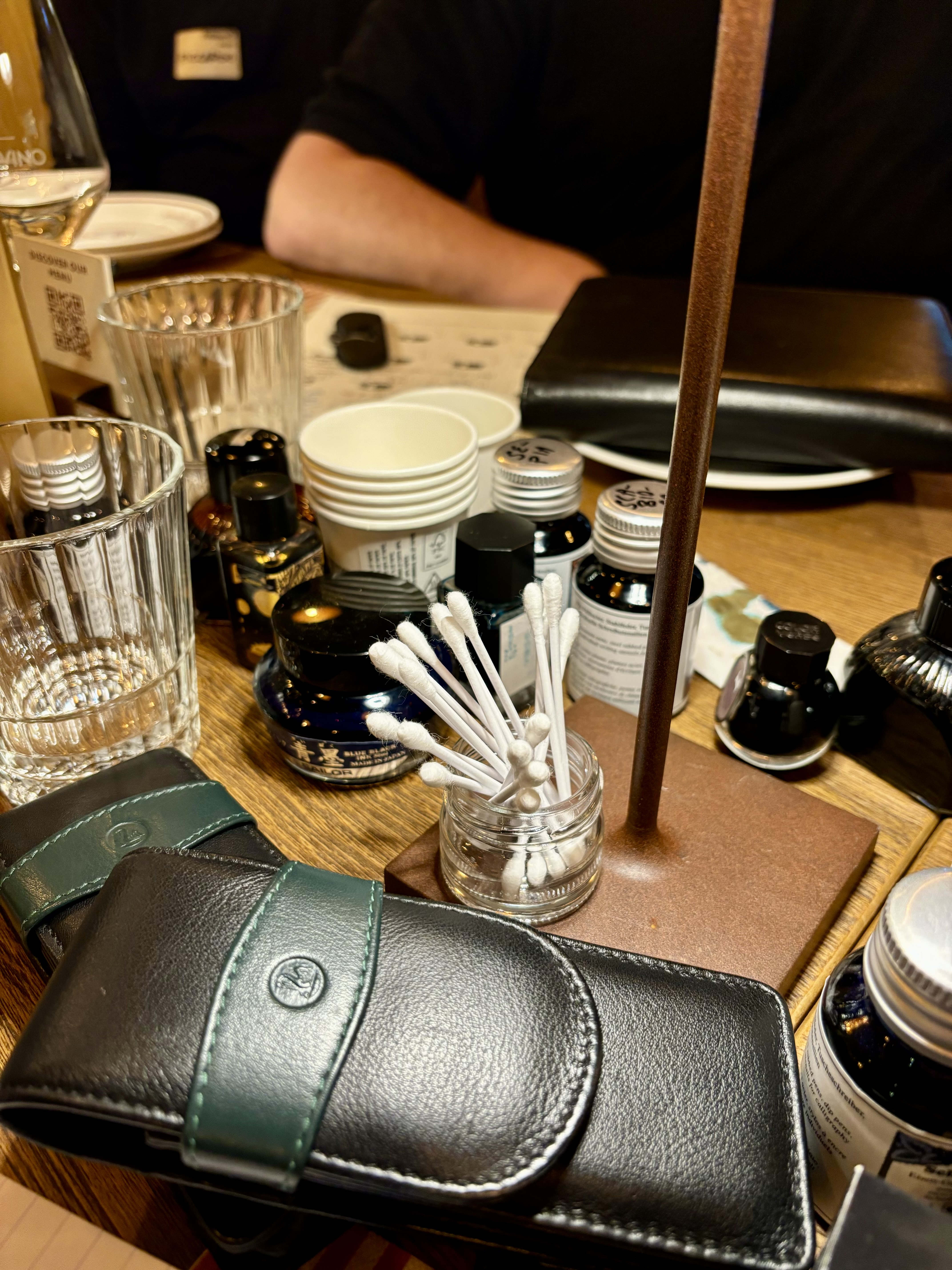 C’è l’angolo dello scambio inchiostro (ne porti uno che non ti piace e ne prendi un altro che vuoi provare), c’è un po’ di carta con cui pasticciare, ma soprattutto ci sono appassionati come te con cui fare delle chiacchiere.
