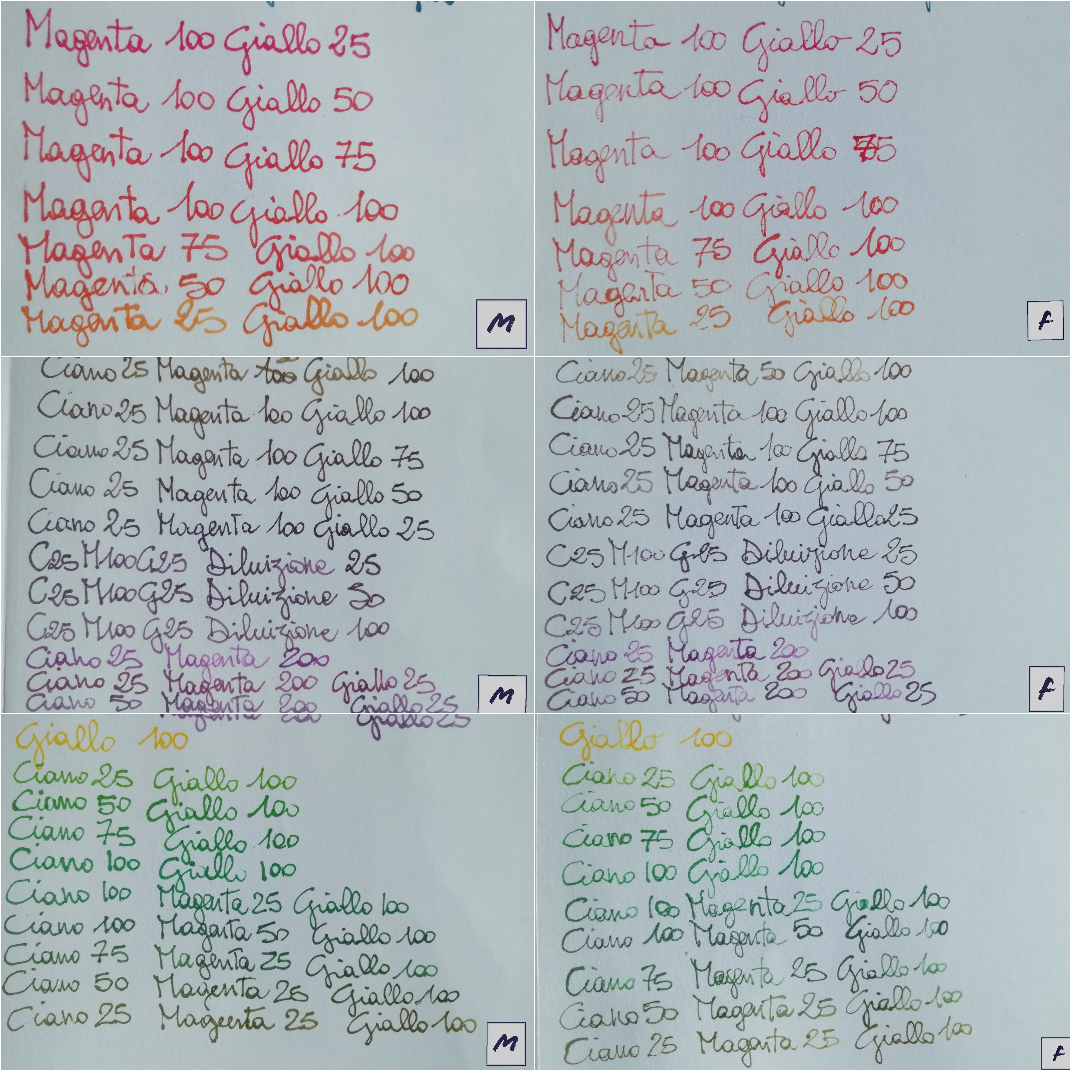 Le percentuali dipendono prima di tutto dalla ricchezza di colorante presente negli inchiostri di partenza.