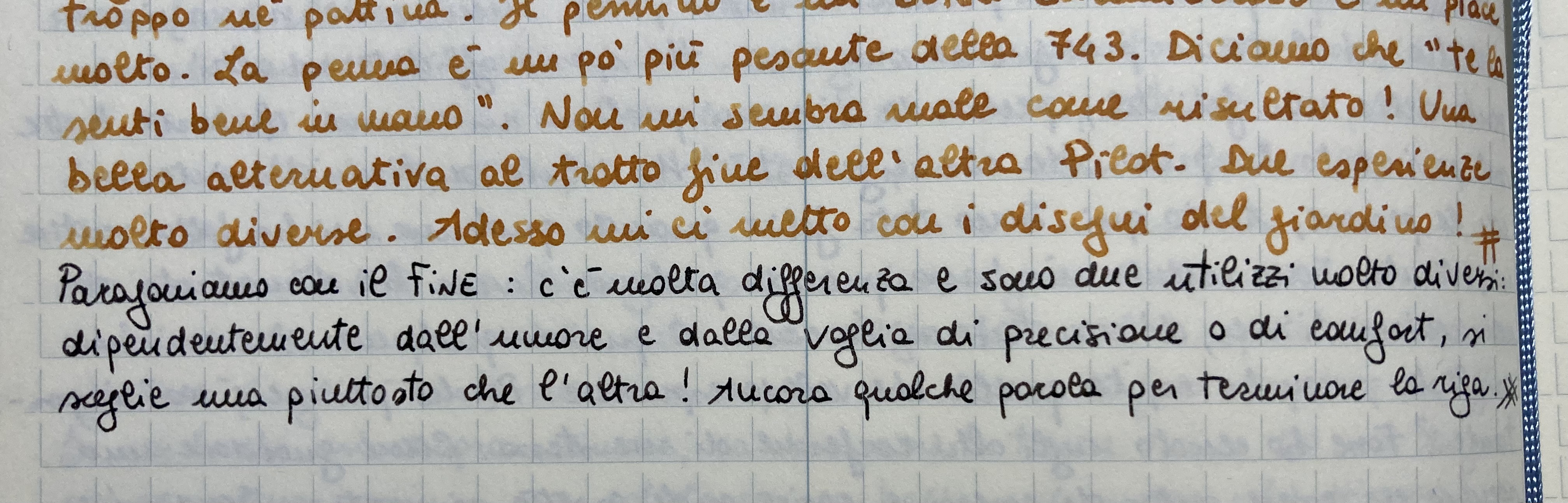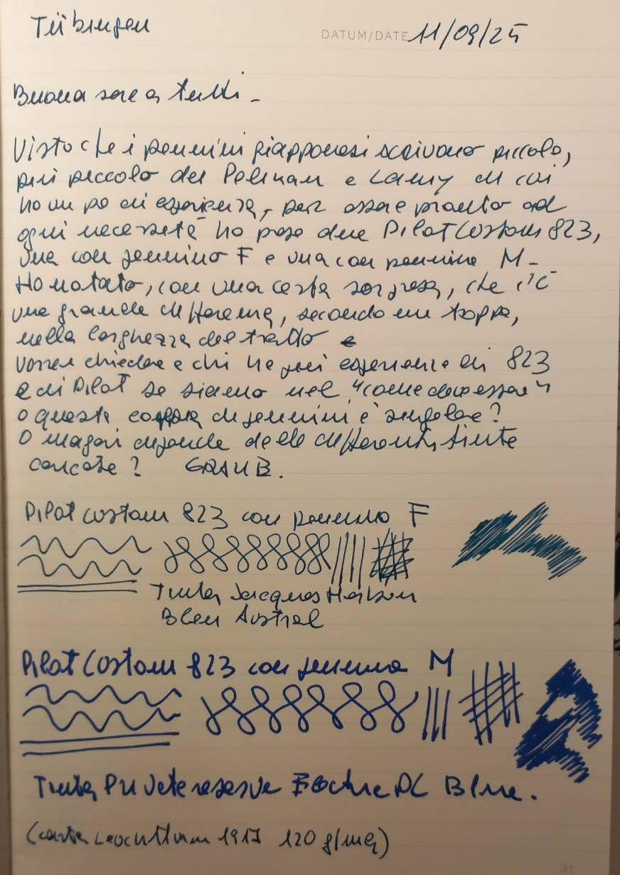 Vere entrambe le ipotesi: sicuramente l’inchiostro fa differenza, ma è anche normale che ci sia tanta differenza, perché Pilot offre la taglia intermedia FMPurkaballo ha scritto: ↑venerdì 12 settembre 2025, 0:21 Vorrei chiedere a chi ha più esperienza di 823 e di Pilot se siamo nel "come deve essere" o queta mia coppia di pennini è singolare?