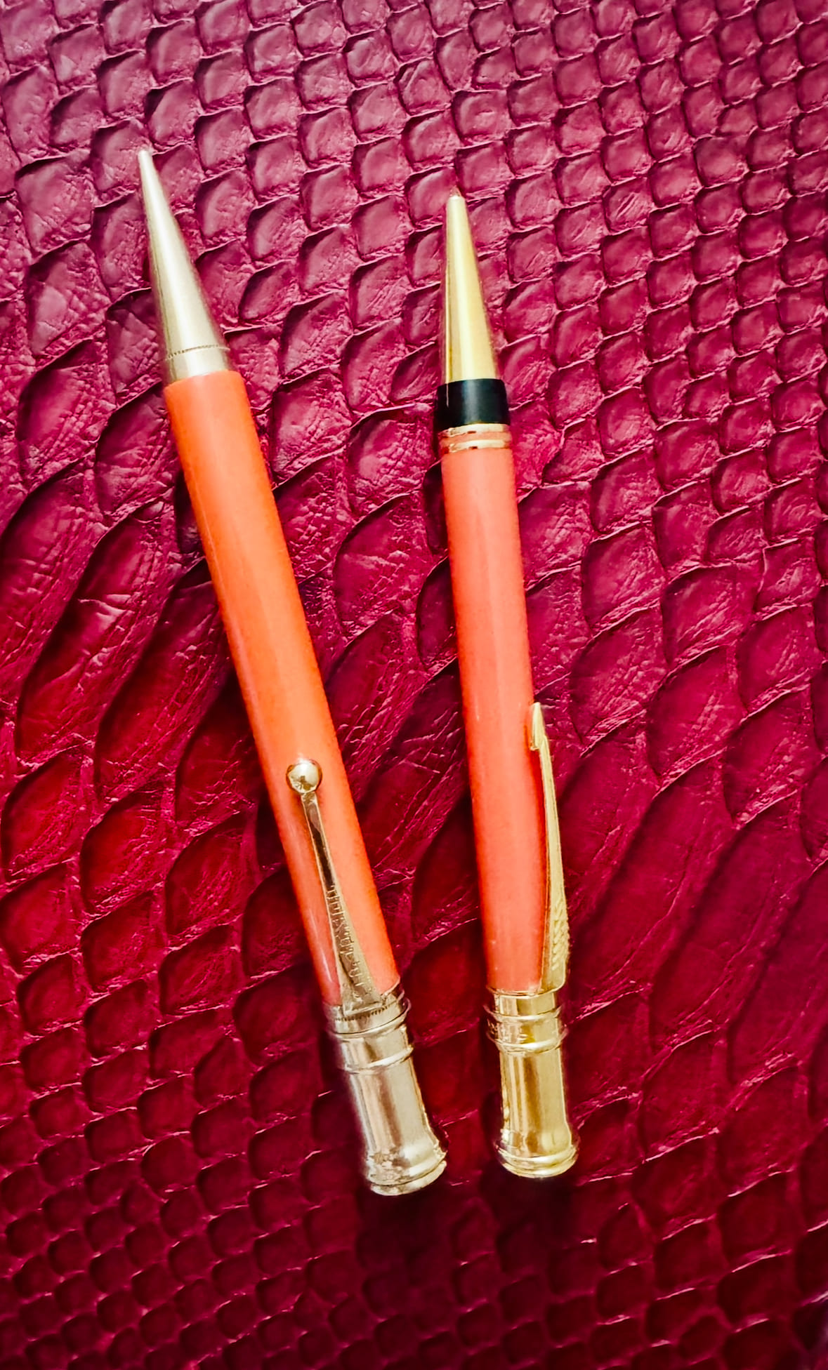 # 1991 biro e Pencil “big bro”, in teoria una delle prime prodotte, per via della scritta (poi abbandonata) e per la mancanza delle “bande nere” alle due estremità, inserite negli anni successivi per abbinarsi meglio alla colorazione (arancione/nero) della penna… In seguito prodotta anche in altre misure e venduta anche in abbinato alla penna (Parker Duette)