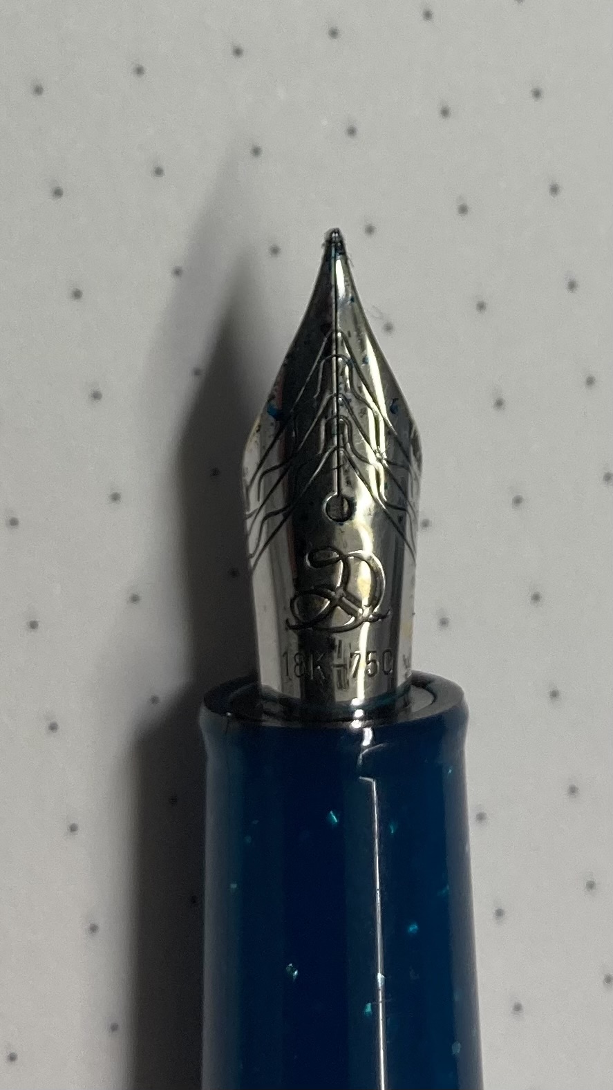 Oggi stavo facendo ordine per far spazio a una nuova penna, ma il corriere mi ha avvisato che sarà in ritardo, quindi mi sono consolato giocando con le cose da sistemare che ho lasciato indietro. Mi ritrovo questo pennino che per ora equipaggia una Jinhao 82, il suo fusto era in metallo ed è andato perduto insieme all’alimentatore. Mi chiedevo se fosse possibile donargli un alimentatore in ebanite e magari un fusto migliore, dovrebbe essere un misura 5 di produzione Bock, ma non ne sono sicuro, avevo pensato che potesse entrare nella Dolcevita Slim ma non ne sono sicuro. Avete qualche consiglio? Mi piace molto come scrive.
