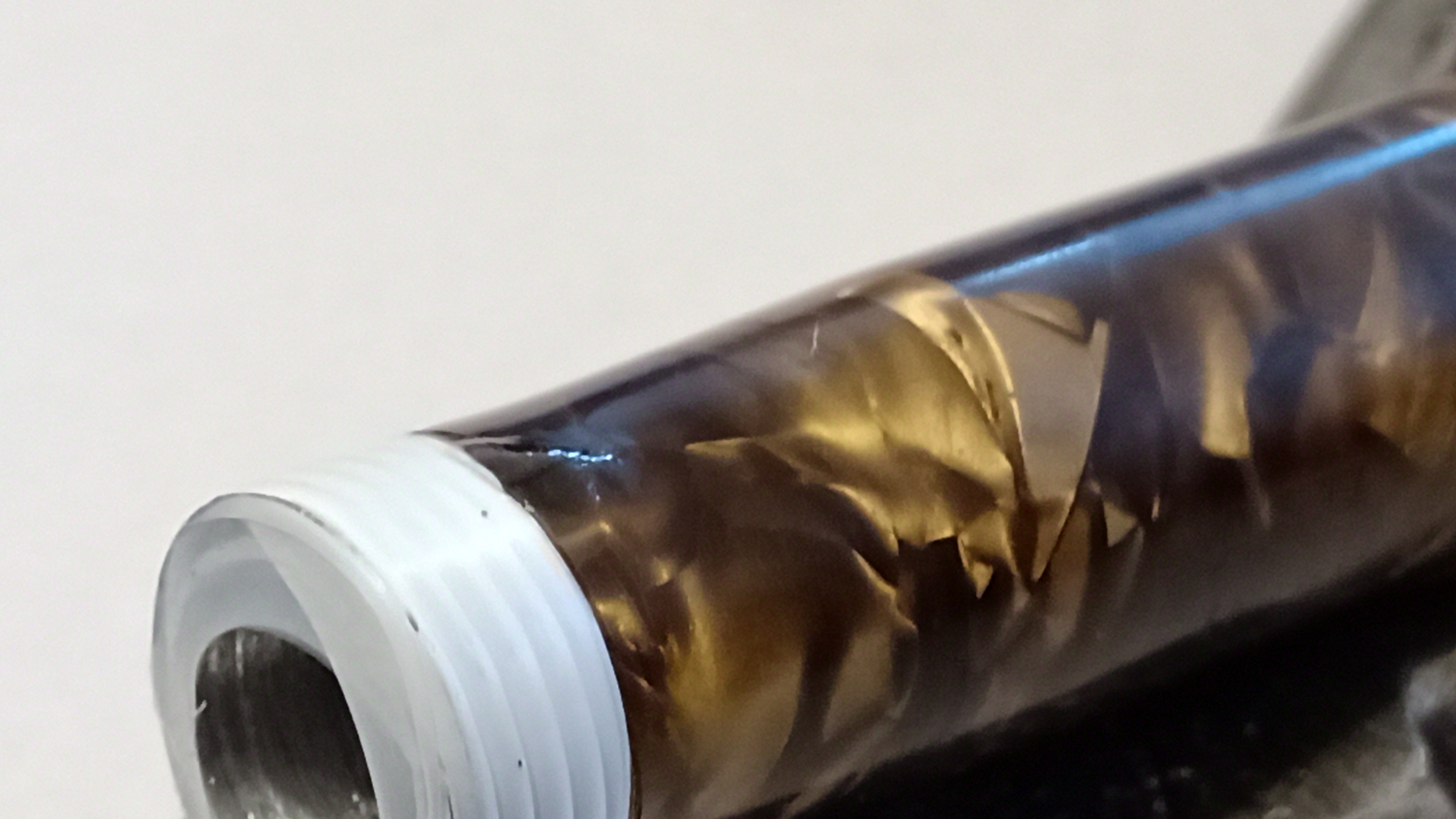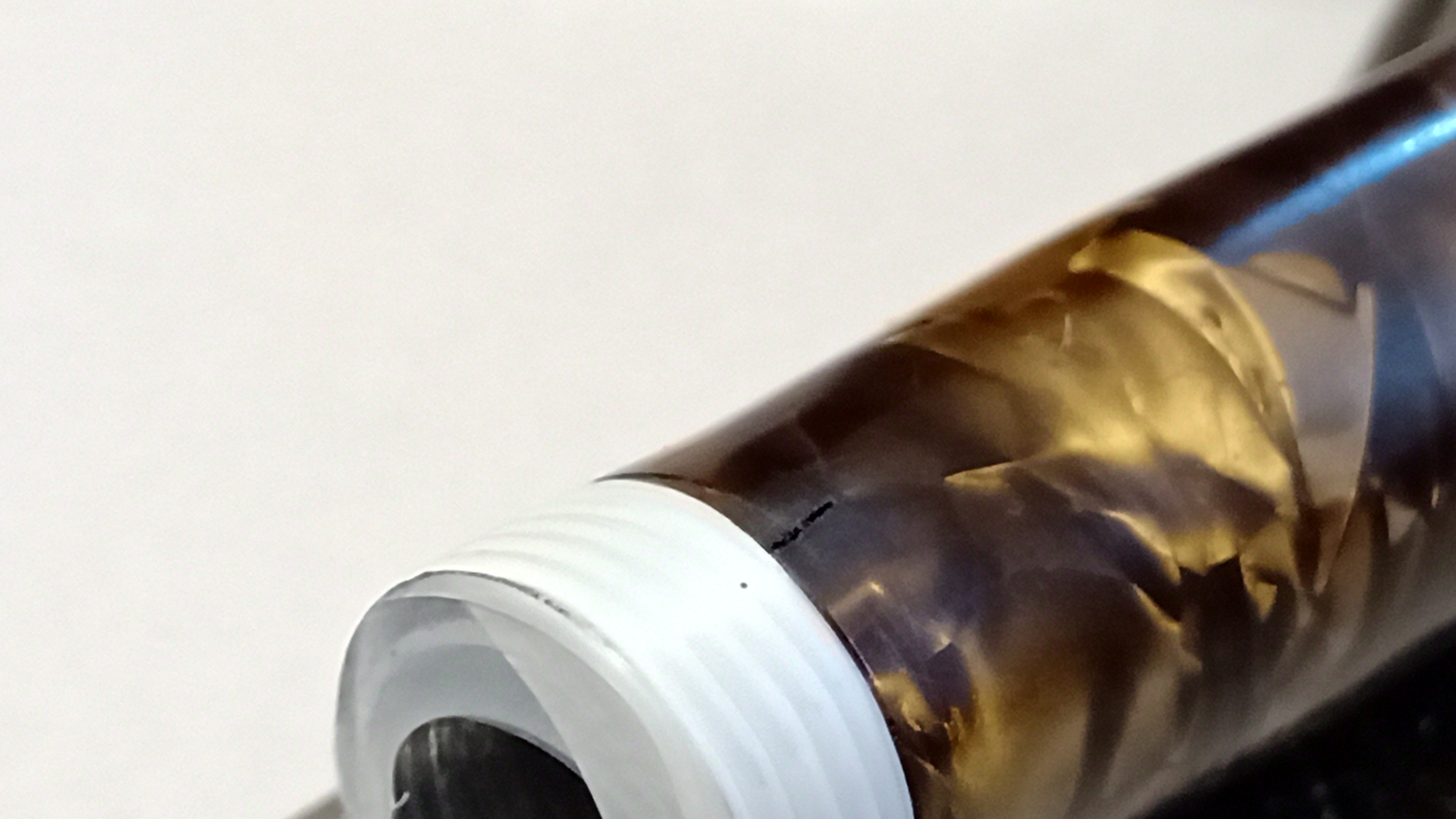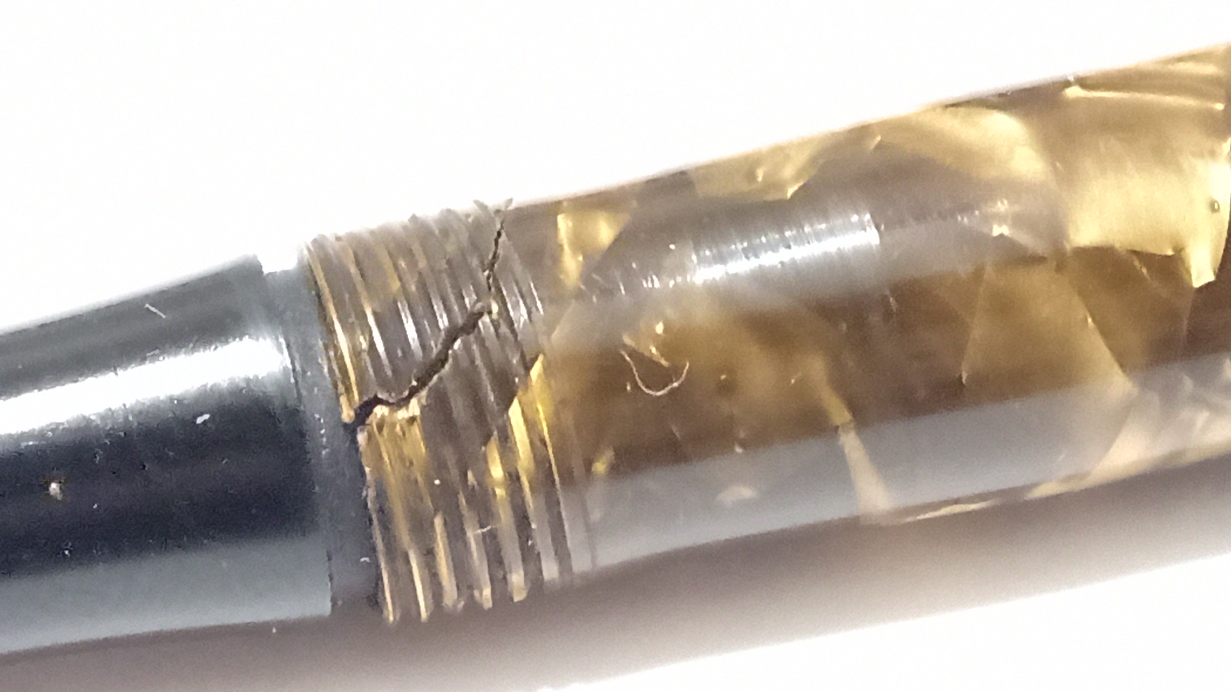 El principal problema que iba a precisar de un trabajo interesante, se encontraba en el encastre a presión del grip en el barril, donde una tremenda rajadura se había producido, tal vez producto de la diferente deformación de los materiales, comprometiendo no sólo la estructura del barril, sino su funcionalidad para escribir y hasta para roscar en el capuchón...