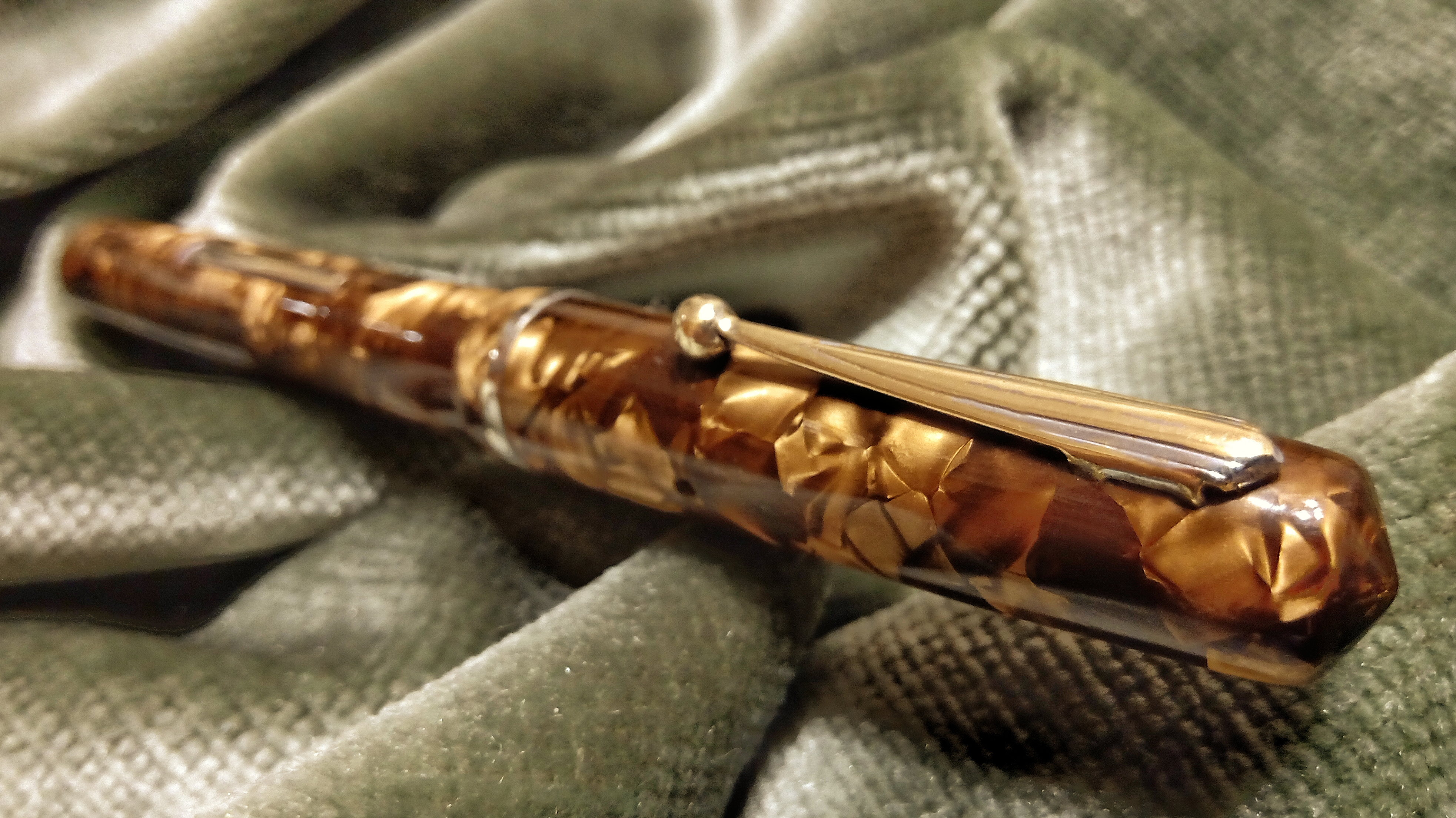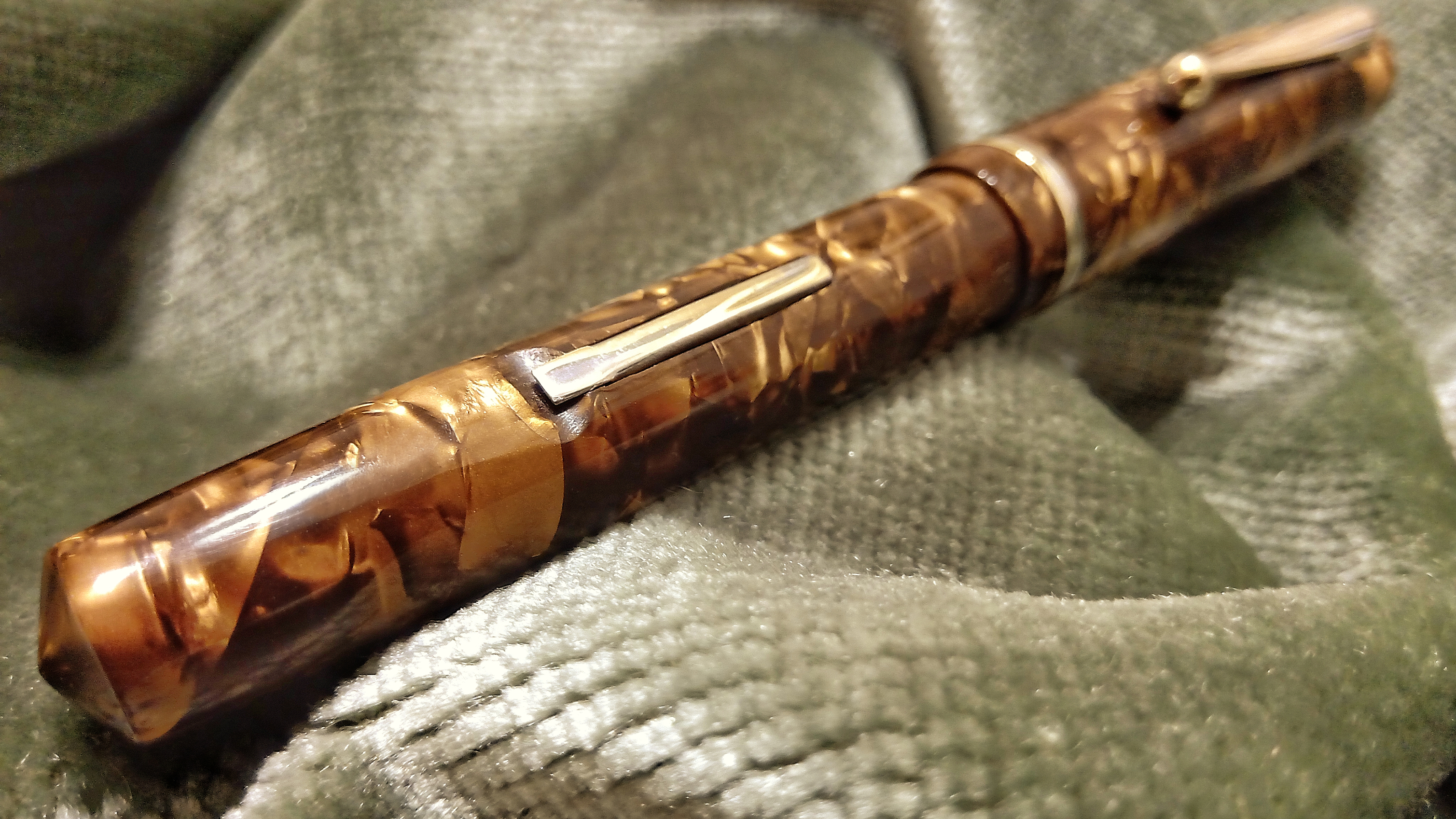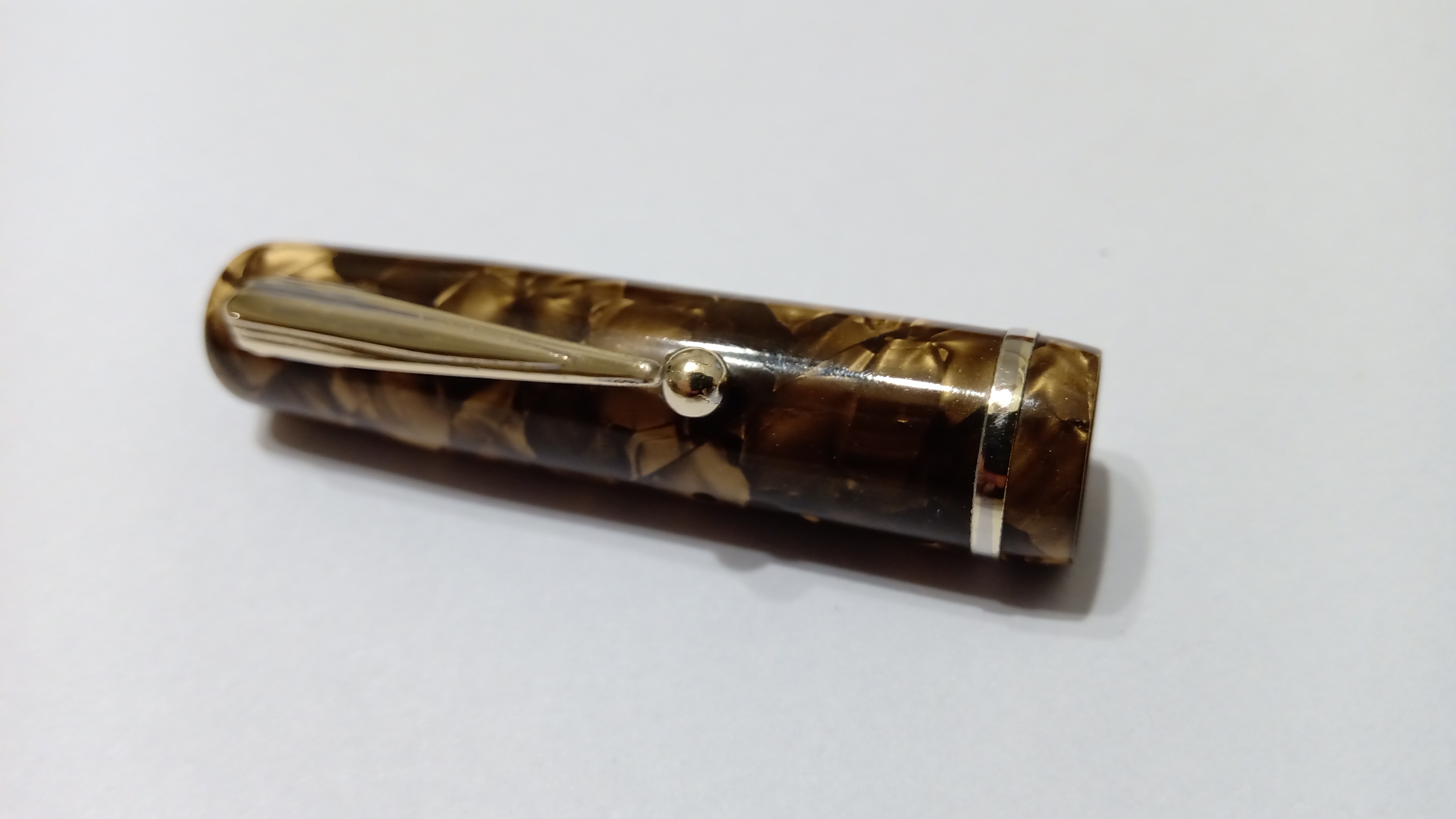 Ho quindi pulito sia il fusto che il cappuccio con un detergente neutro diluito al 50%, ma per precauzione ho dato una leggera levigata al cappuccio per verificare che il materiale fosse celluloide, e in effetti ha sprigionato quel piacevole e coinvolgente aroma di canfora...