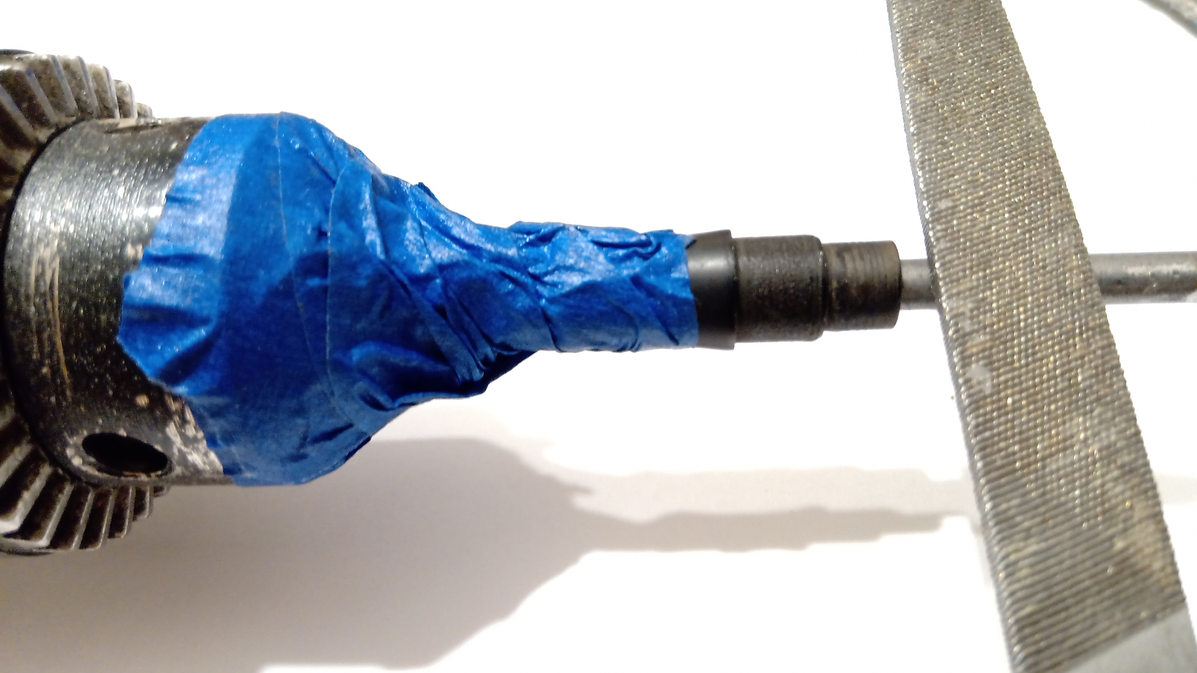 Il giorno successivo, con una lima fine e SENZA RIMUOVERE il fusto dalla morsa, limare l'estremità dello stesso lasciando tutto il pezzo allo stesso livello, quindi liberare il pezzo, rimuovere con molta attenzione il nastro di teflon e dare una finitura finale su una superficie piana con carta abrasiva grana 500...