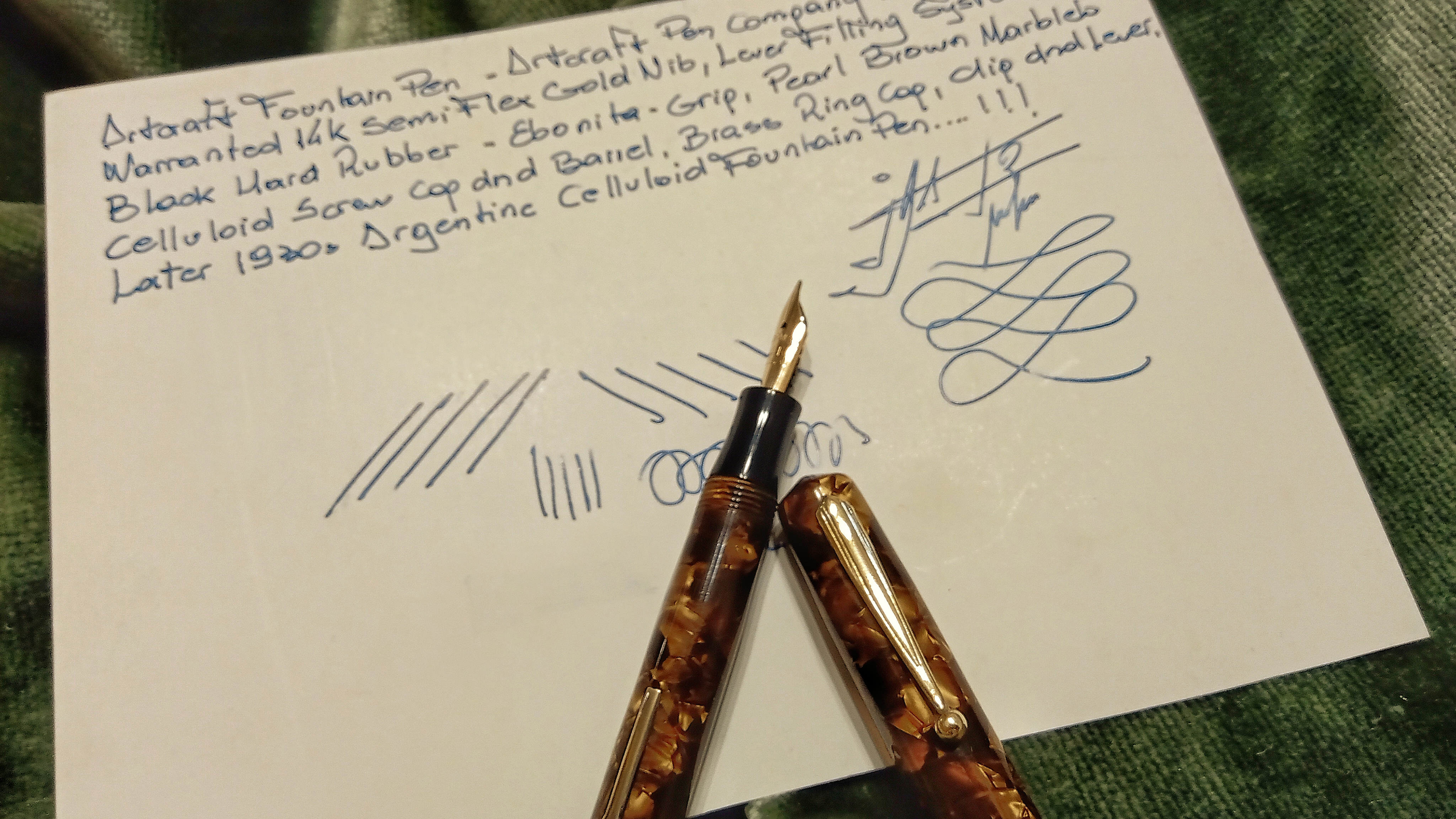 Cari amici, tornando a quel mazzo di vecchie penne che mi era stato regalato, c'era una penna stilografica marca Artcraft fabbricata in Argentina verso la fine degli anni '30...