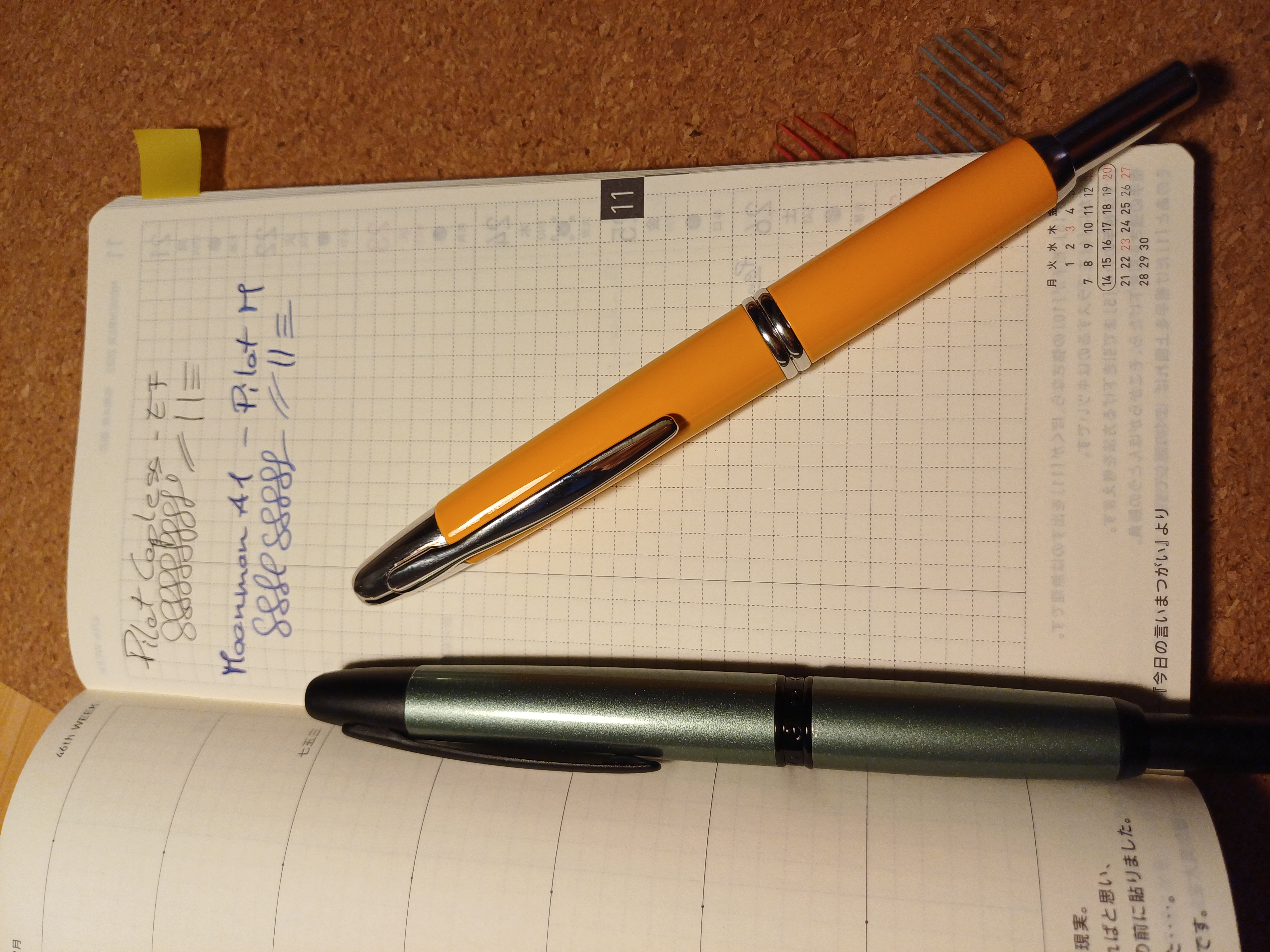 Pennino Pilot EF per la mia Capless gialla. Poi visto che a questo punto mi avanzava un pennino M ho approfittato dei Prime day e preso una Majohn/Moonman A1 da usare con il gruppo scrittura Pilot.