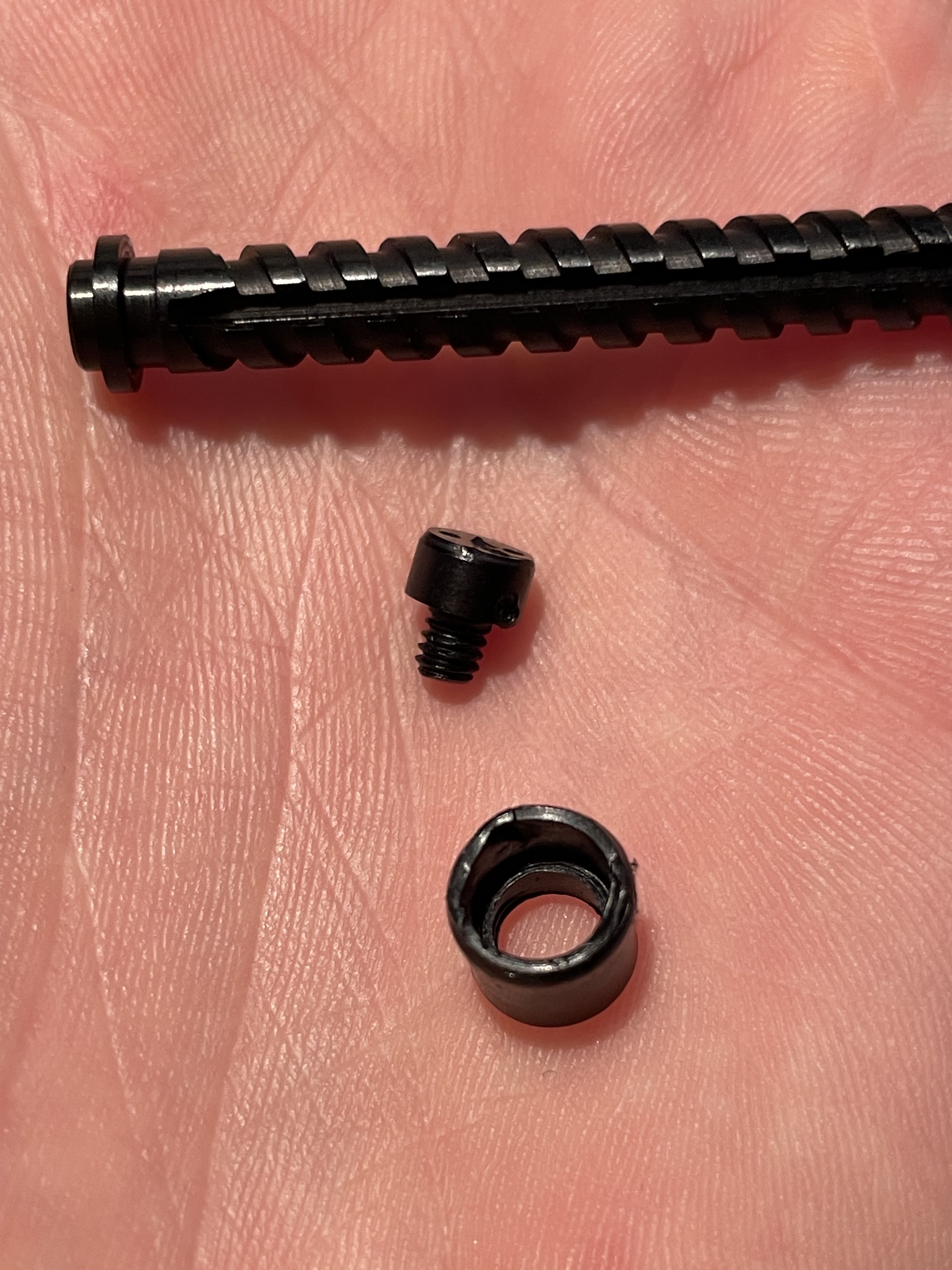 Questa la situazione che ho trovato smontando il pistone ed estraendolo dal fondo (chiaramente rimuovendo preventivamente il blocco filettato a scomparsa con le due scanalature per svitarlo). Il pistone ha una guarnizione sagomata (teflon?) che si fissa all'alberino con una vite. Alberino e vite sono in buone condizioni (la vite arriva a fine corsa e sembra avere buona tenuta). Il problema sembra proprio essere la guarnizione finale, che probabilmente si è ritirata/consumata quanto basta per non garantire più la perfetta aderenza al serbatoio e di conseguenza la tenuta: