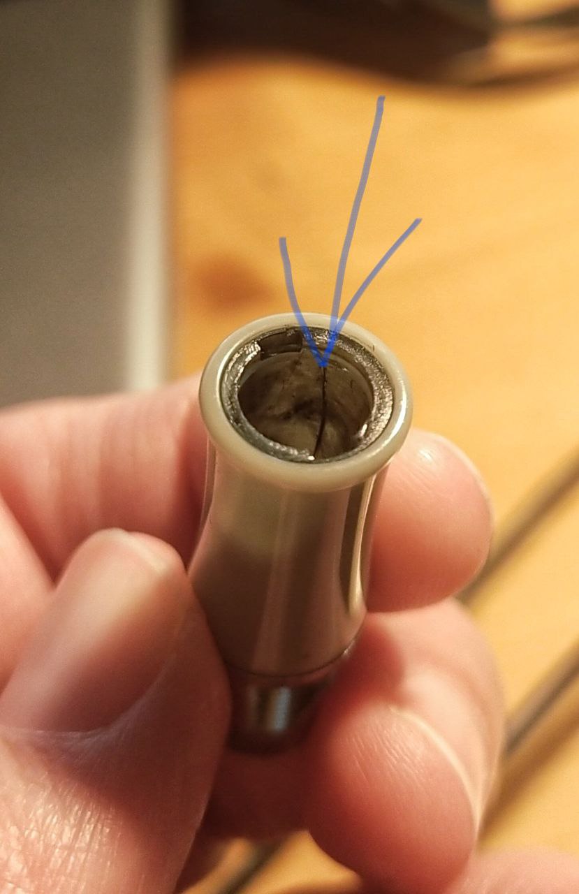 Niente Pelikan, e nemmeno pennini bock credo. Il materiale del collare credo sia davvero tecnicamente sbagliato: sto vedendo che anche sul lato opposto, sull'attacco della cartuccia/converter, risulta coi bordi frastagliati, però ancora tiene. Farò un tentativo come suggerisce Ricart.