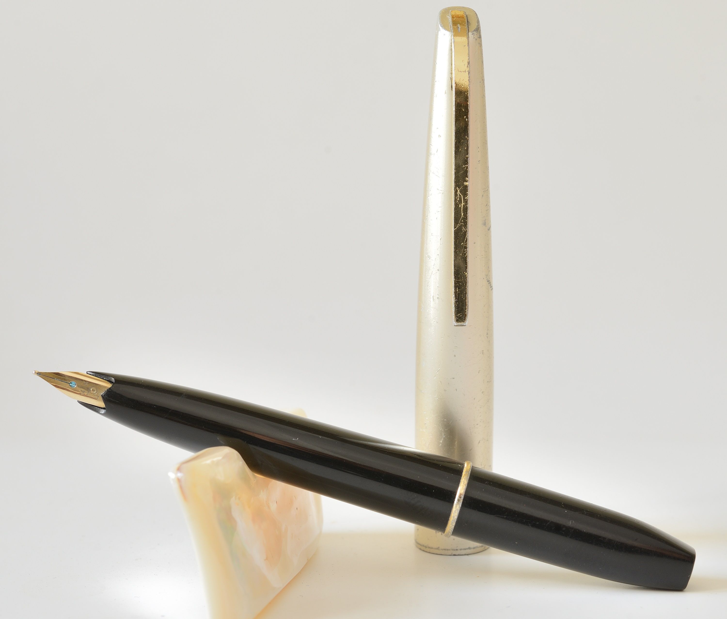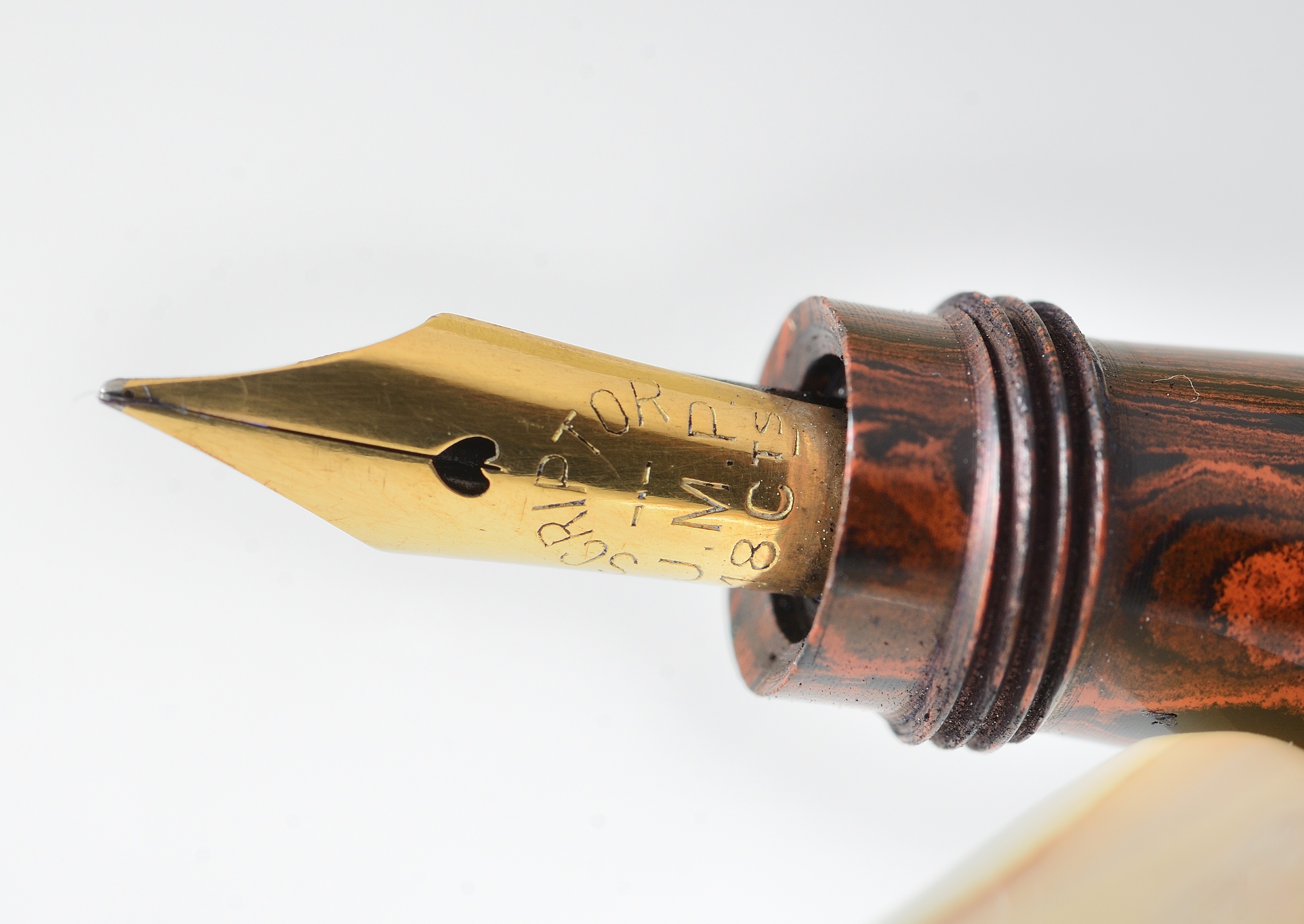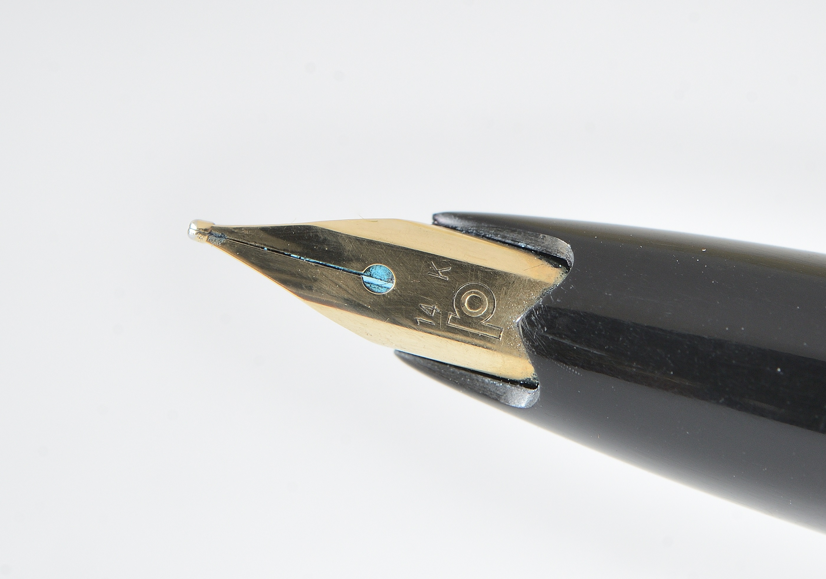 Il pennino in oro 18 Kt porta la scritta SCRIPTOR che sormonta le iniziali J M P (Paillard), in ultimo la titolazione dell'oro.