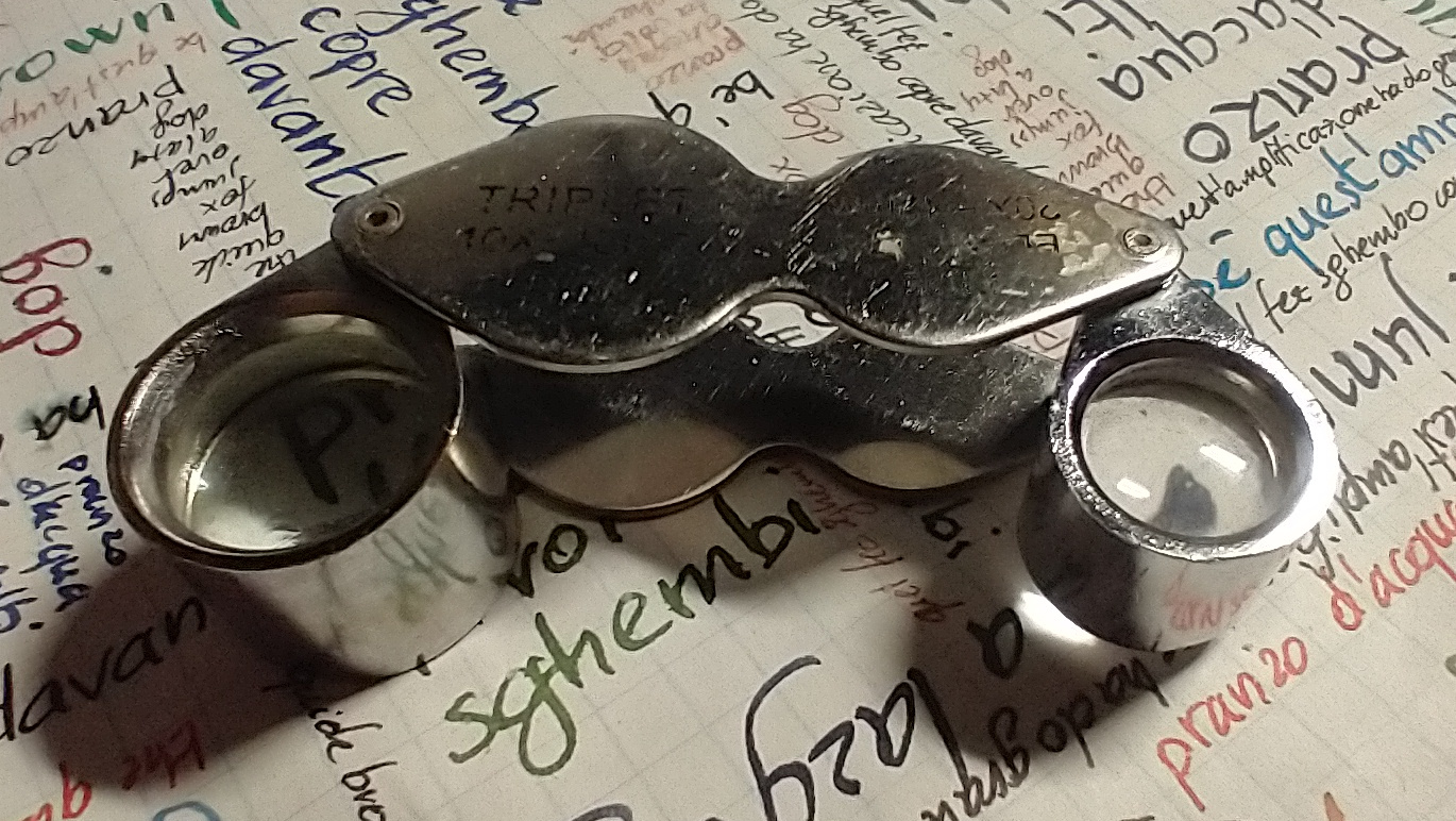 Una lente da francobolli, fra i 7 ed i massimo 10 ingrandimenti (ma meglio 7) lascia di solito un campo visivo decente, ed un ingrandimento più che sufficiente. Ce ne vuole una che consenta una buona l'illuminazione del soggetto, cosa che questa fa:
