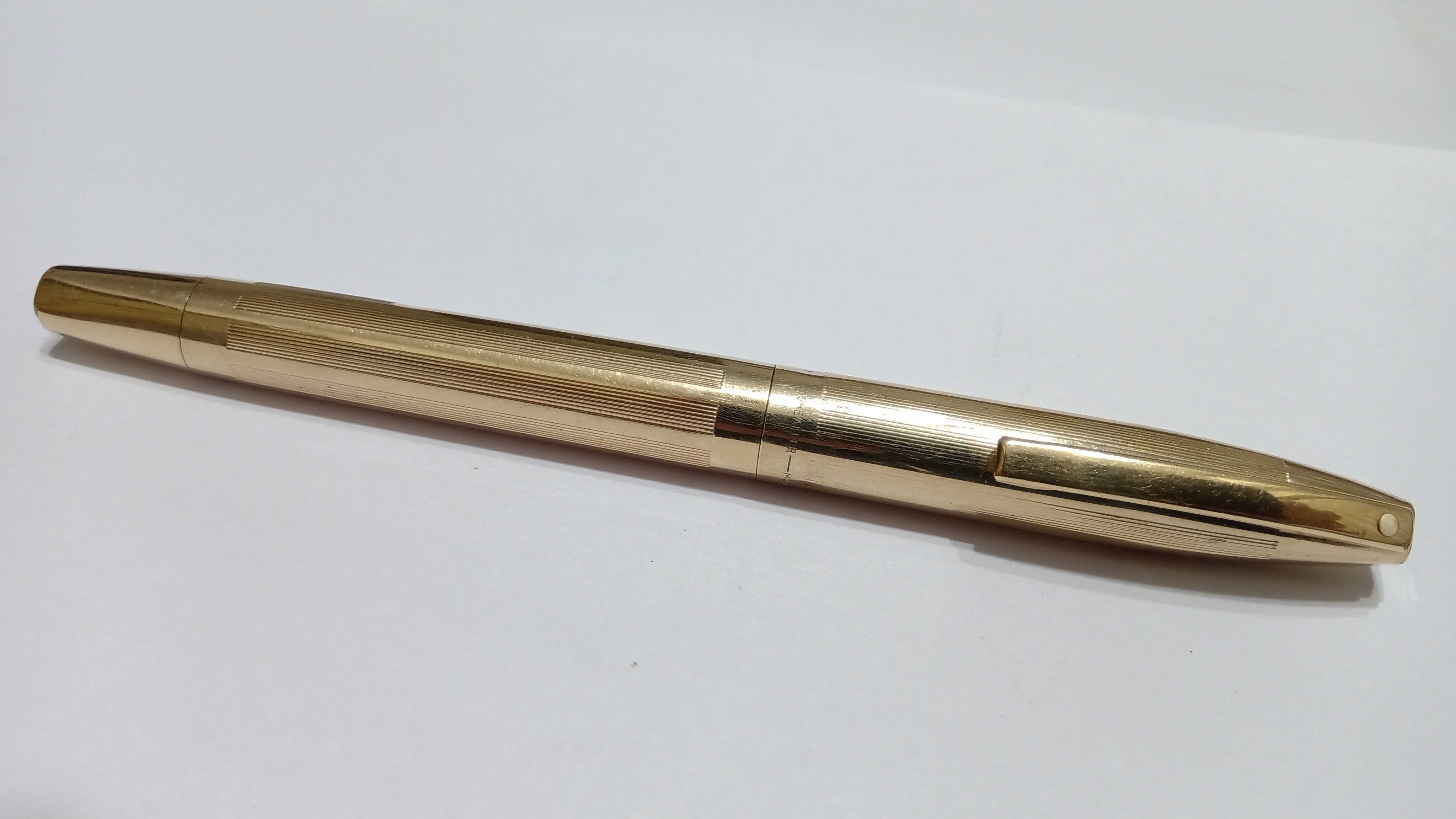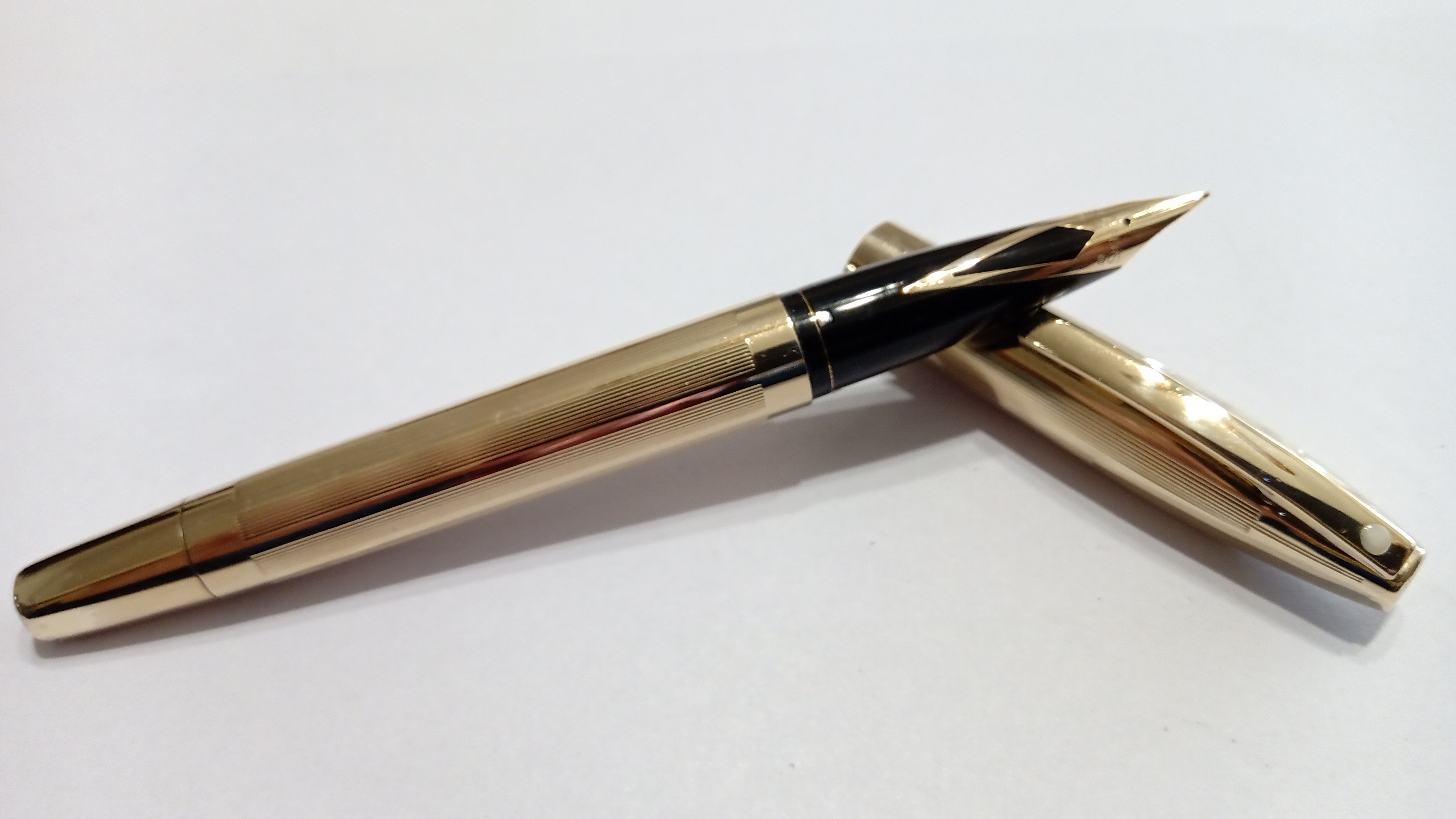 Queridos colegas, entre las piezas que uno de mis amigos me hizo llegar por correo como presente para restaurar, arribó una Sheaffer Imperial Triumph V, con sistema de carga TouchDown y un maravilloso plumín inlaid...