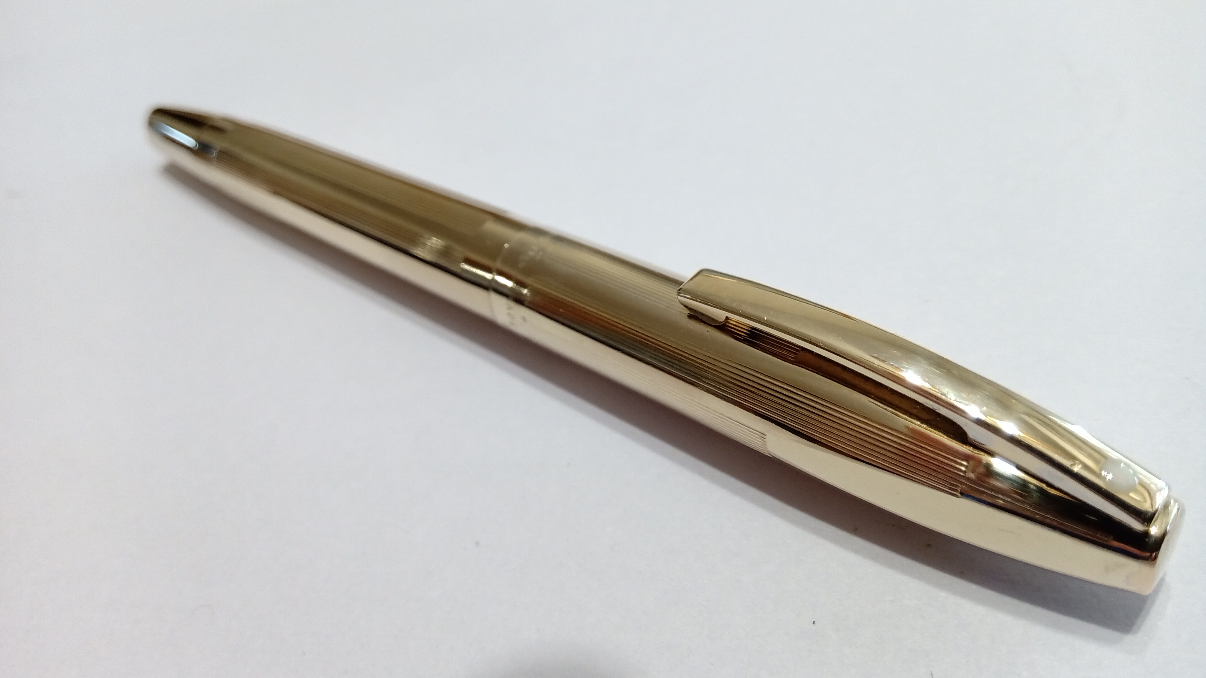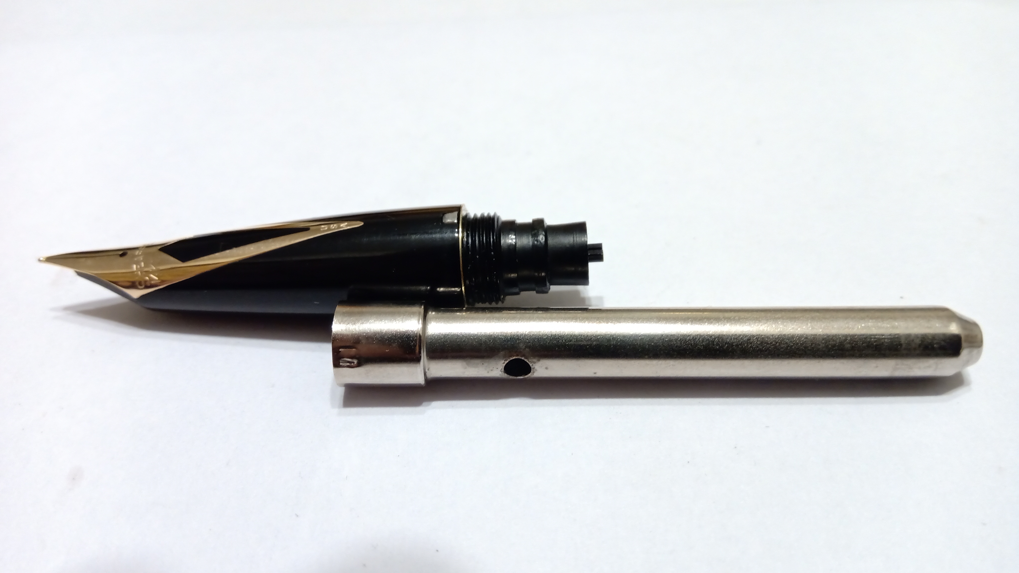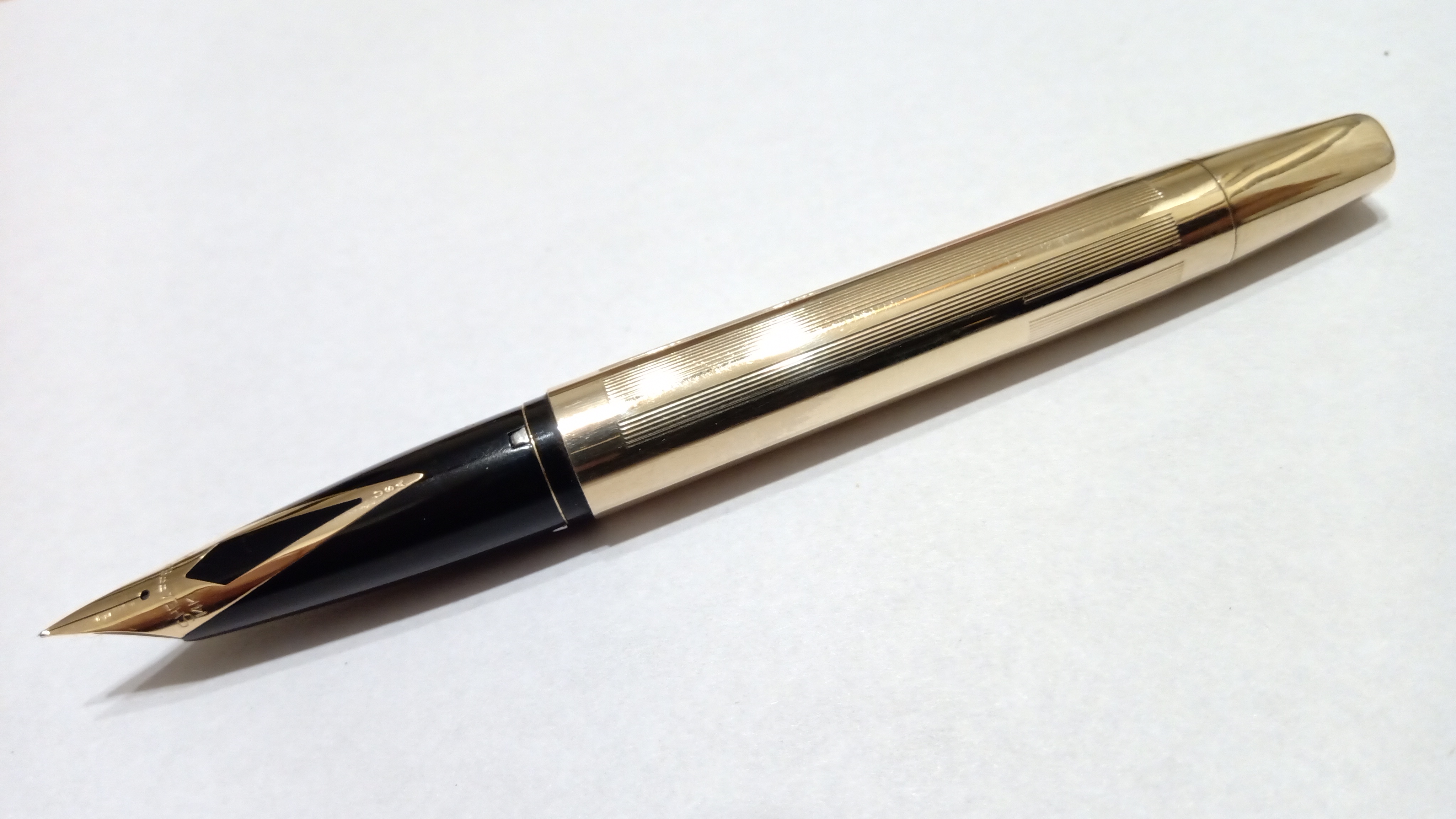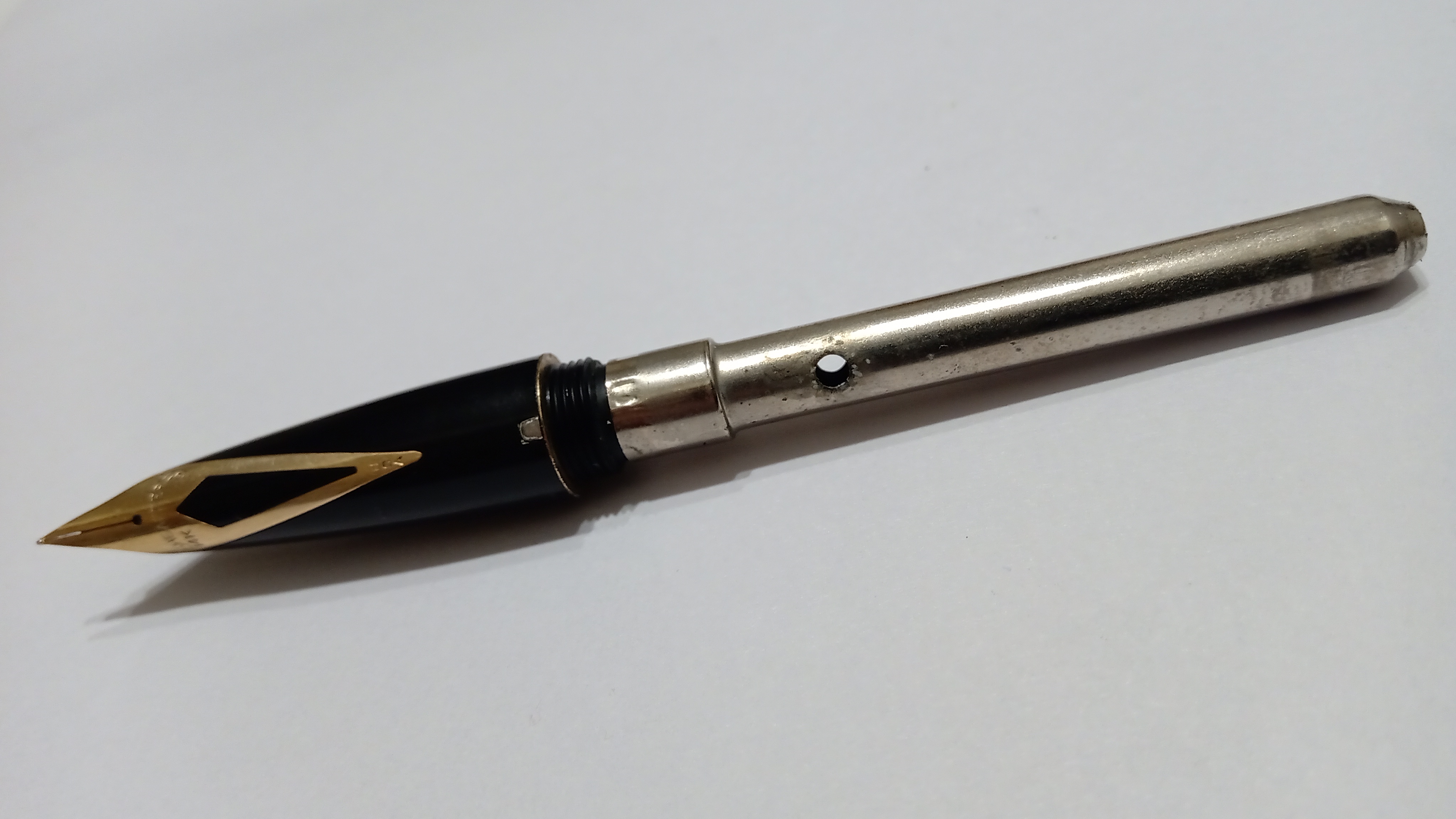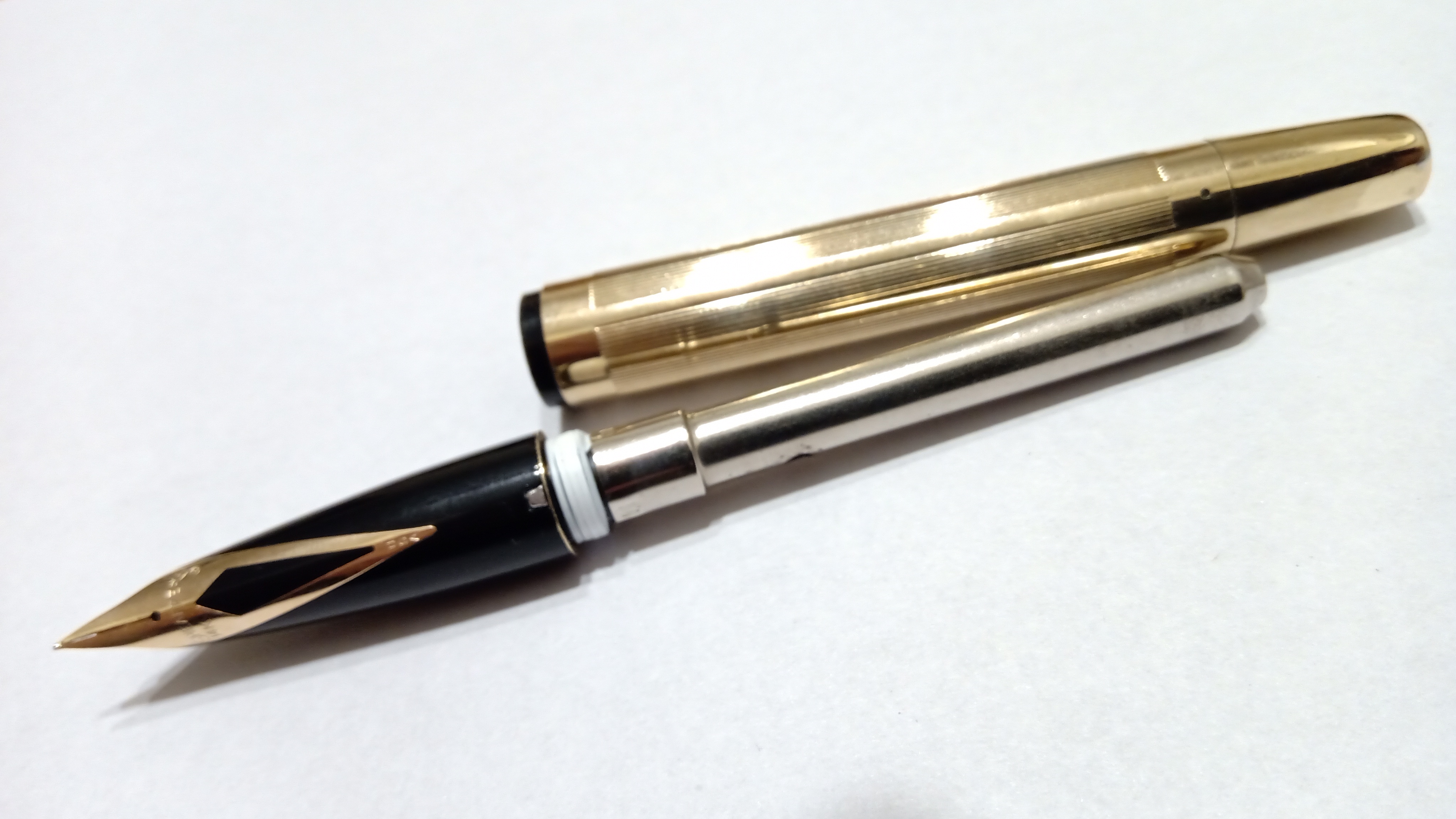 Cari colleghi, tra le penne che uno dei miei amici mi ha inviato per posta come regalo da restaurare, c'era una Sheaffer Imperial Triumph V, con sistema di ricarica TouchDown e un meraviglioso pennino inlaid...