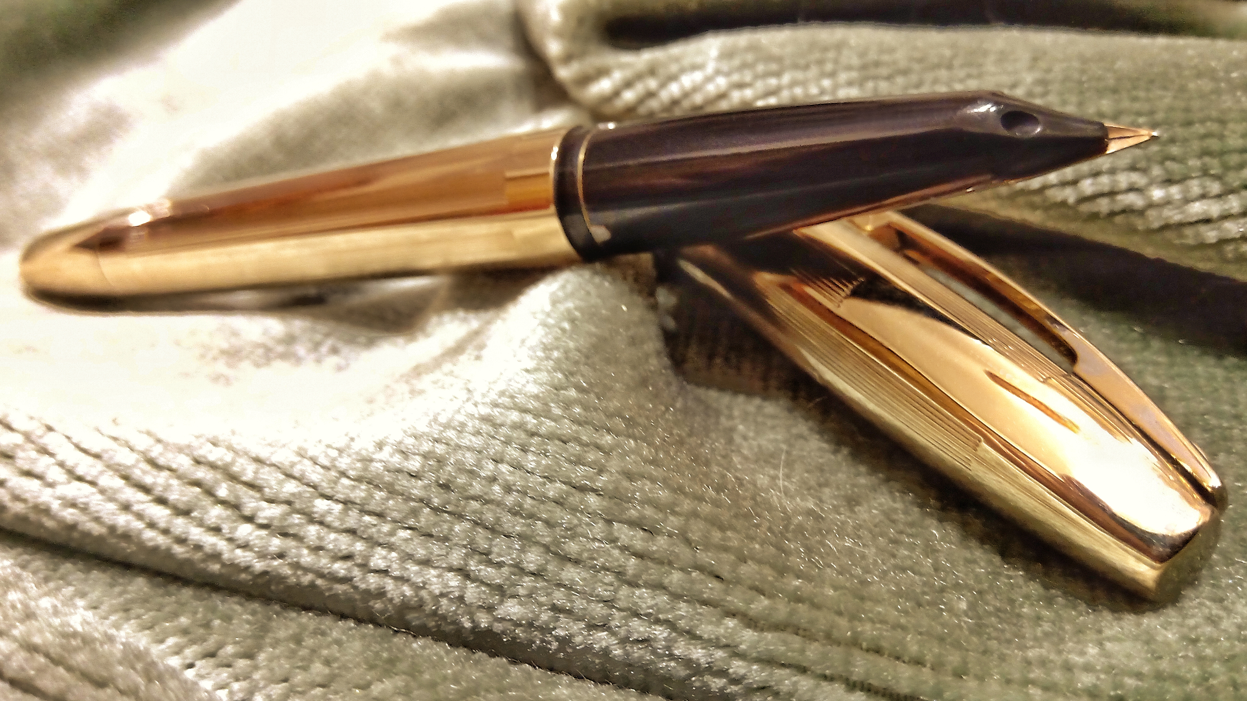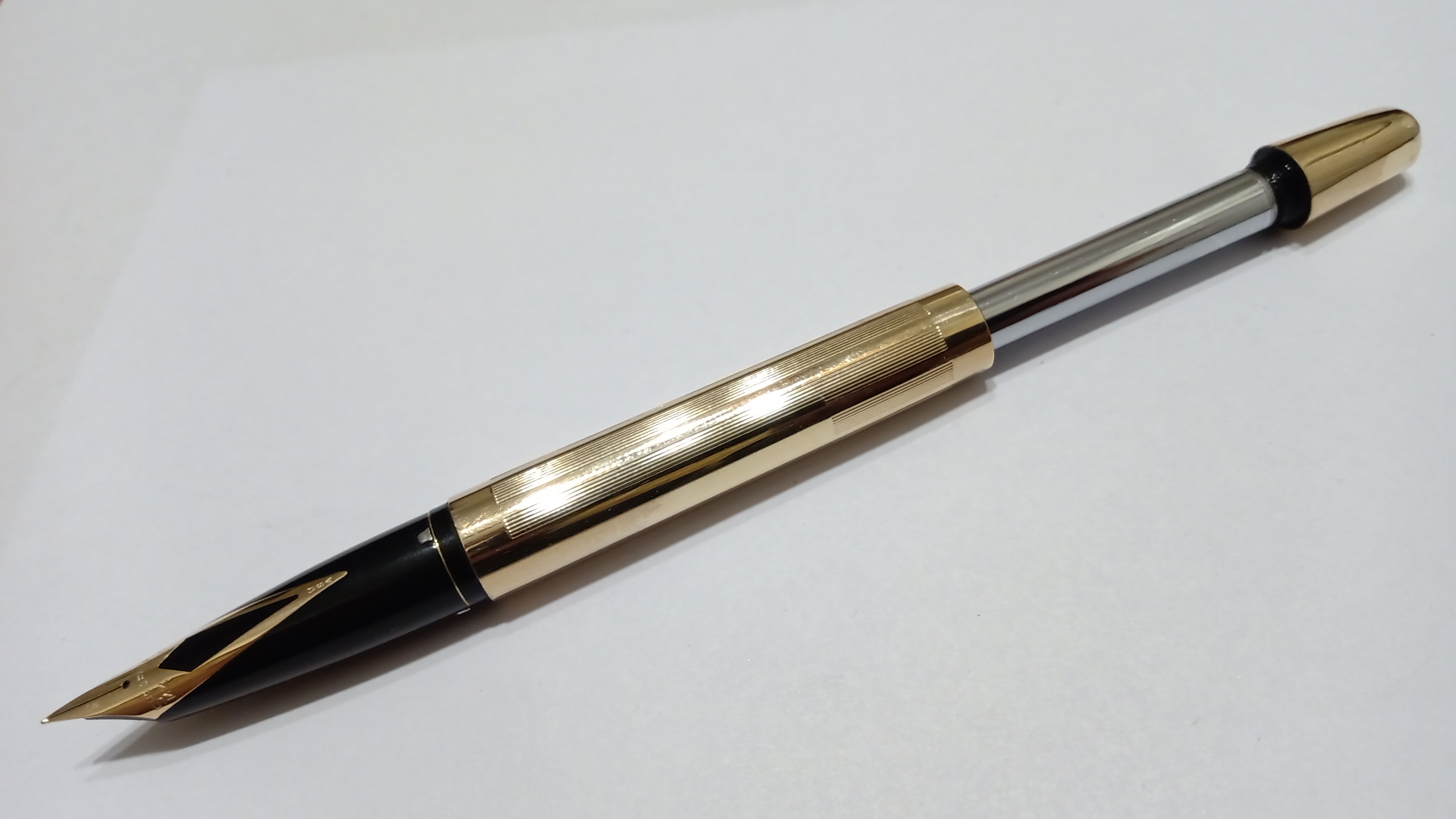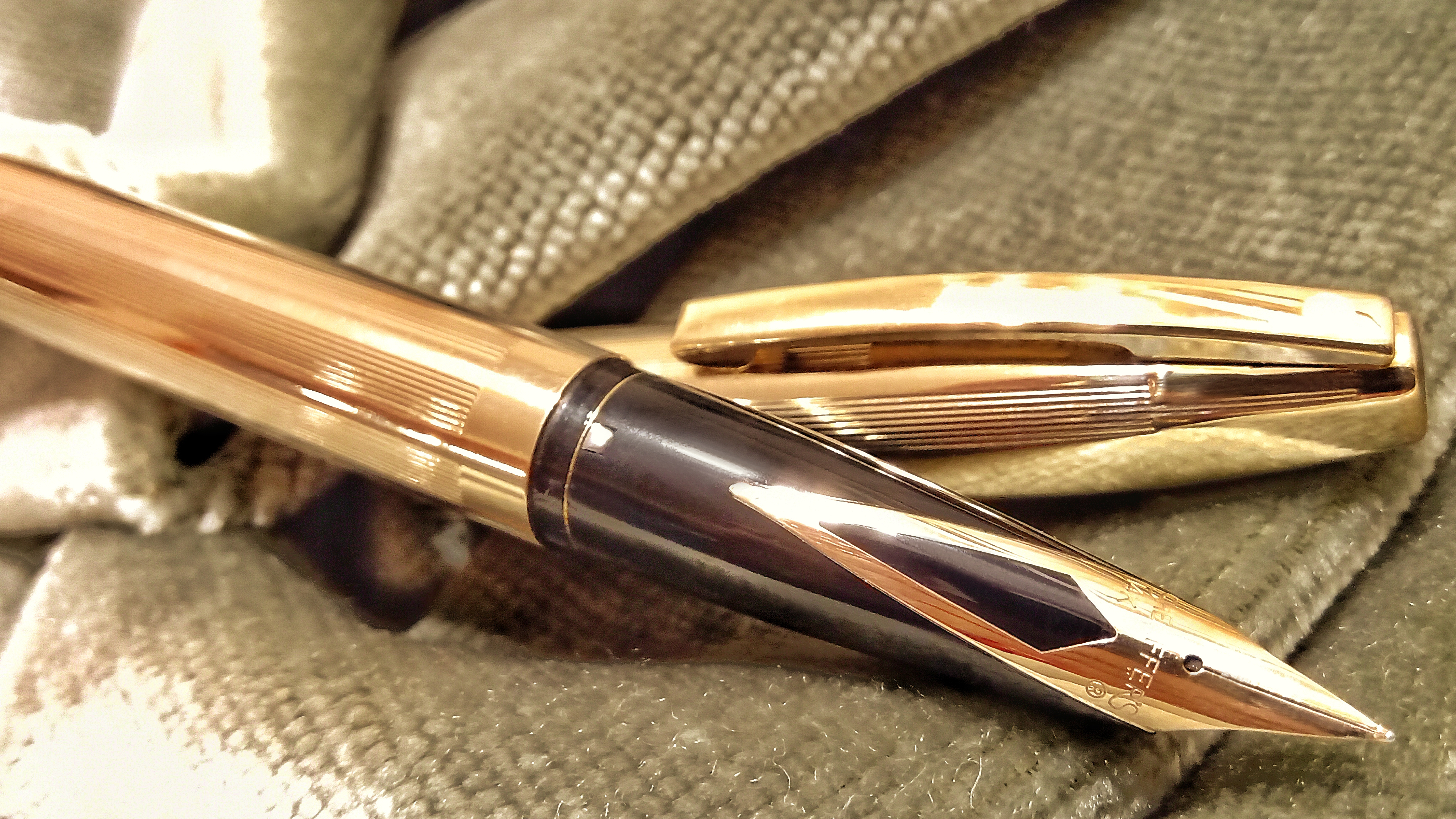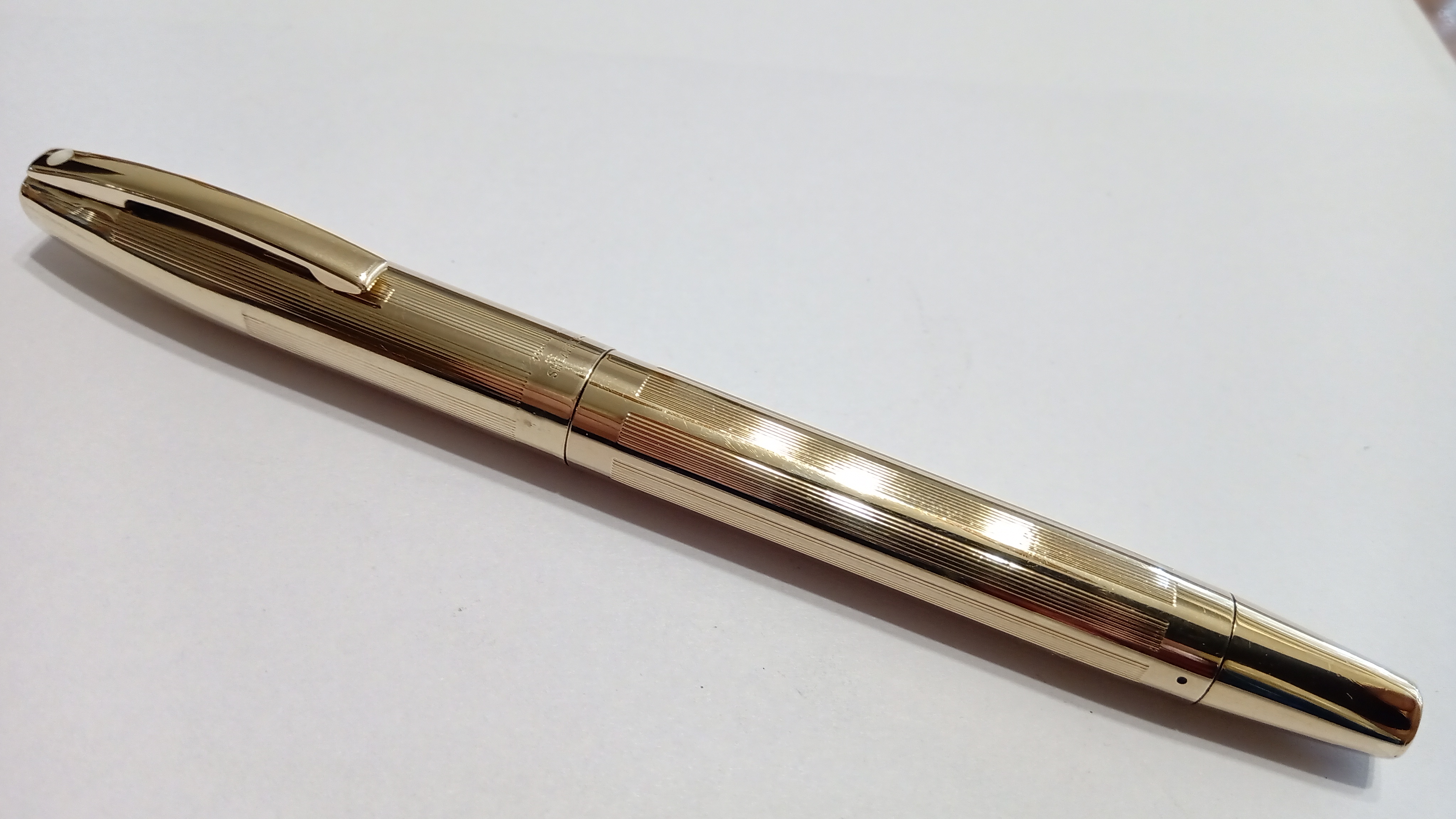 Cari colleghi, tra le penne che uno dei miei amici mi ha inviato per posta come regalo da restaurare, c'era una Sheaffer Imperial Triumph V, con sistema di ricarica TouchDown e un meraviglioso pennino inlaid...