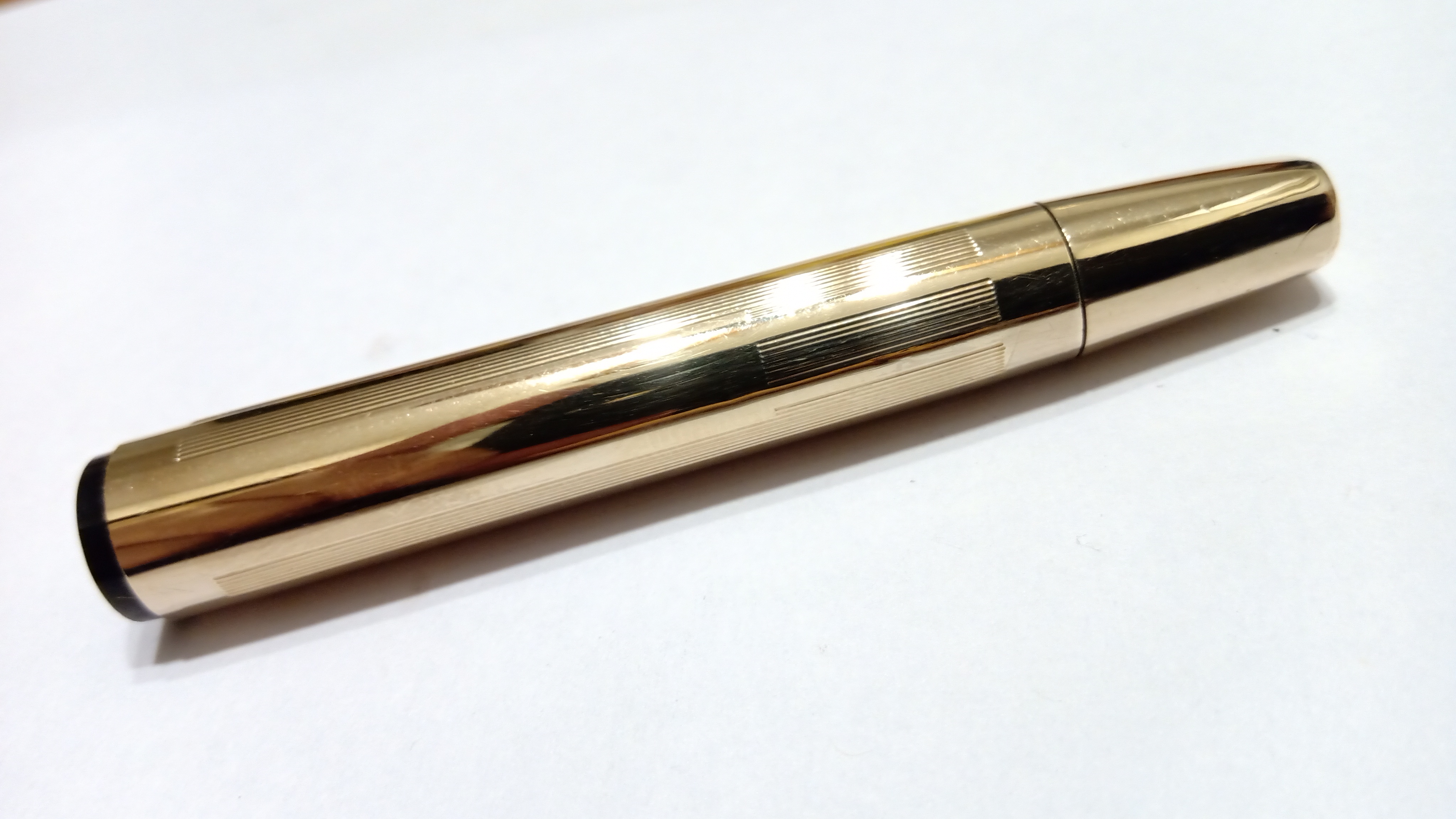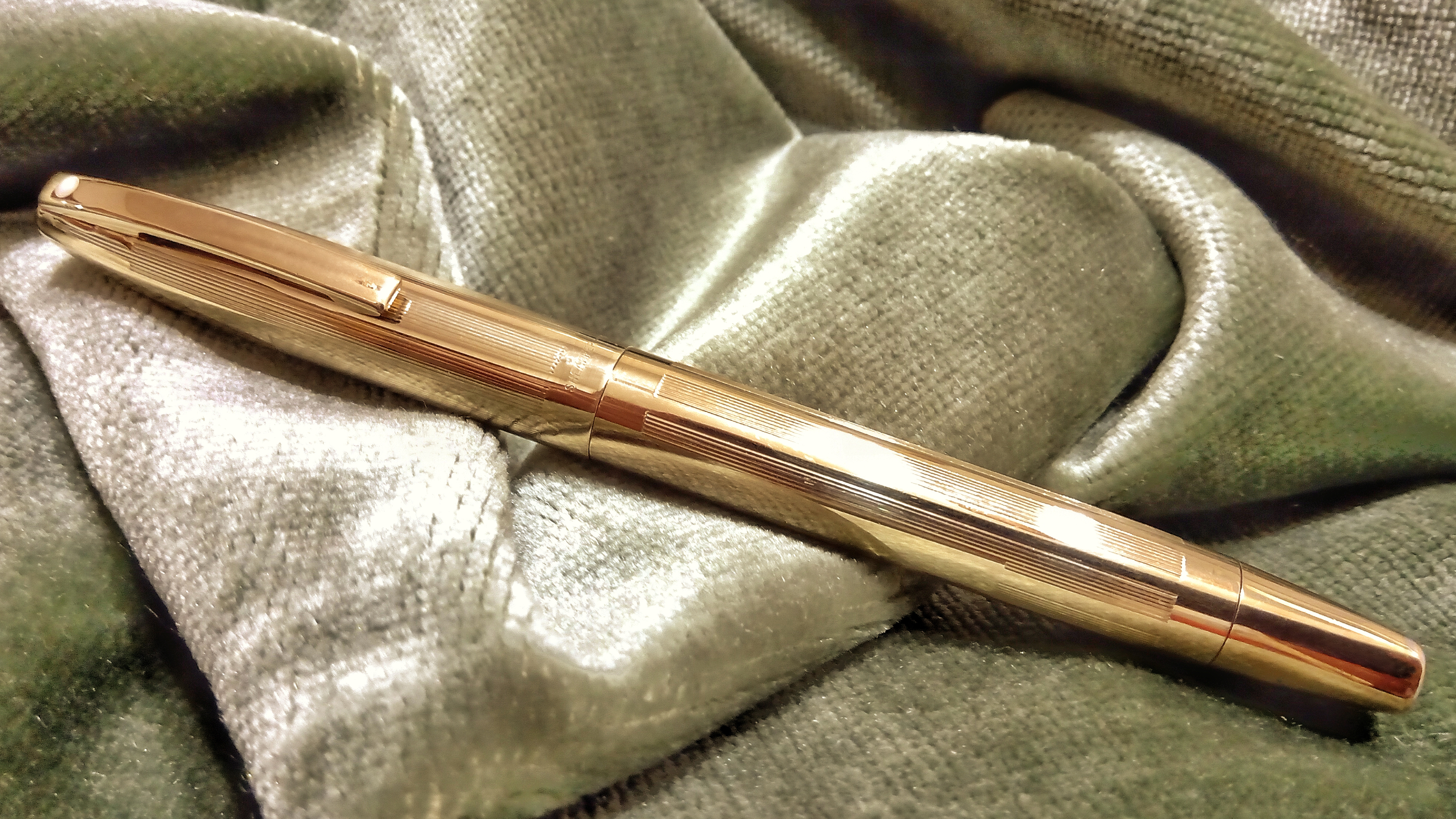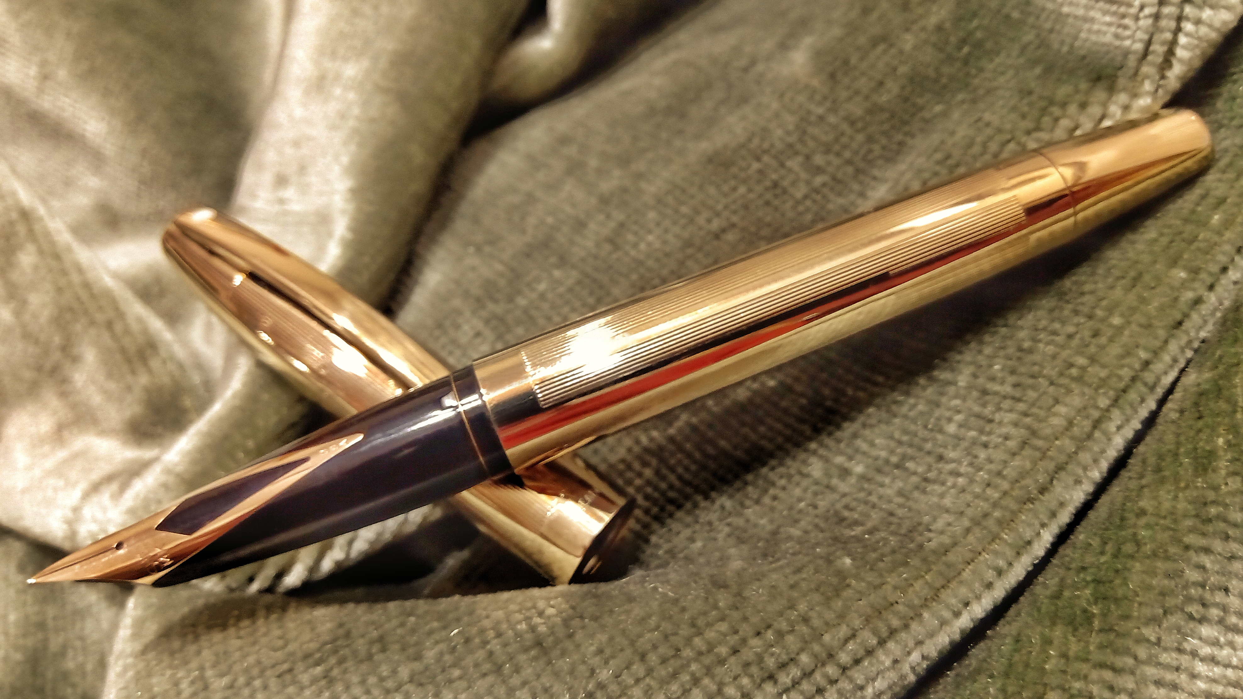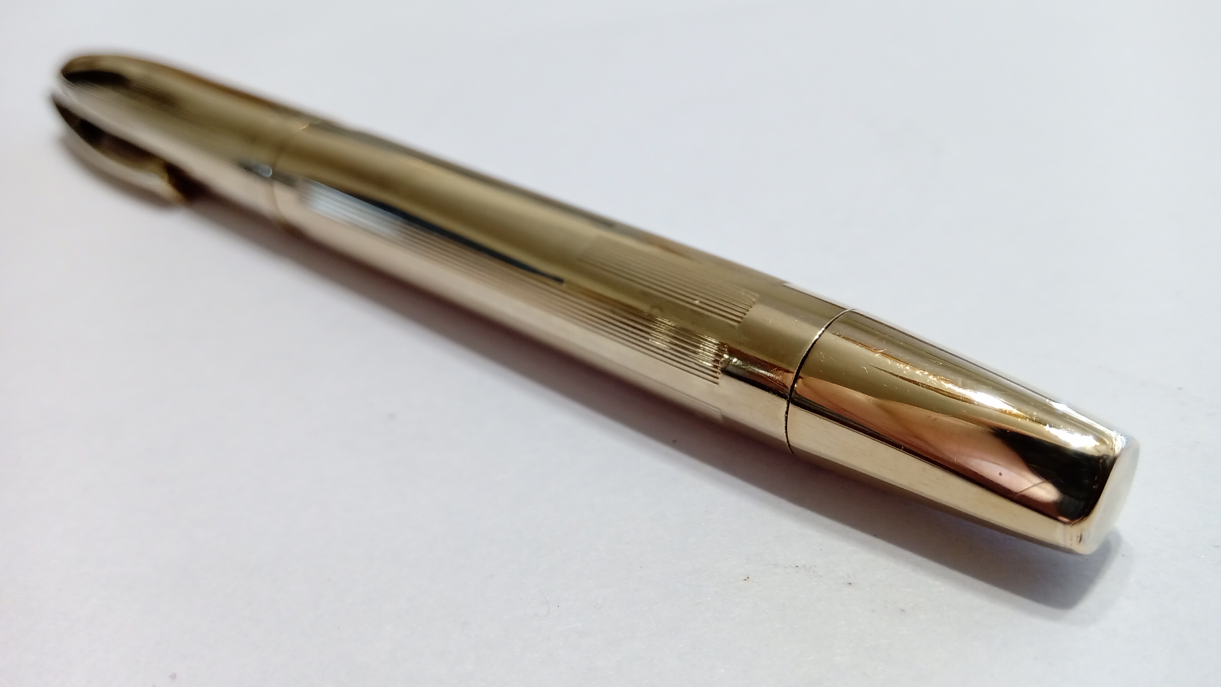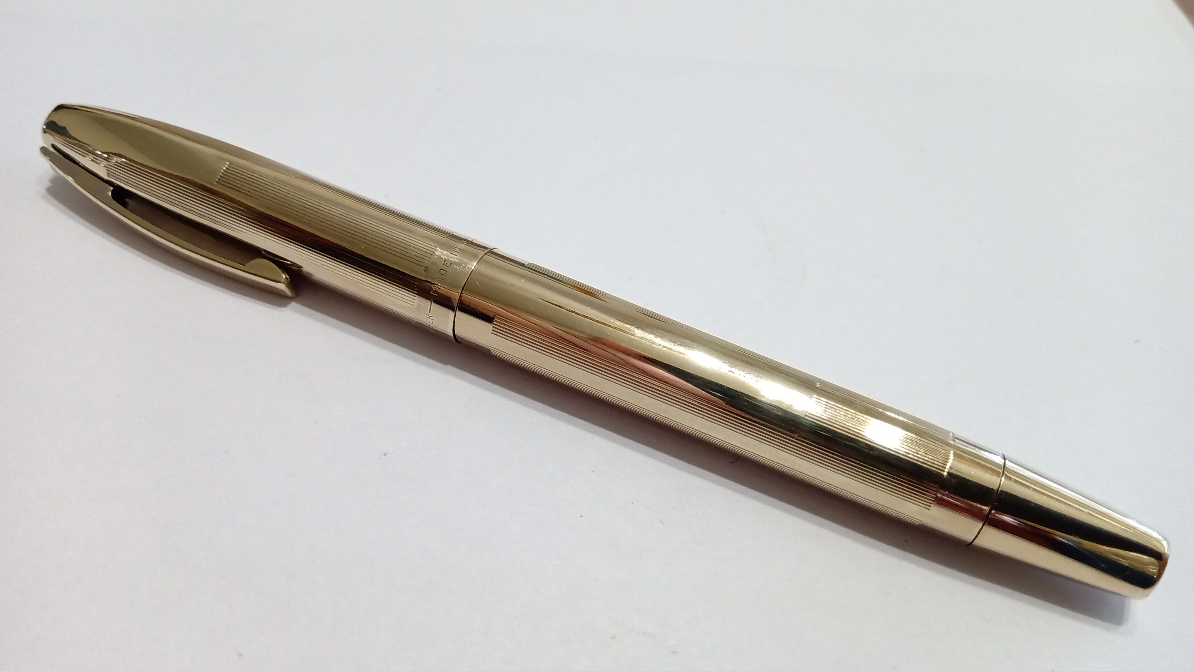 Cari colleghi, tra le penne che uno dei miei amici mi ha inviato per posta come regalo da restaurare, c'era una Sheaffer Imperial Triumph V, con sistema di ricarica TouchDown e un meraviglioso pennino inlaid...