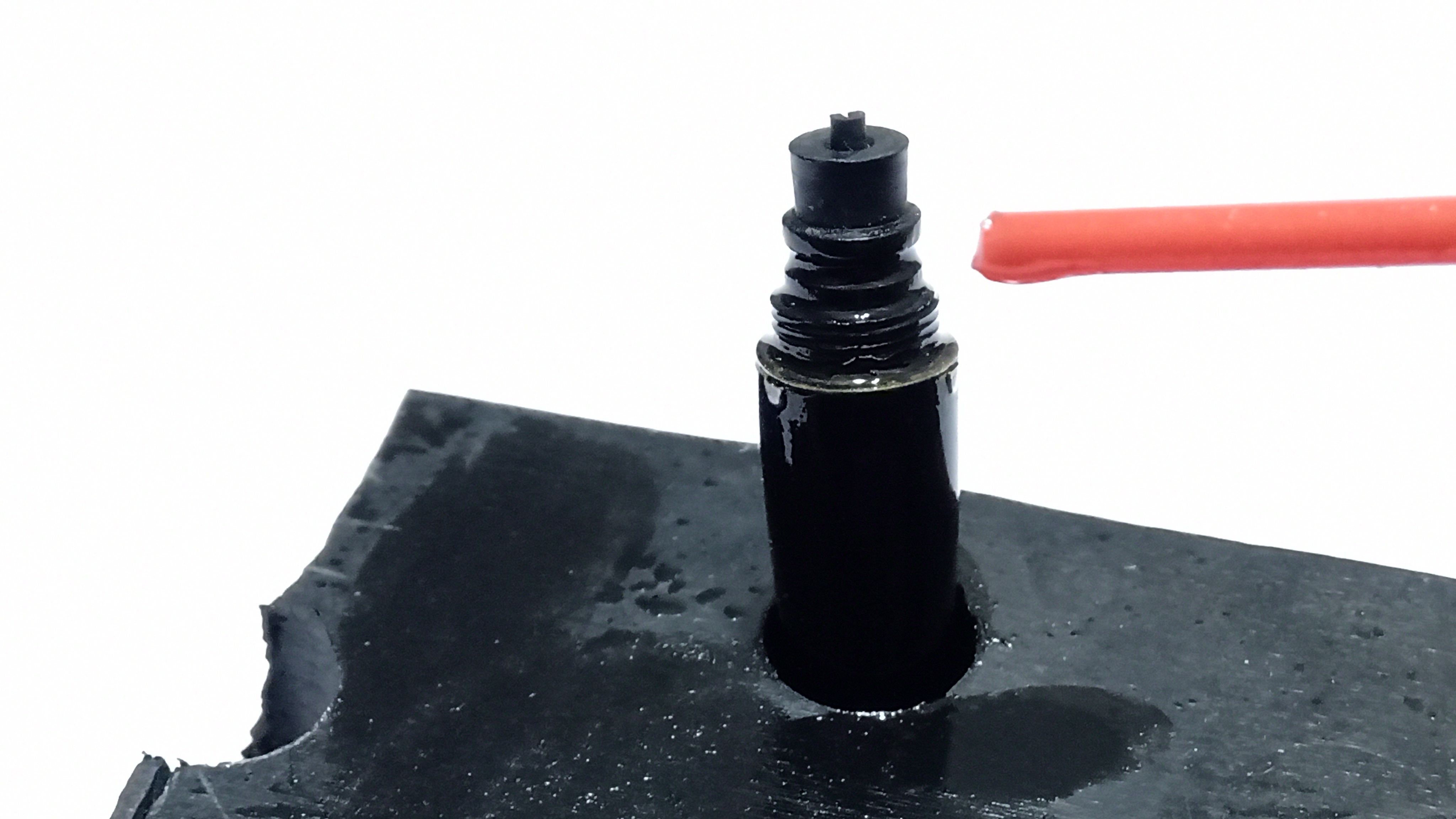 Per farlo ho deciso di usare una lacca a essiccazione UV, che ho applicato fondendola con la vecchia plastica...