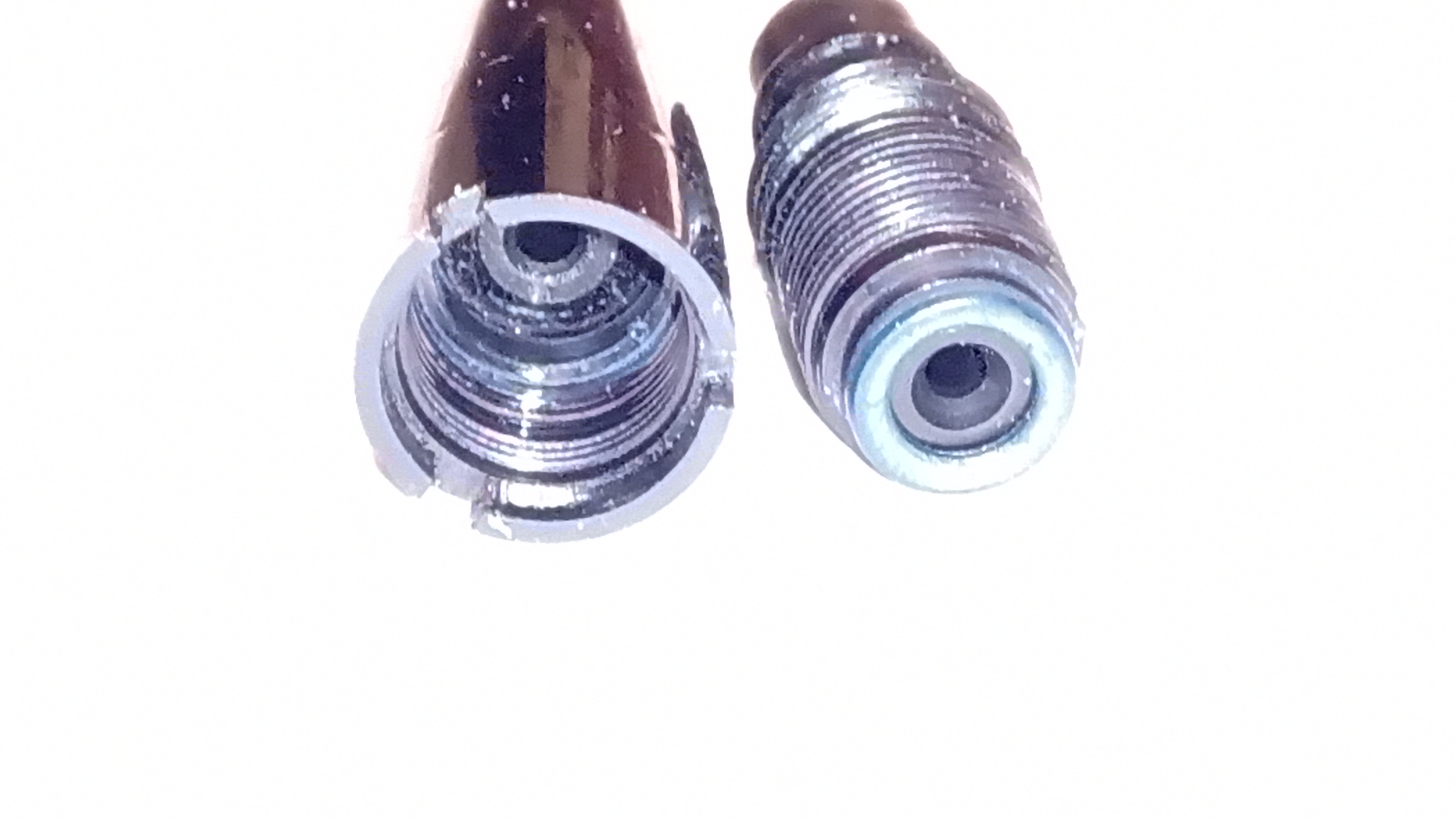 También se llega a ver el asiento interno de algo parecido a un poliuretano, que al roscarse la pieza asegura la hermeticidad del sistema...