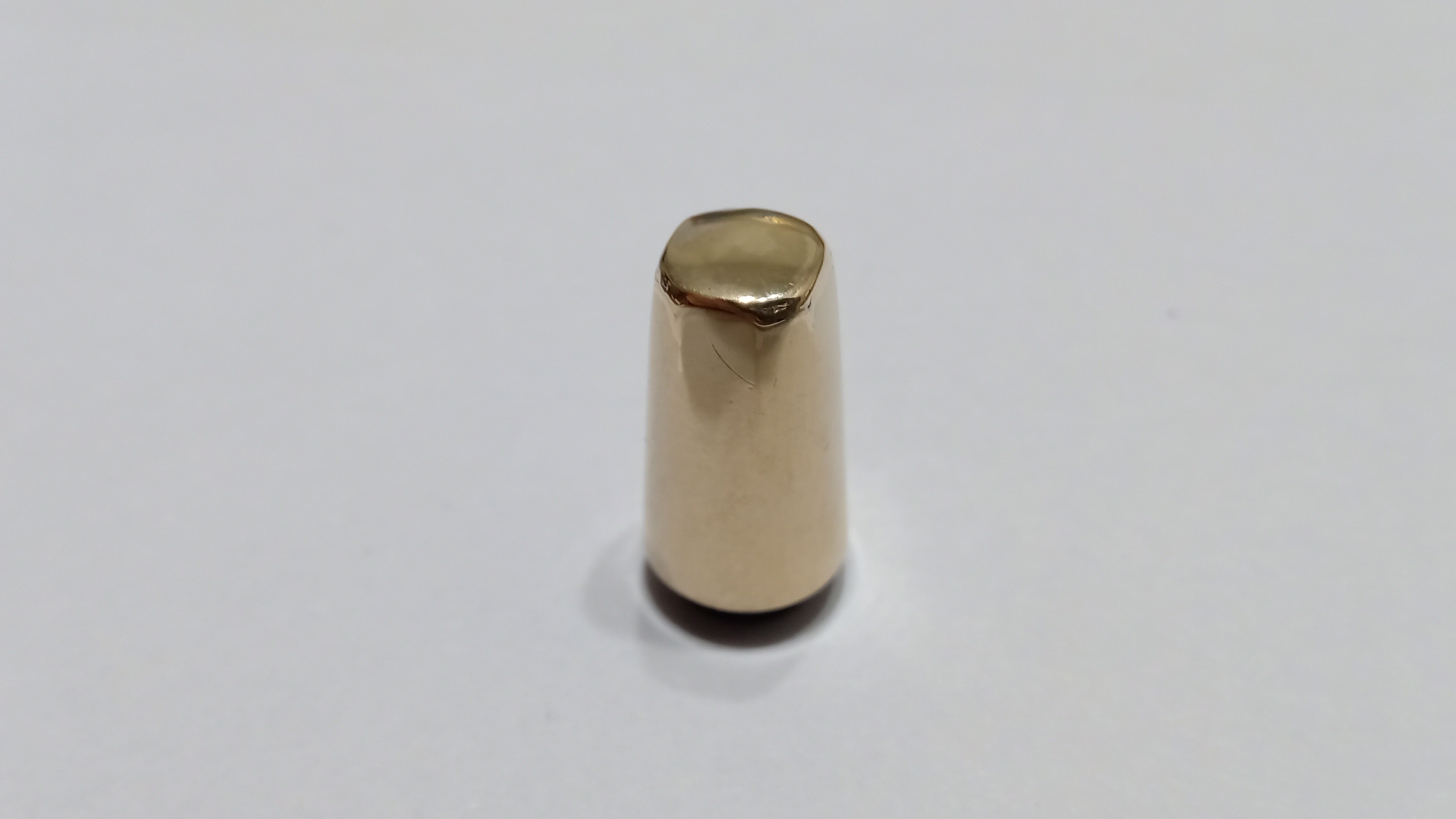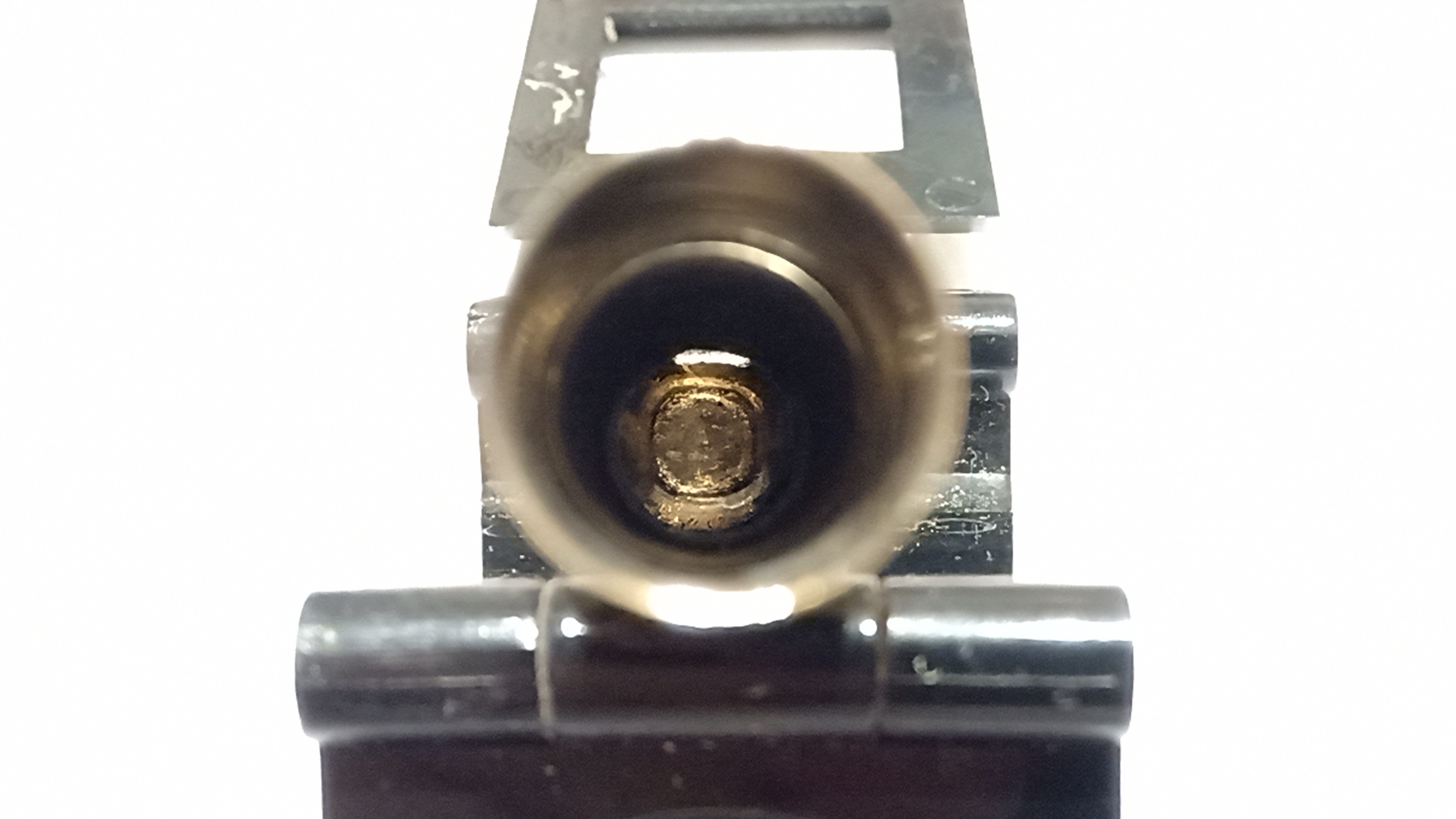 Seguimos entonces con el pulsante, donde lo ideal hubiese sido despegar la cobertura de latón del cuerpo plástico, pero los esfuerzos fueron en vano...
