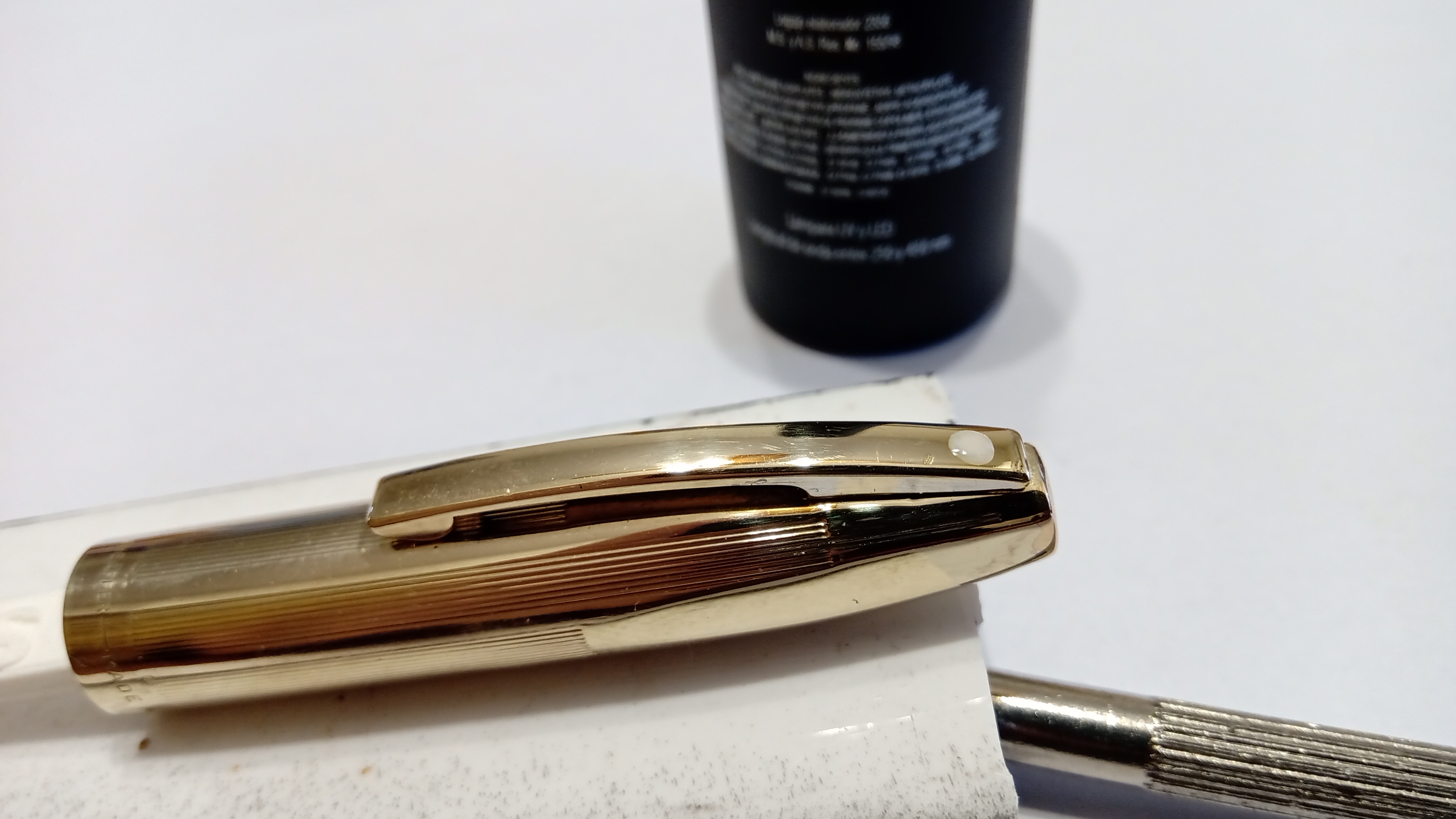 Una volta posizionata e modellata nella forma desiderata, ho esposto la lacca alle radiazioni UV di una lampada allo xeno a scarica (vedi lavoro di restauro con verniciatura UV viewtopic.php?t=35299 ), ottenendo che il nostro amato white-dot avesse la purezza e la resistenza quasi di una ceramica...