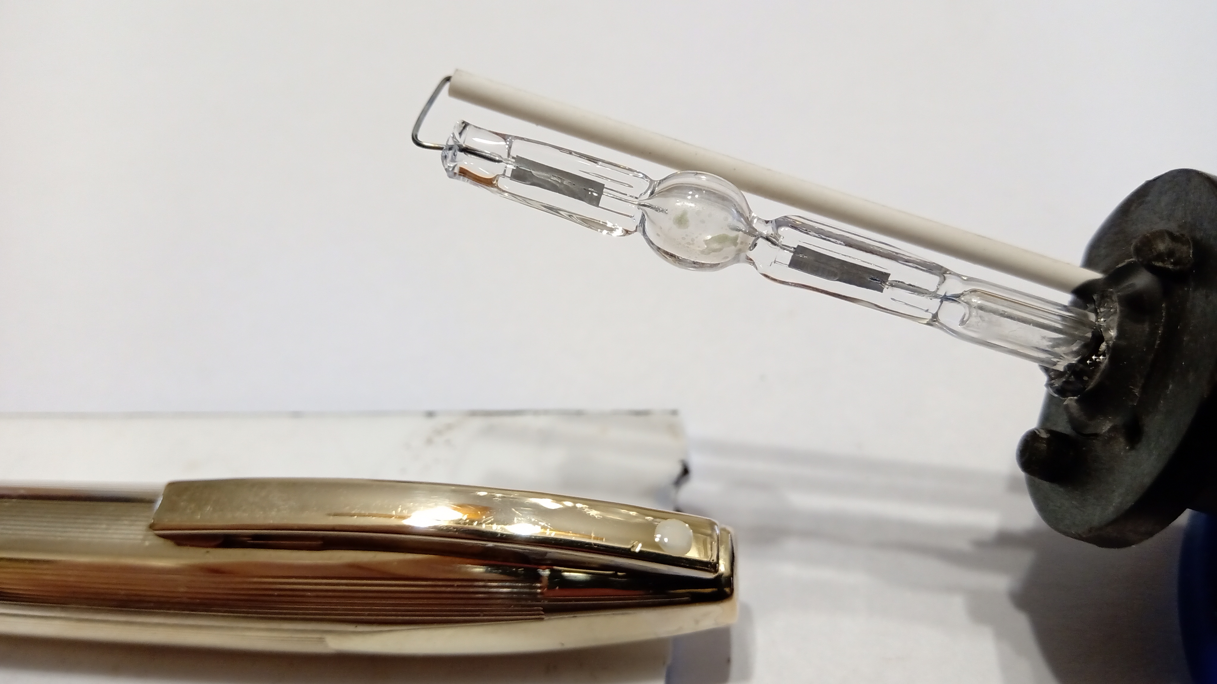 Una vez posicionada y con la forma deseada, expuse la laca a radiación UV de una lámpara xenón de descarga (ver trabajo de restauro con laqueado UV viewtopic.php?t=35299 ), consiguiendo que nuestro querido white-dot quedara con la pureza y casi resistencia de una cerámica...