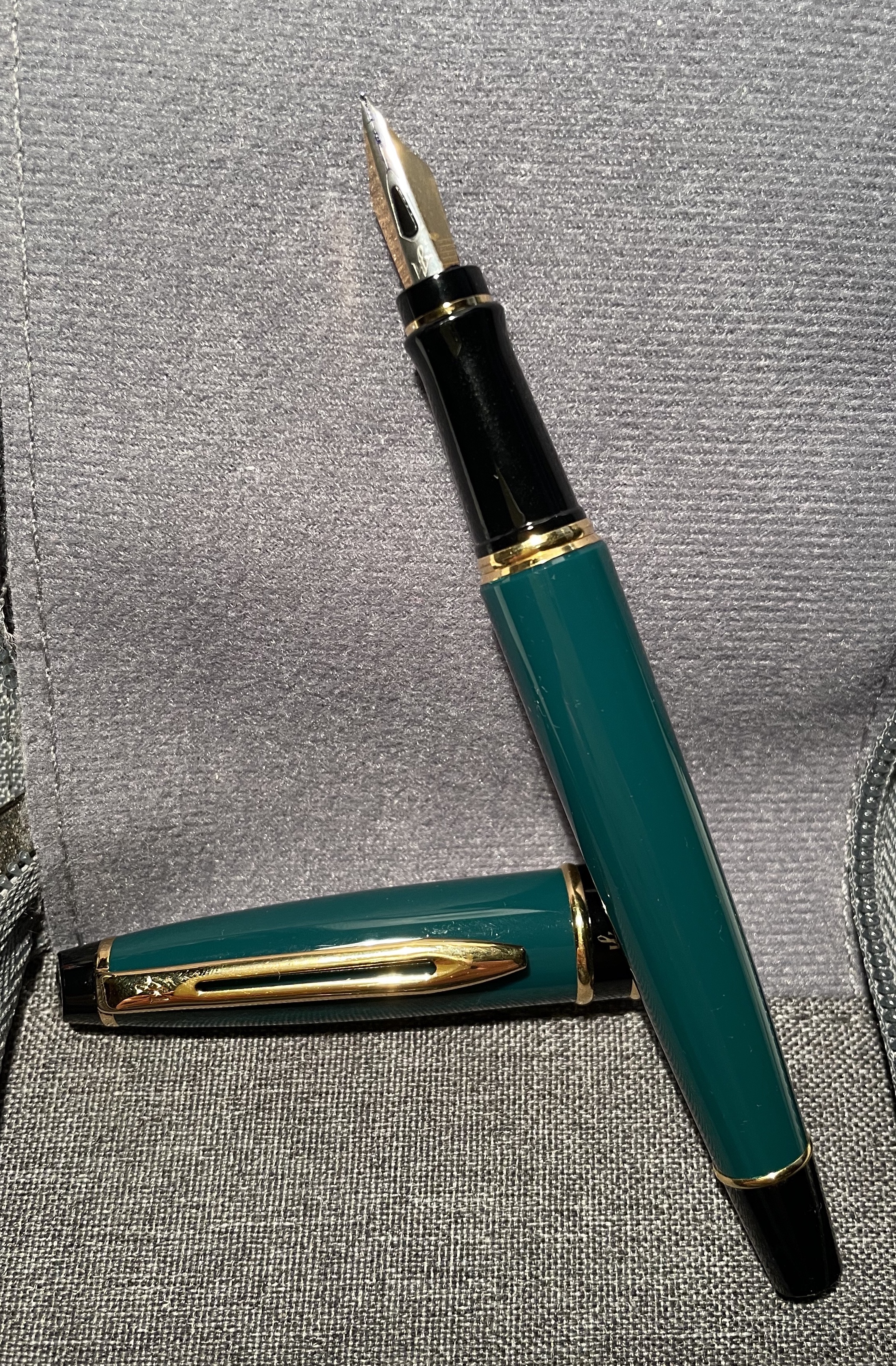 Questa monta un pennino F che in realtà è più simile a un M (cosa per me non spiacevole). È un buon esemplare, scrive molto bene e in mano è esattamente come la ricordavo trent'anni fa.