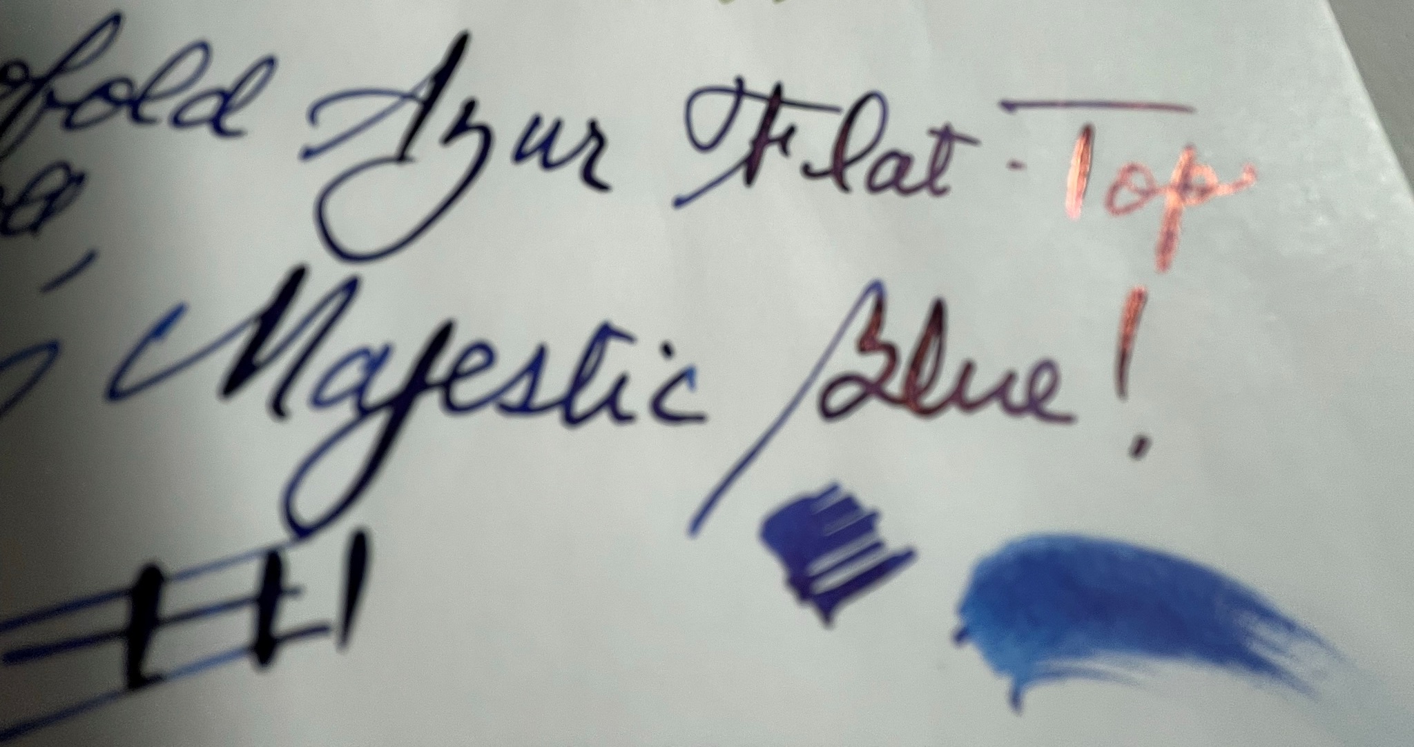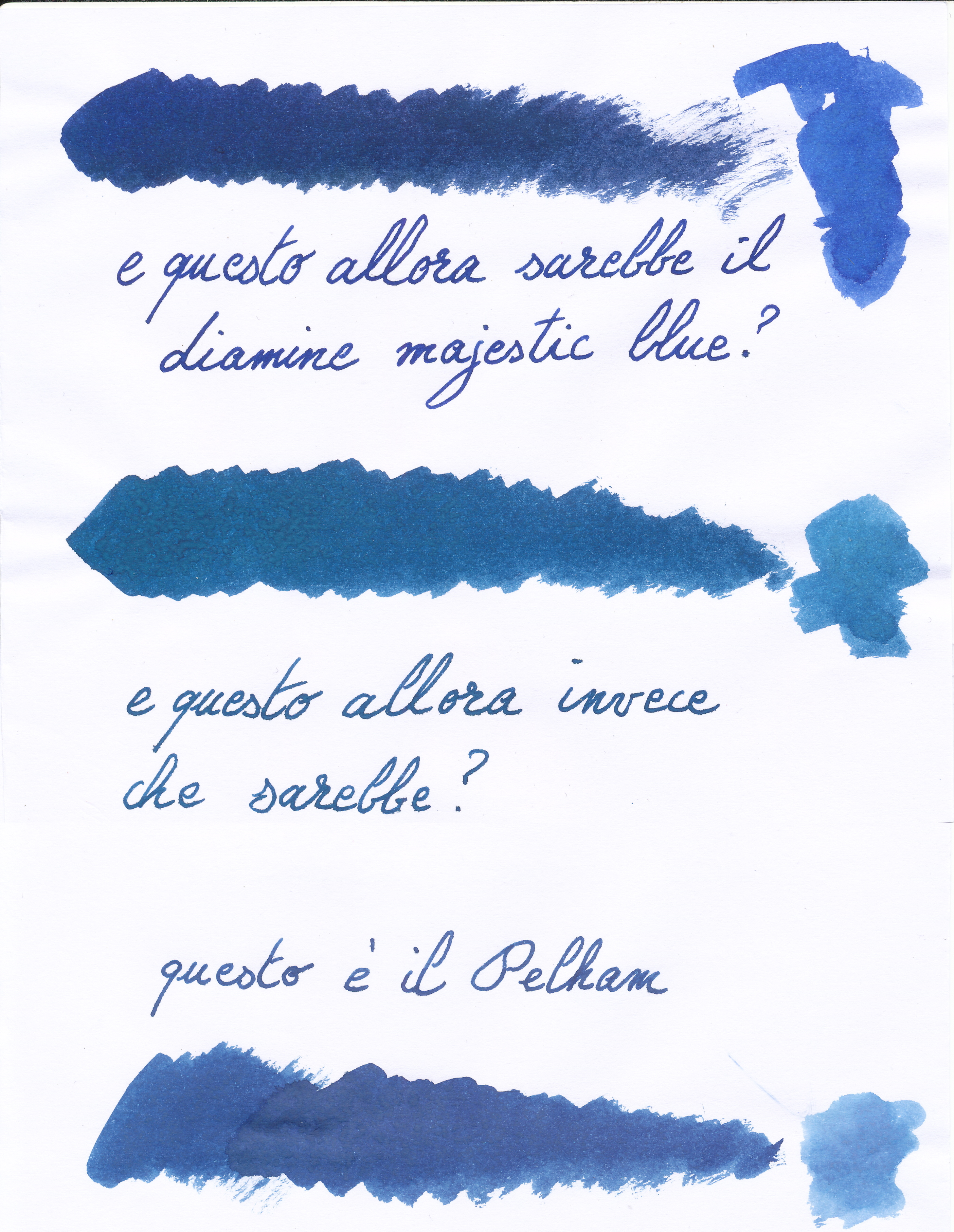 giusto per completare il discorso, anche se ho già postato altrove, è chiaro, avendo acquistato un Diamine Majestic blue nuovo per confronto, che era il mio Majestic ad essere fuori tono...