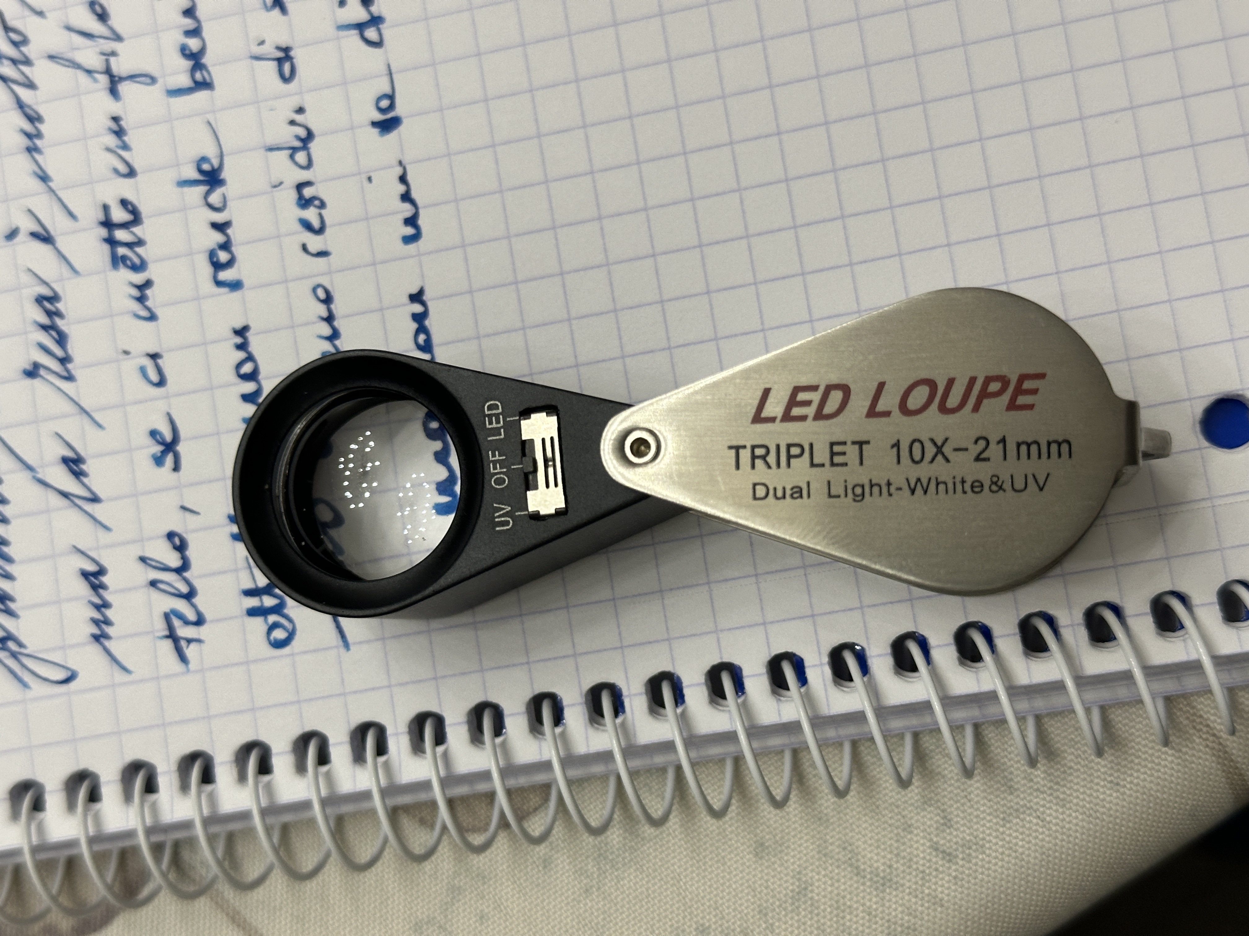 Io di solito uso una lente d'ingrandimento in stile "Sherlock Holmes" con un buon ingrandimento ed una lente da gioielliere con luce per i pennini, tipo questa: