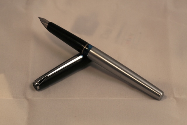 Ha forma e dimensione della Silvexa ma non ha il pennino d'oro e soprattutto ha il corpo acciaio (ma non satinato come il cappuccio della Silvexa) e il cappuccio nero!