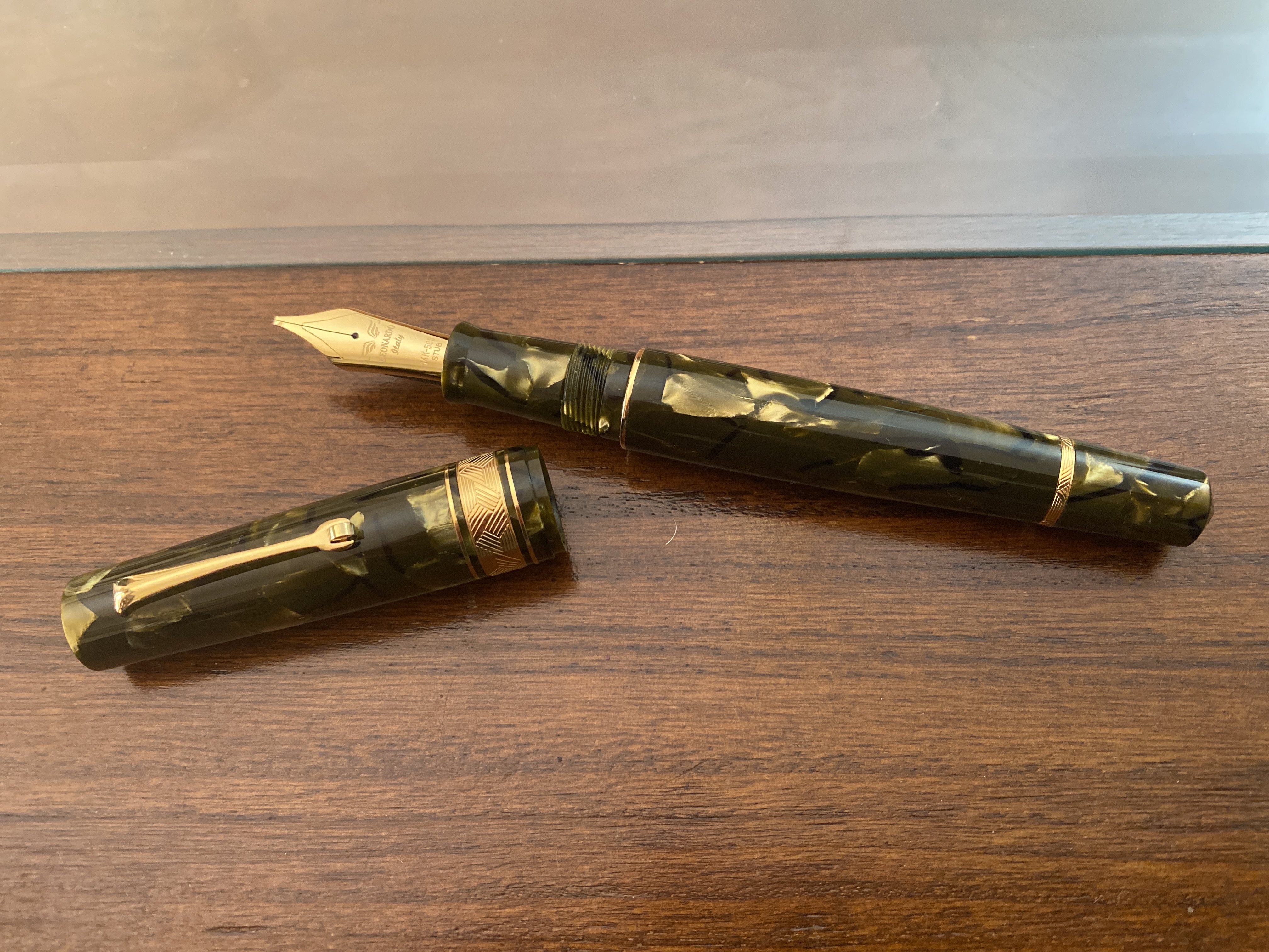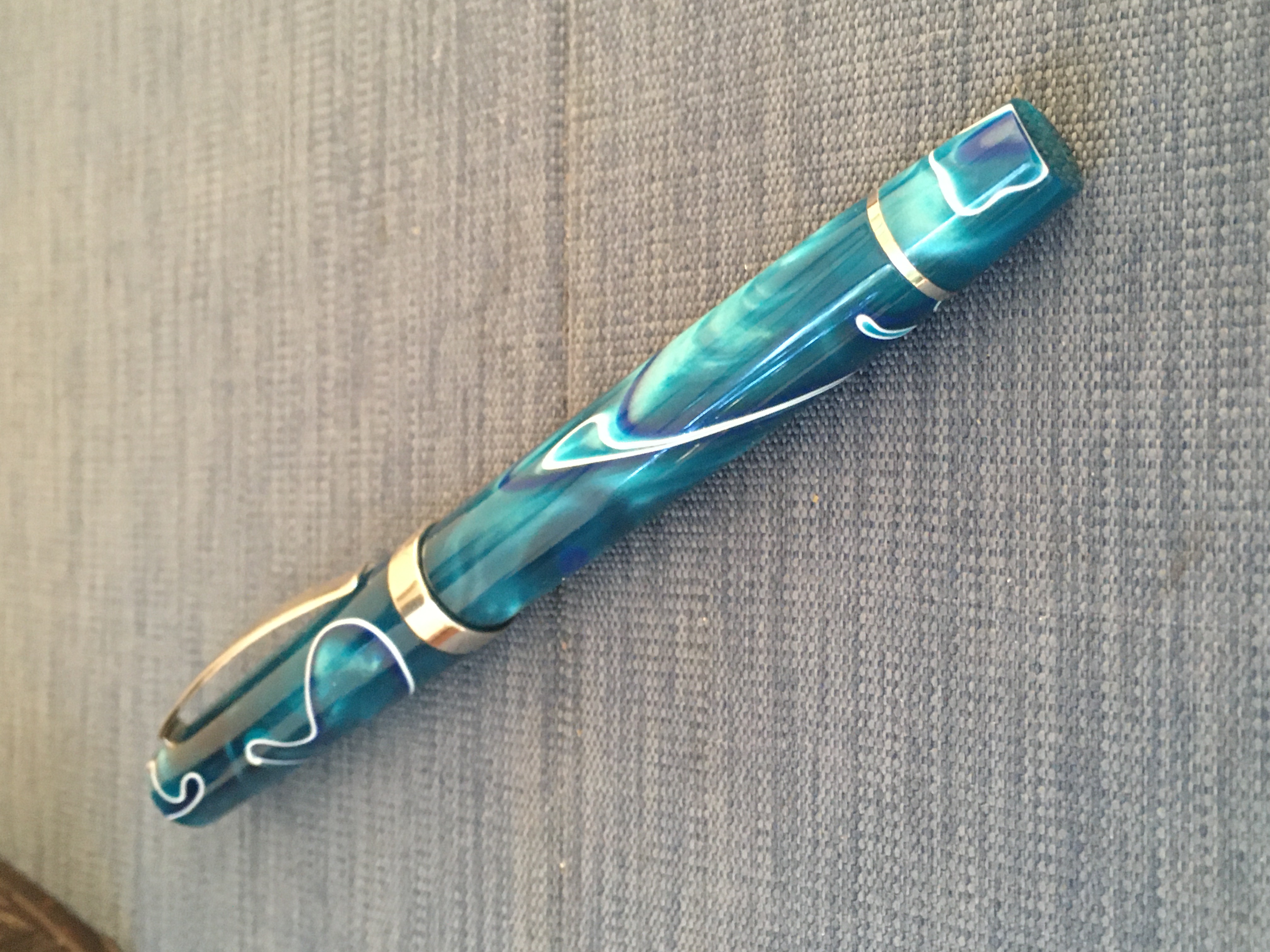 Questa è la mia prima penna in acrilico. Quando Omas ha chiuso le barre di acrilato sono state acquistate da varie aziende. Ho visto questo materiale usato da Leonardo in un Momento Zero Grande e dal Turners workshop. Potrebbero essercene altri. L'ho riempita con inchiostro Parker Penman Sapphire.